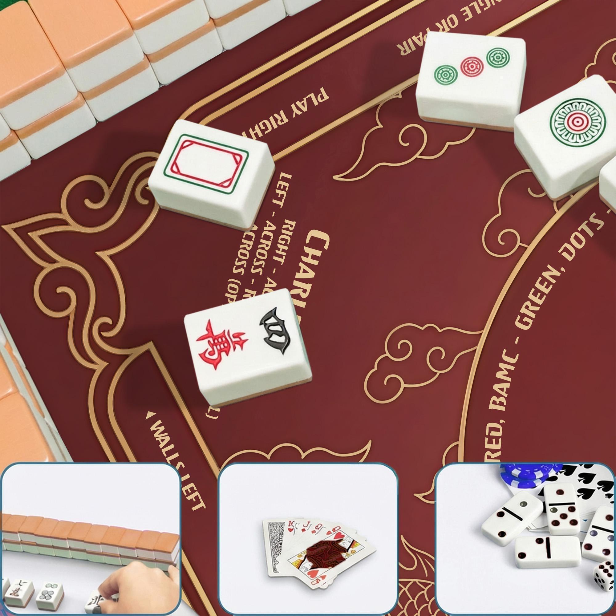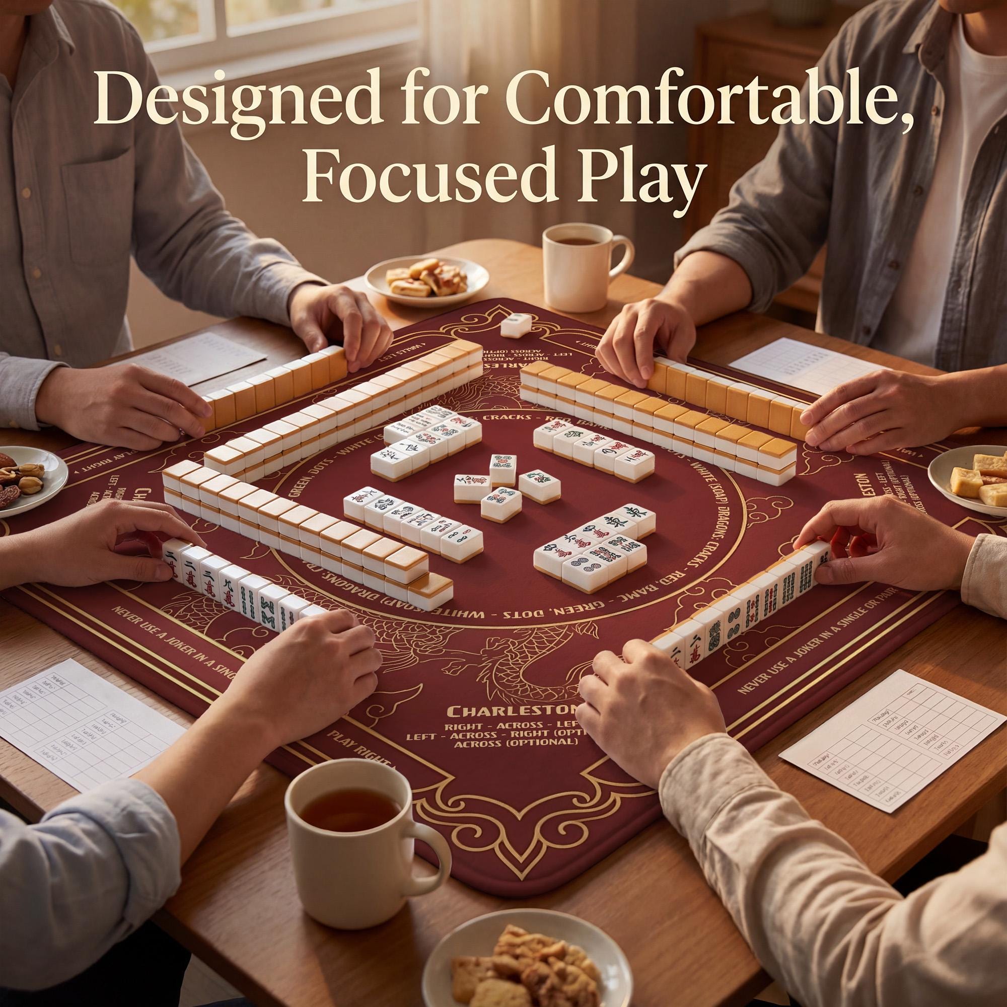Elevate your Mahjong experience with a personalized game mat designed for both casual players and Mahjong clubs alike. This smooth play surface reduces tile noise, creating a serene atmosphere perfect for intense matches or family game night. Crafted with a non-slip rubber mat base, it stays firmly in place while being portable enough to roll up into the included carry pouch.