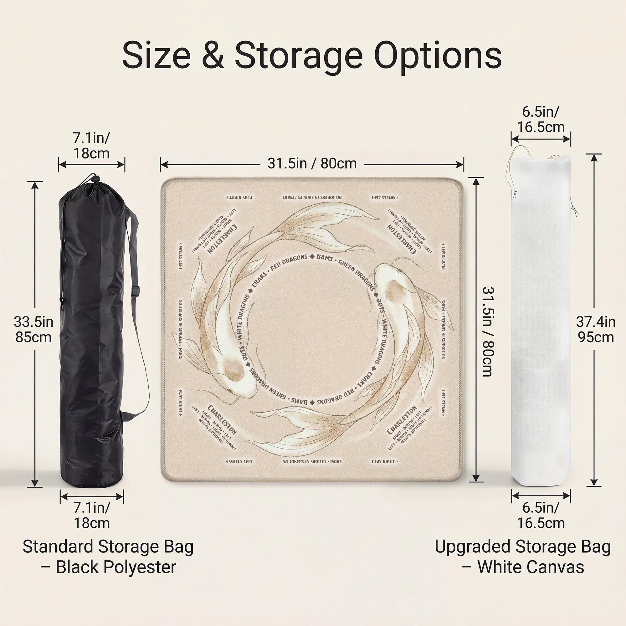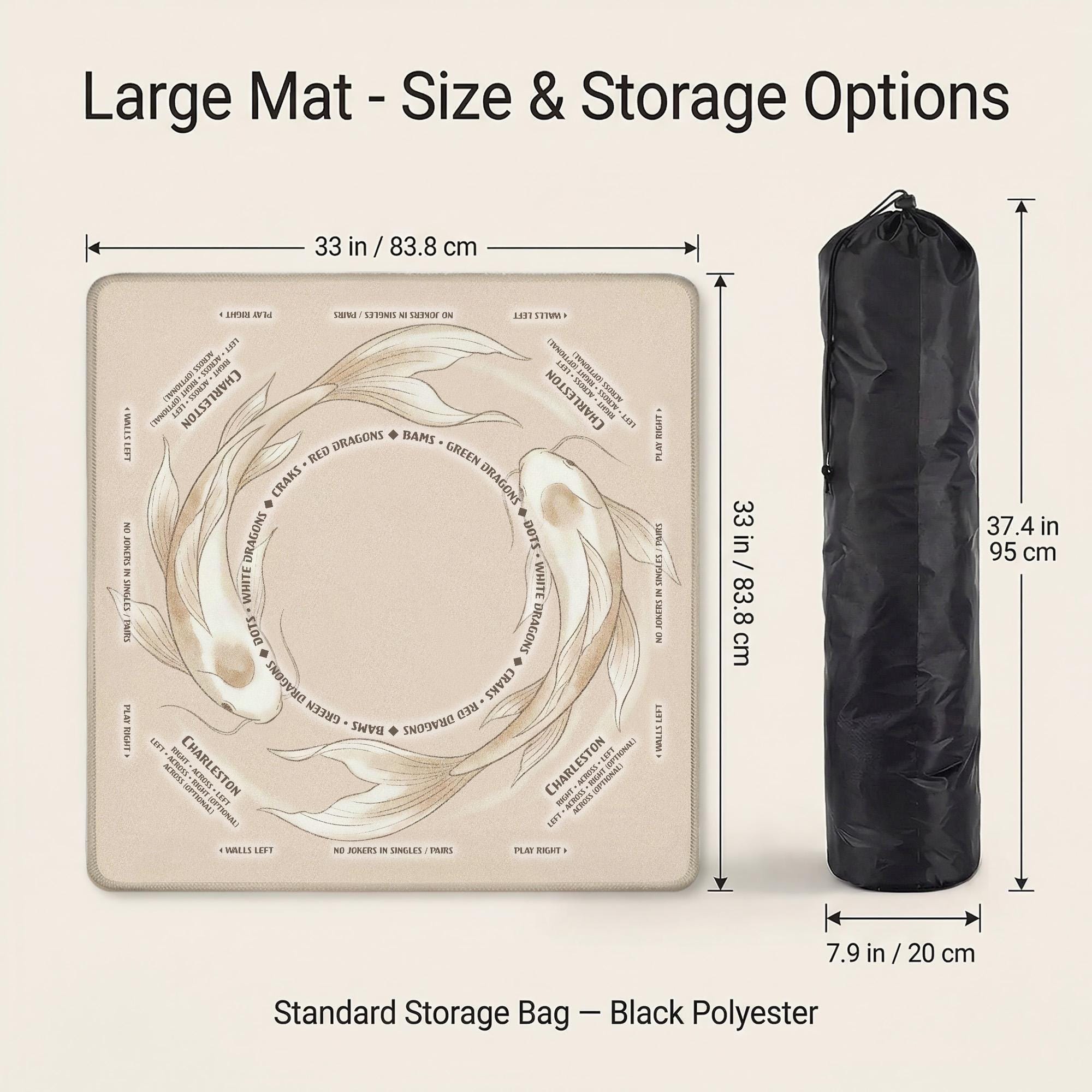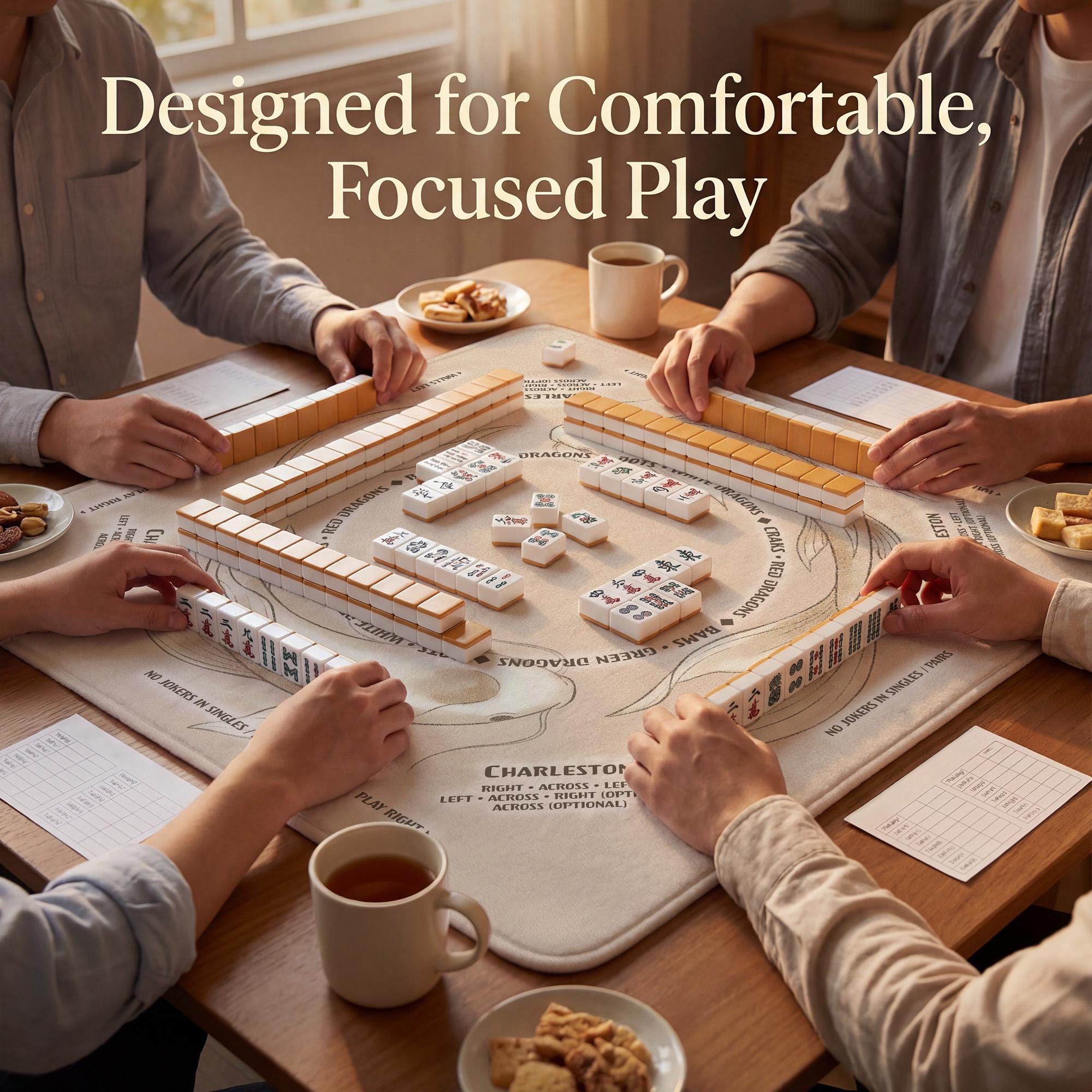 Upgrade your game nights with this premium, customizable 31.5" Mahjong table mat featuring a soft, smooth, and quiet playing surface. Non-slip rubber backing keeps tiles in place, while the included carry bag makes travel effortless. Perfect for American Mahjong, tournaments, gifts, and stylish home game rooms. Custom designs available!
