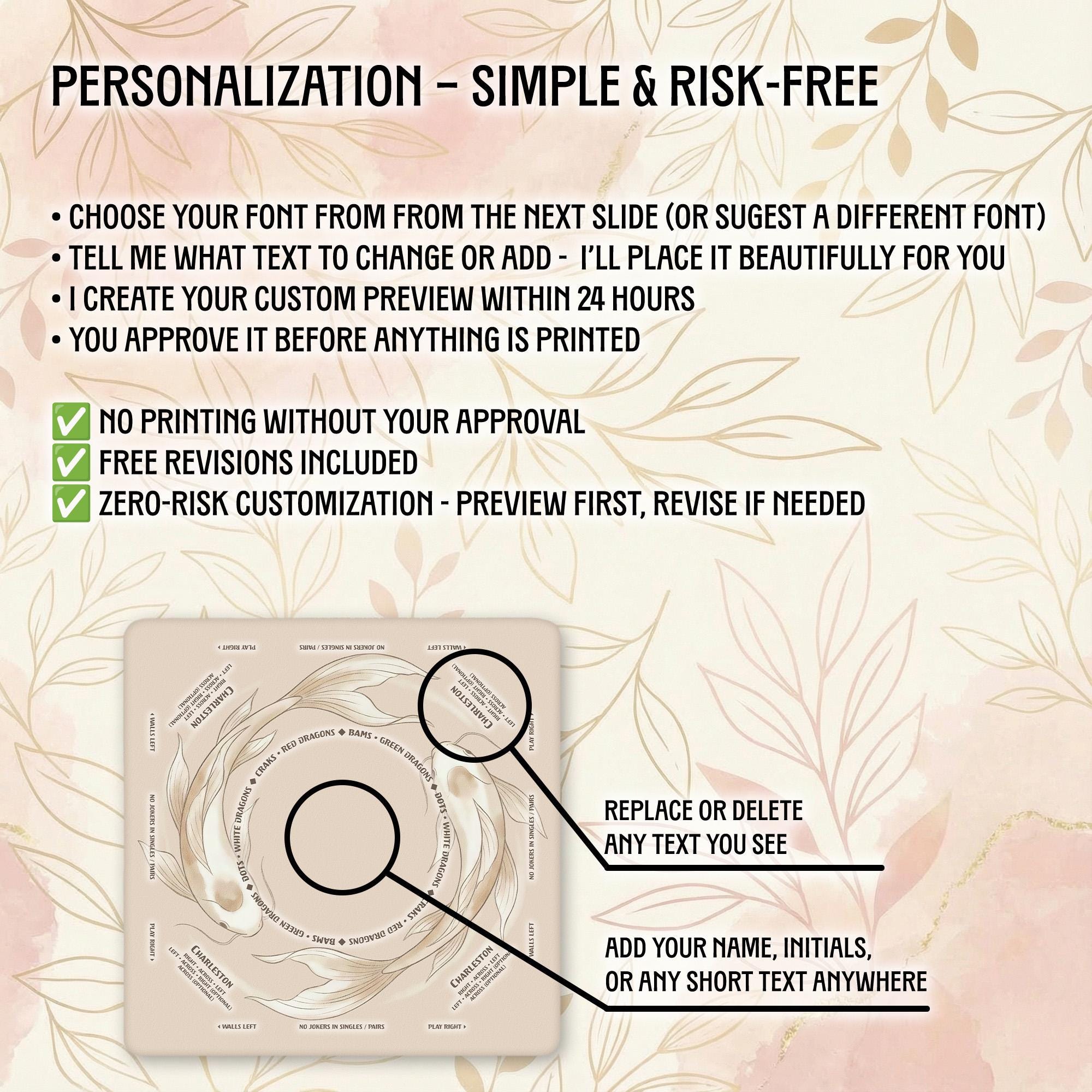 Our shop is dedicated to creating thoughtful, high-quality accessories that enhance your gaming moments. Each personalized Mahjong mat is carefully crafted with attention to detail and shipped promptly to bring joy to your game nights and special occasions.