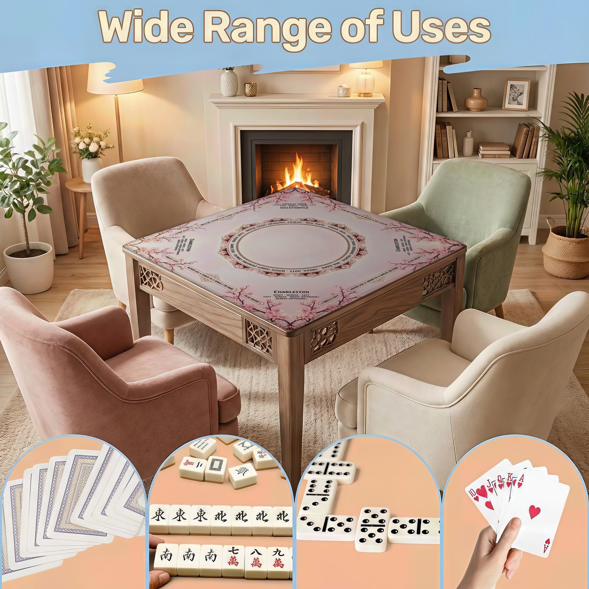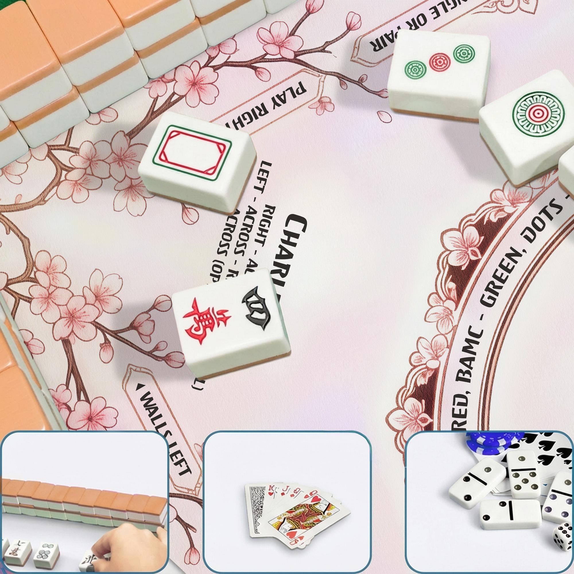 Elevate your game nights with this personalized cherry blossom Mahjong mat, designed to bring both elegance and practicality to every play session. Crafted for Mahjong lovers, it features a quiet game surface that minimizes tile noise, paired with a non slip rubber base for stability. The included carry pouch makes it a perfect portable Mahjong set, ideal for taking your favorite game wherever you go.