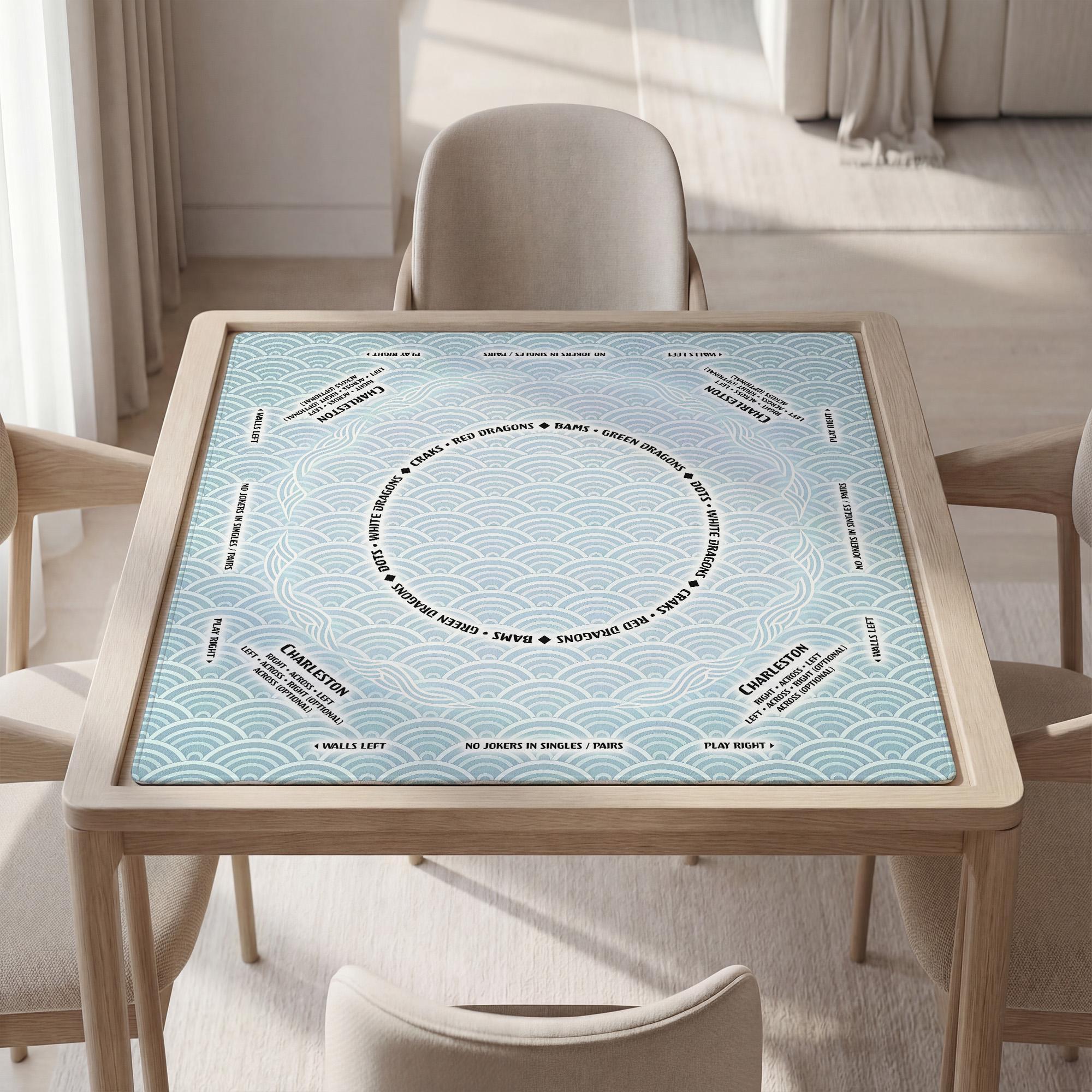 This elegant blue Japanese wave Mahjong mat brings calm, style, and smooth gameplay to every match. Made from premium non-slip neoprene, it includes American Mahjong guide markings (or choose the clean version with no text for seasoned players). Personalize it with your name, initials, or custom text anywhere on the mat. Comes with a convenient storage/carry bag โ a perfect gift for Mahjong lovers.