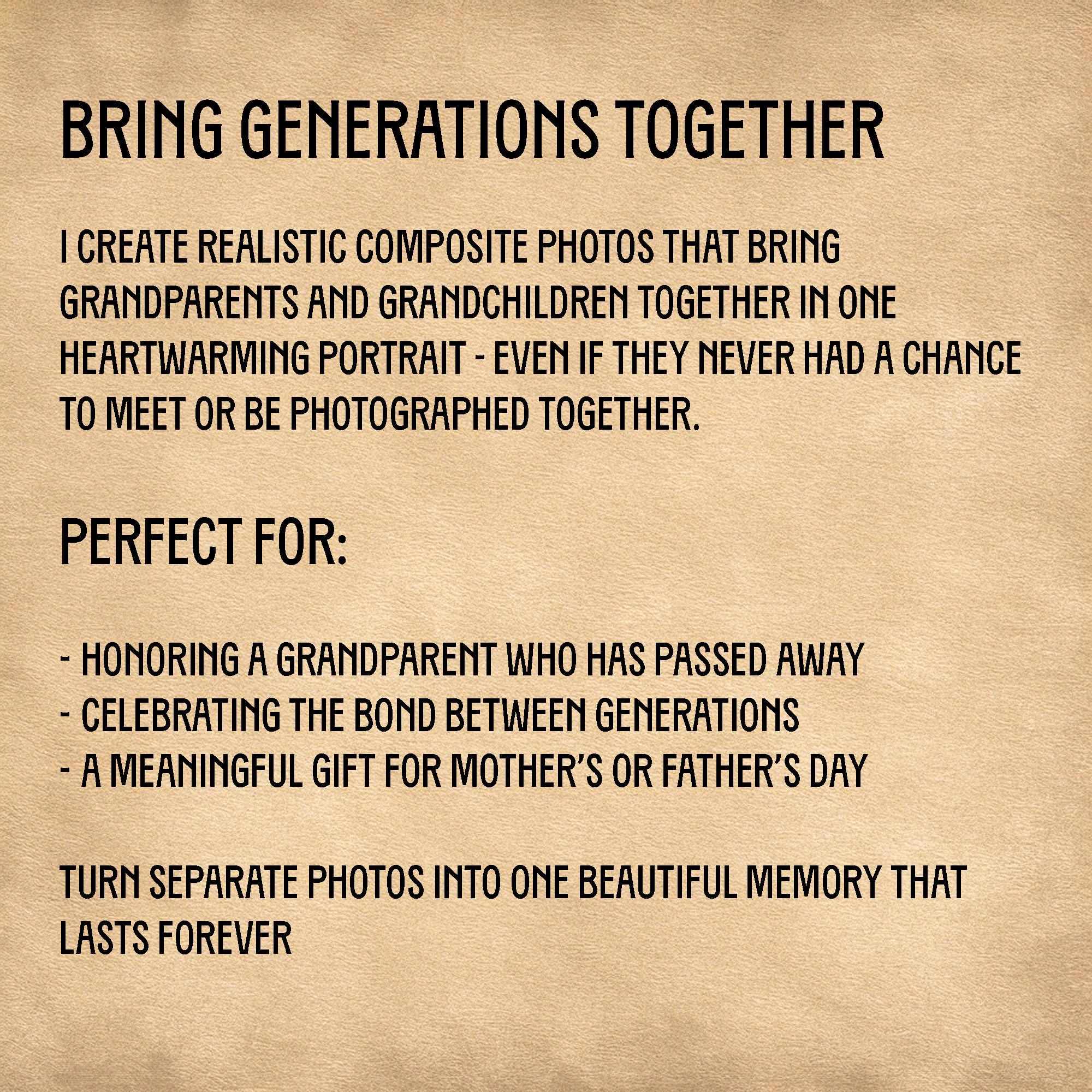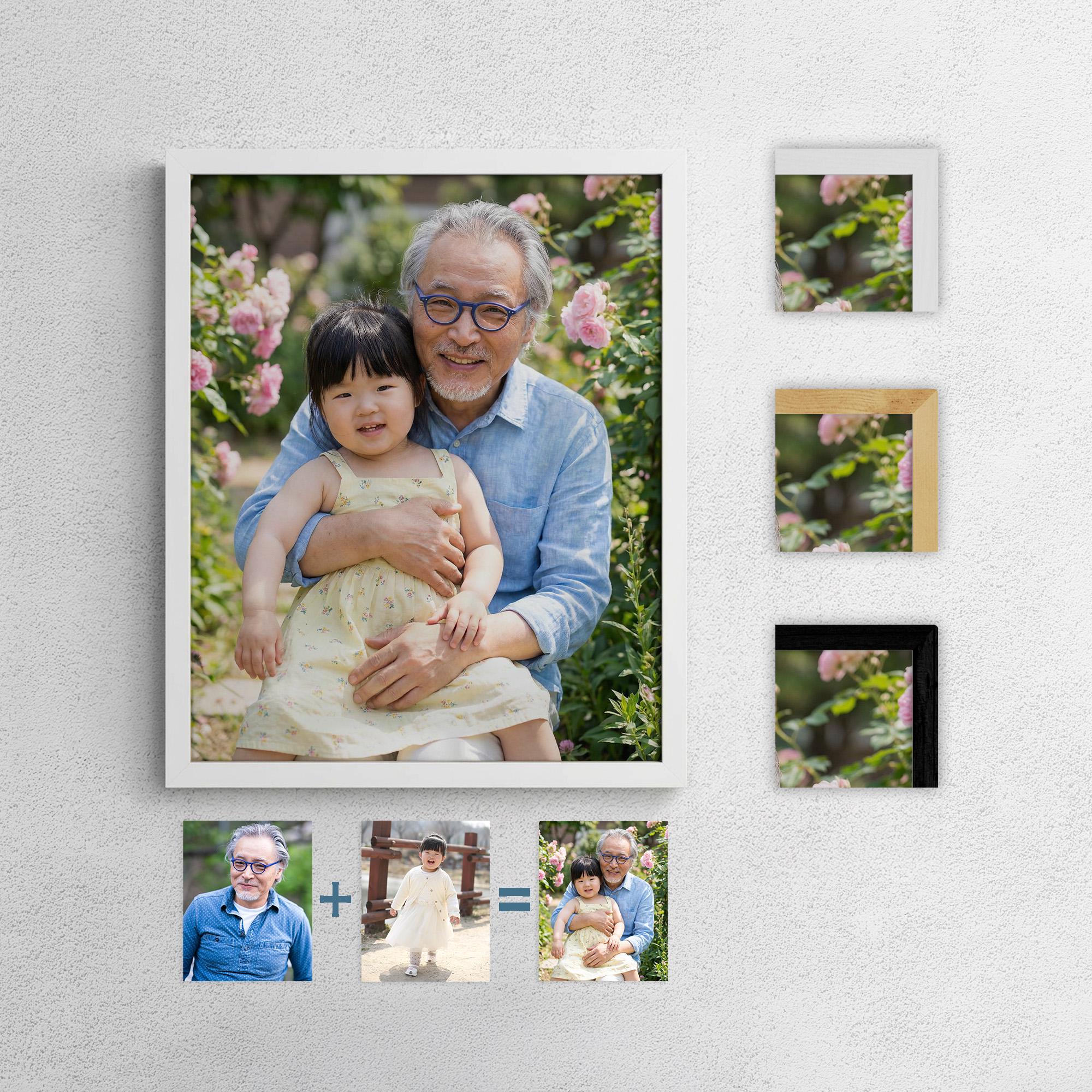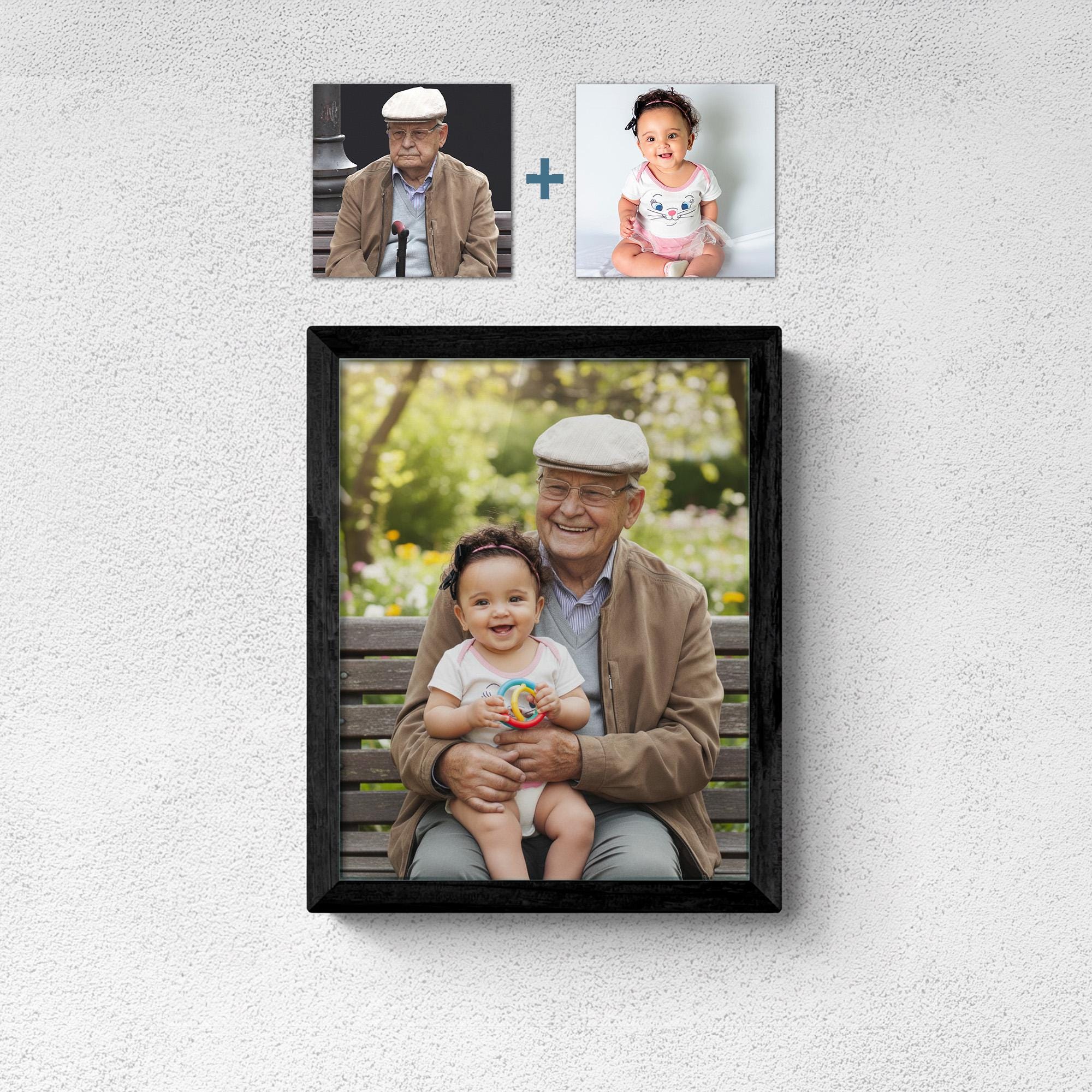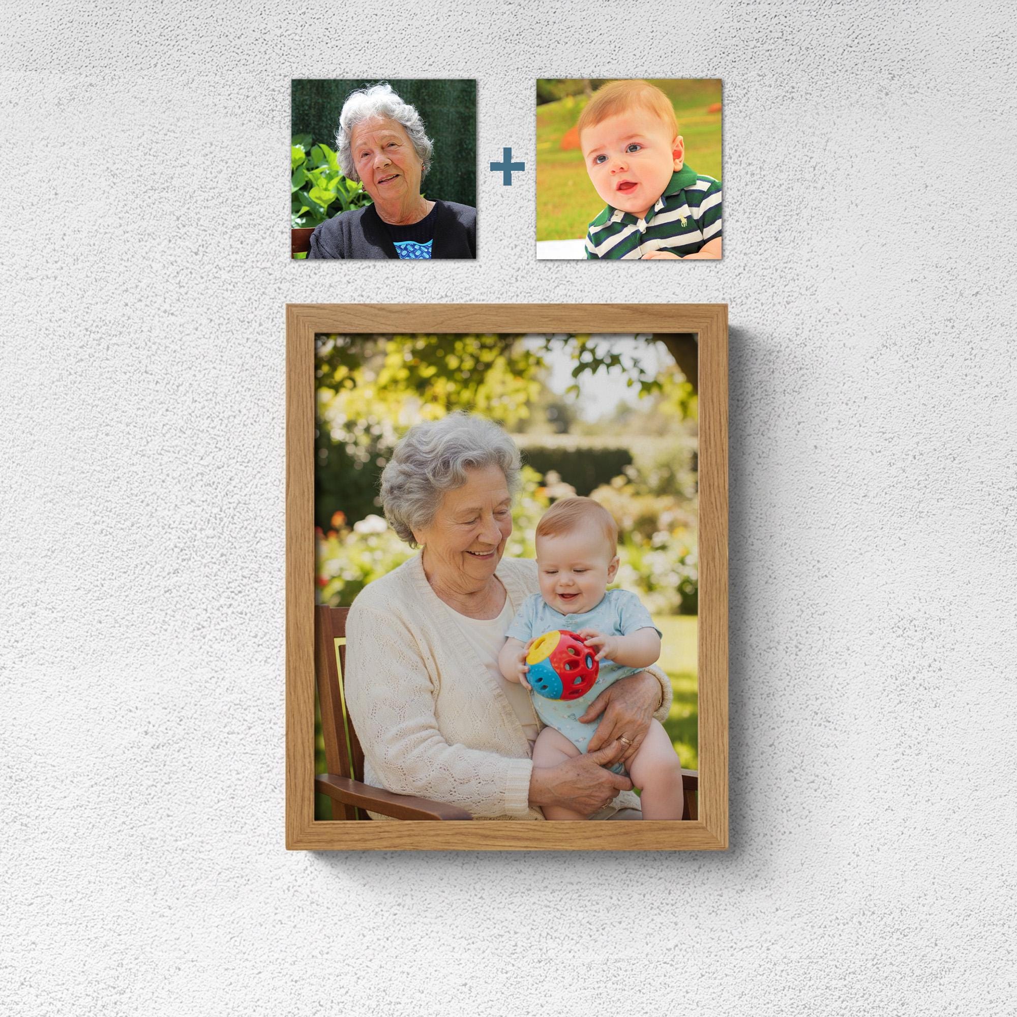 Capturing the timeless bond between grandparent and grandchild is a heartfelt journey, beautifully expressed through this custom photo merge. Each piece is thoughtfully designed to honor generations, making it a cherished family memorial gift that adds warmth to your heritage wall decor. Inspired by genuine moments, this photo creation celebrates love and legacy with stunning realism.