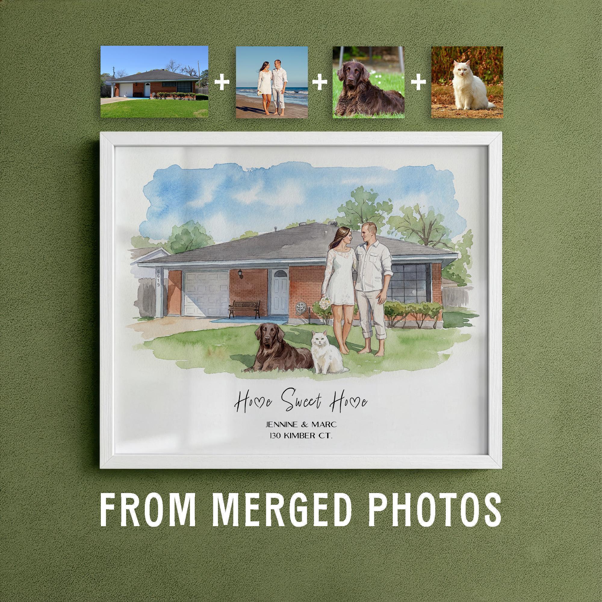 Every home has a unique story, and this custom watercolor house portrait beautifully captures yours by blending your house, owner, and pets into a heartfelt keepsake. Perfect as a new home keepsake or a thoughtful real estate closing gift, this artwork is crafted with personalized charm and artistic care. Featuring a hand-finished style and the option for custom text, it transforms your memories into a timeless treasure.