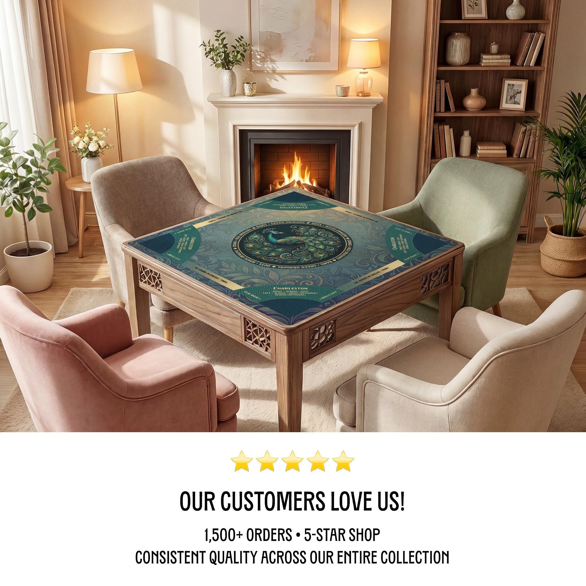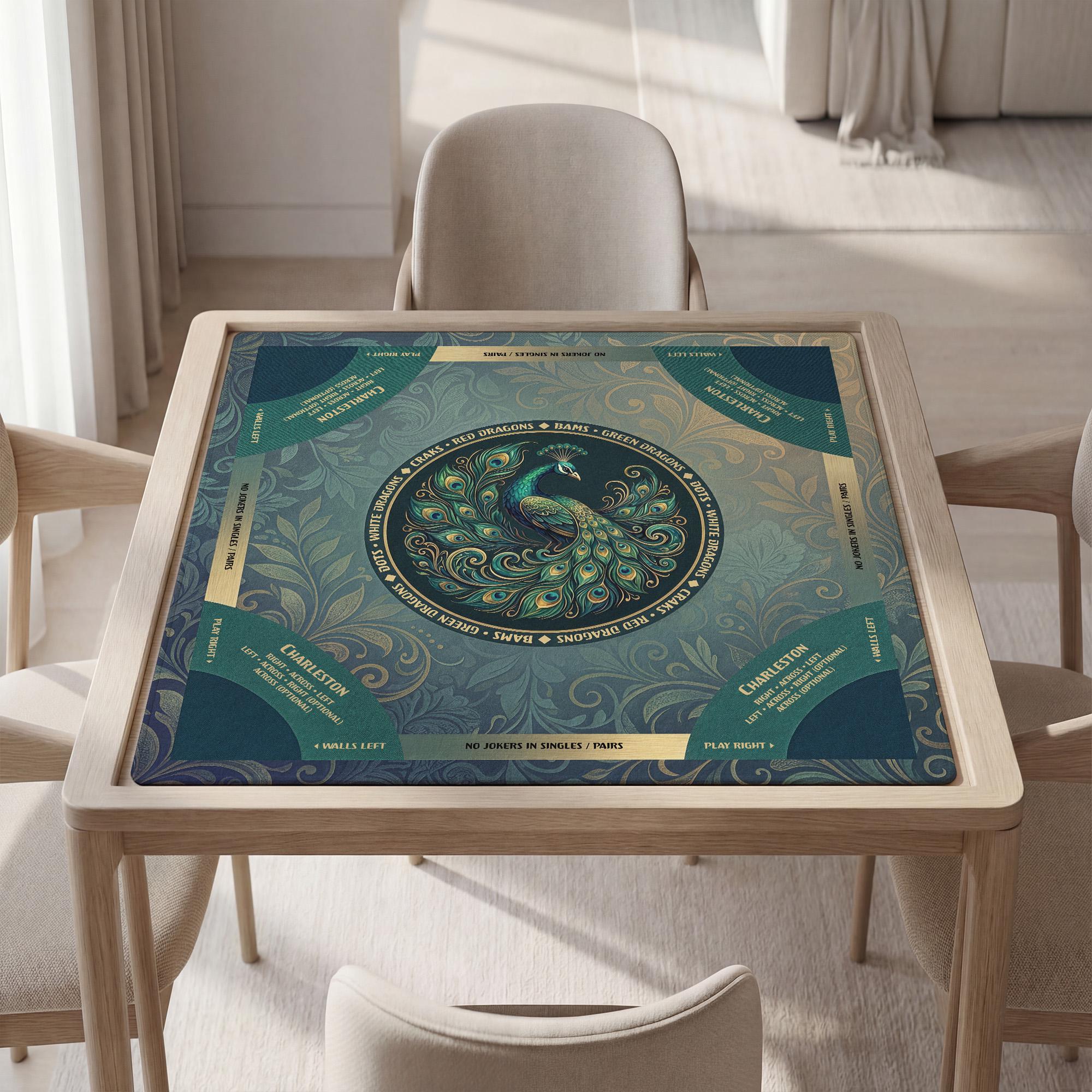 Transform your mahjong nights with this exquisite luxury mahjong mat, featuring an elegant peacock design that brings a touch of sophistication to every game. Crafted for seasoned players, it offers a smooth play surface complemented by a non slip backing to keep your tiles perfectly in place. Complete with a matching carry bag, this custom mahjong mat makes an ideal gift for enthusiasts who appreciate both style and functionality.