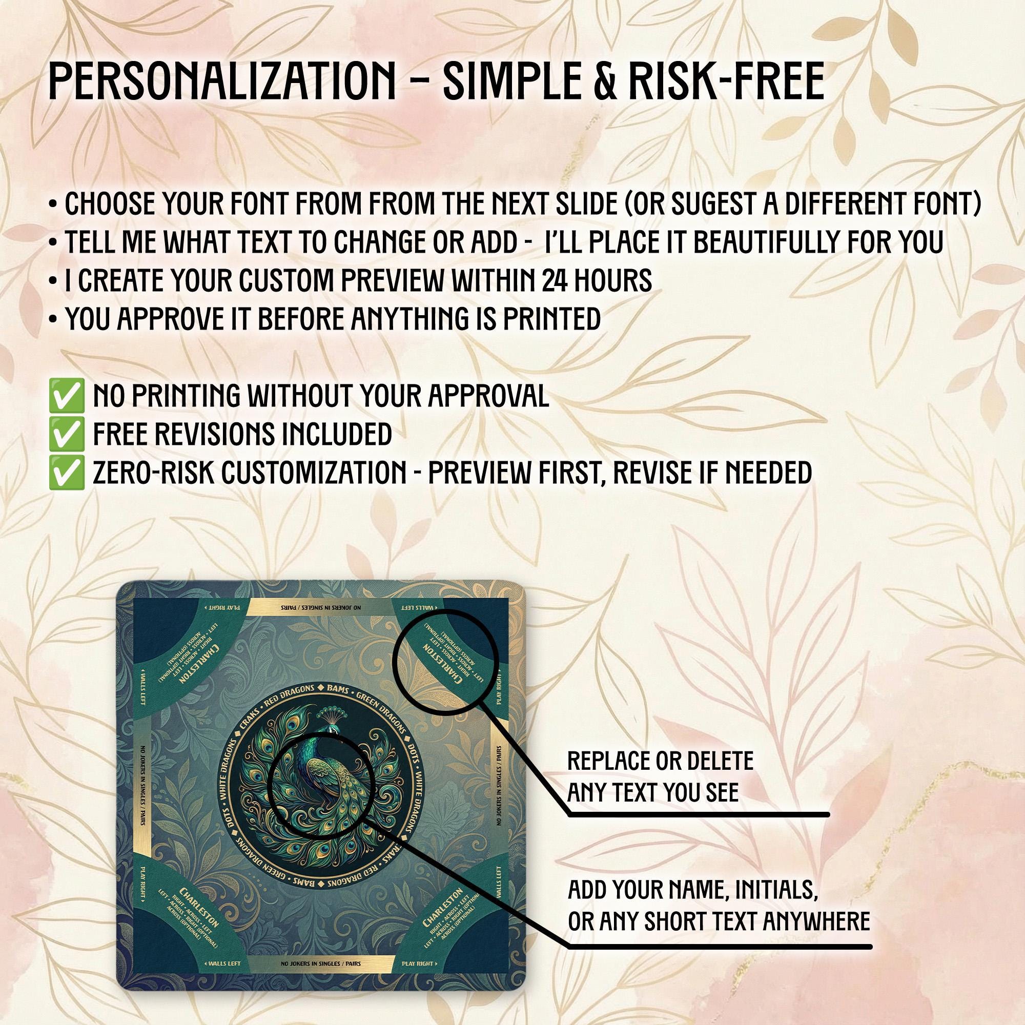 Our shop is dedicated to creating thoughtful, high-quality accessories that enhance your gaming moments. Each personalized Mahjong mat is carefully crafted with attention to detail and shipped promptly to bring joy to your game nights and special occasions.
