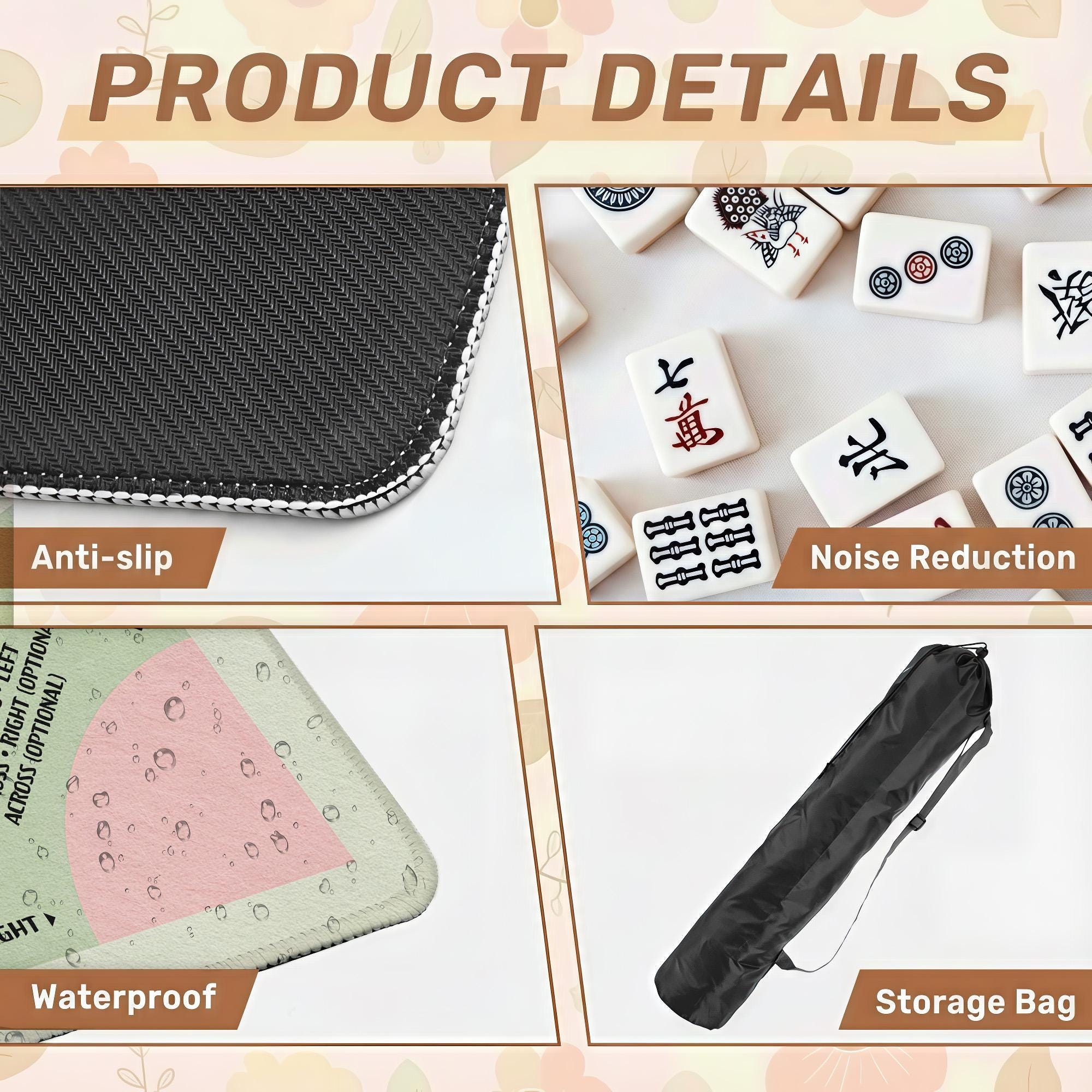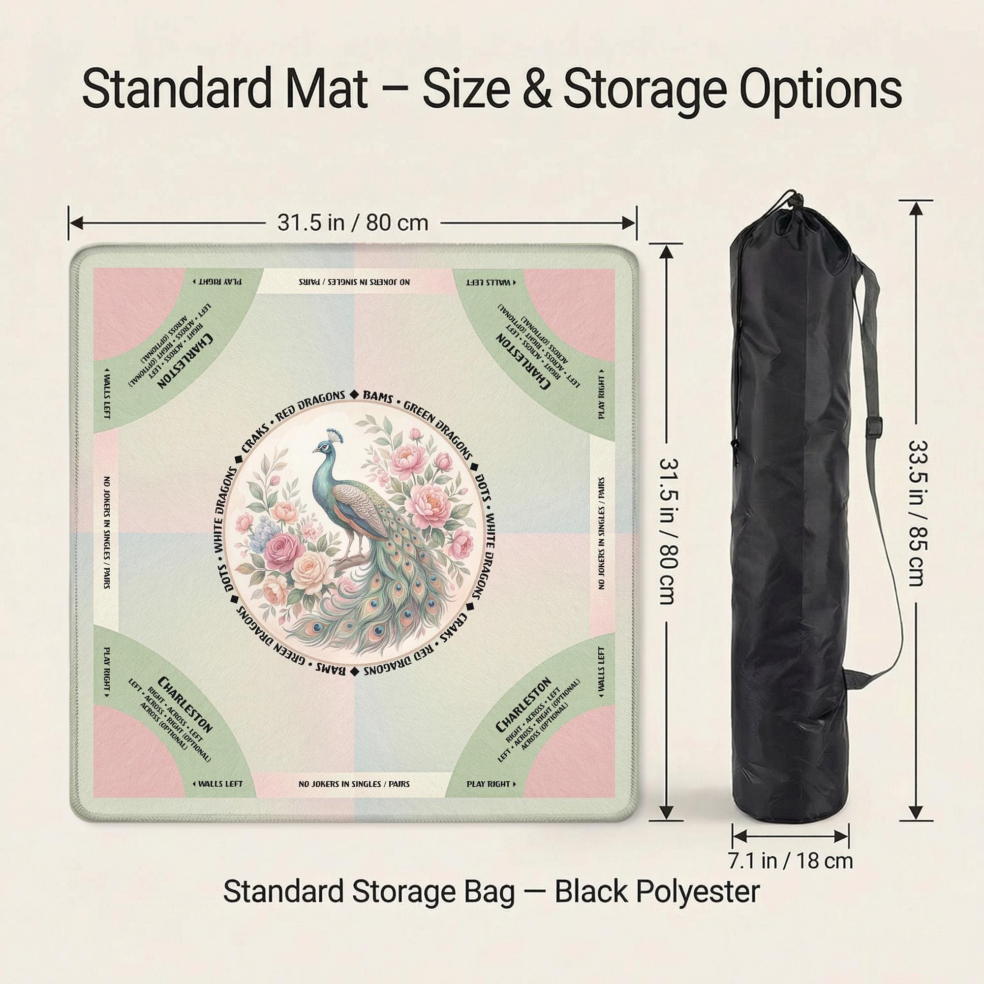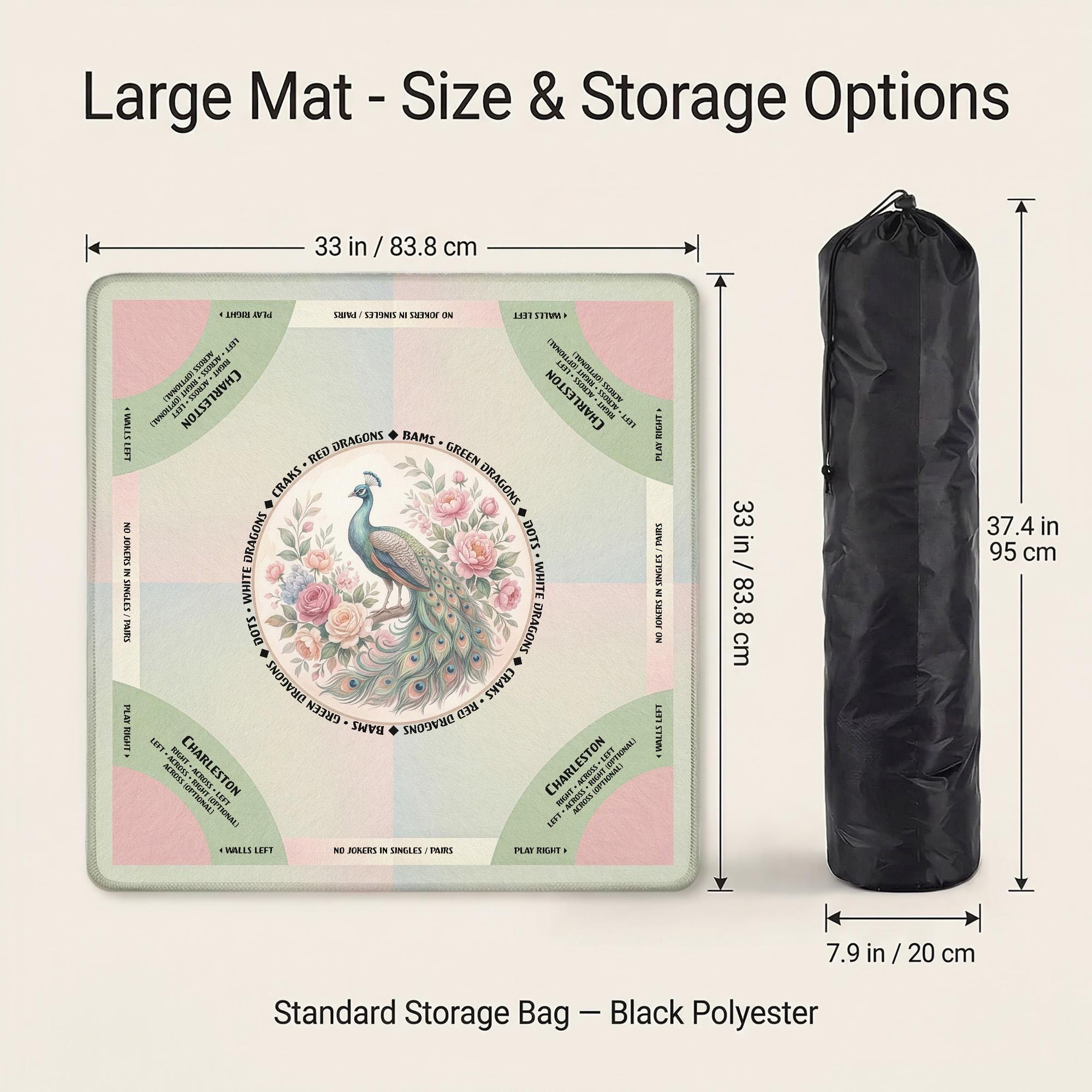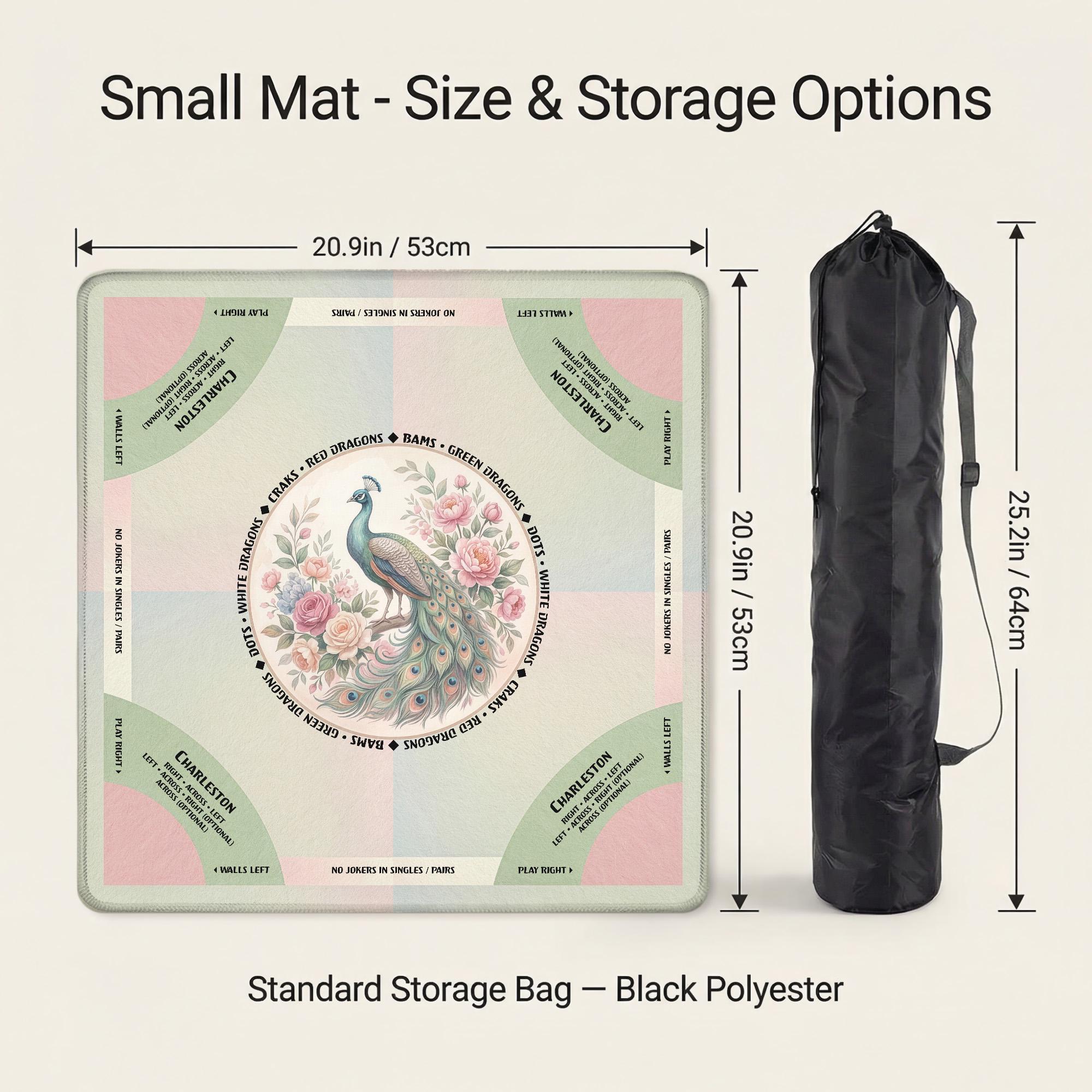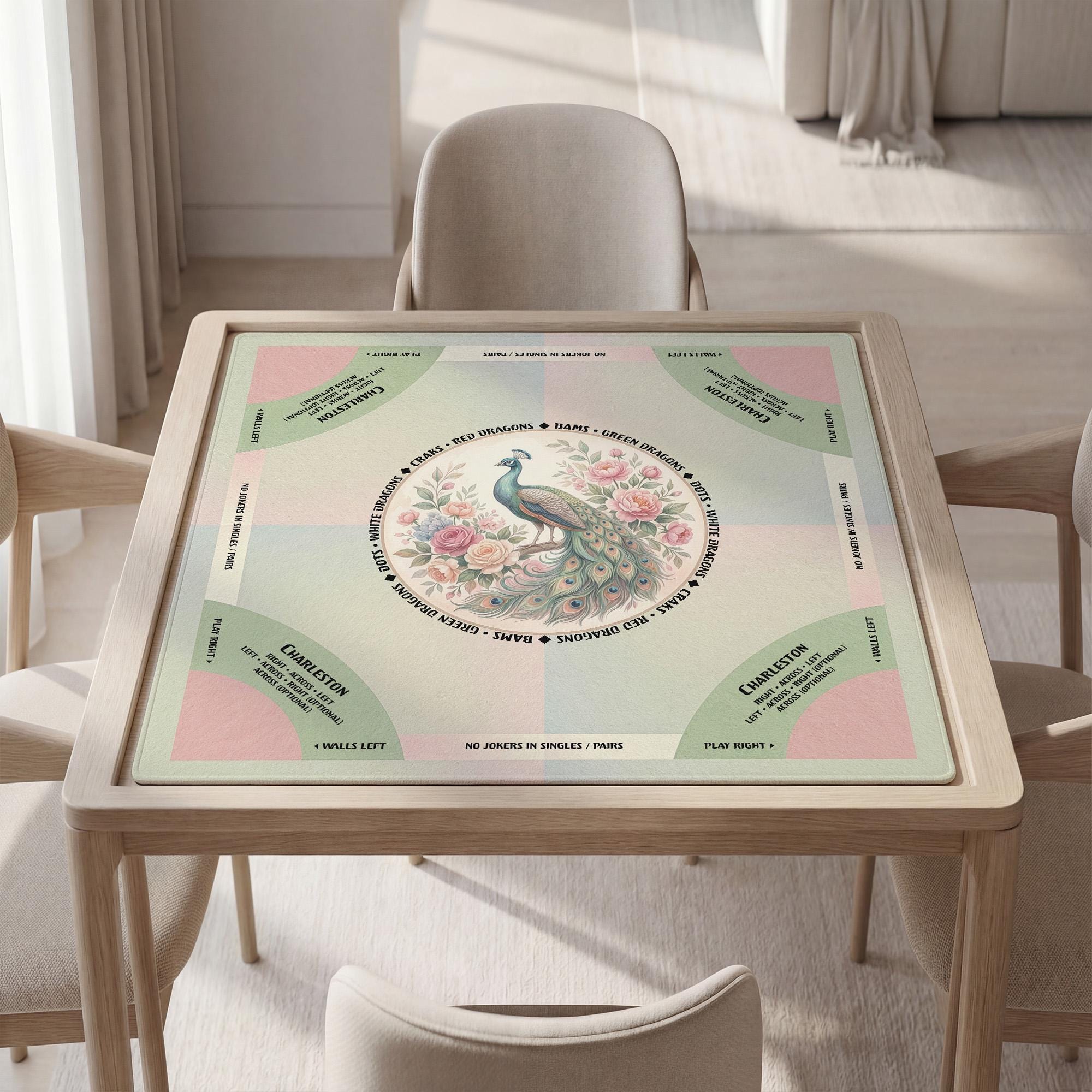 Elevate your game nights with this luxurious mahjong mat, designed for seasoned players who appreciate both style and function. Featuring a stunning peacock game mat design, it offers a smooth play surface paired with a non slip backing to keep your tiles steady throughout every round. The included carry bag makes it the perfect mahjong gift idea for enthusiasts seeking elegance and convenience.
