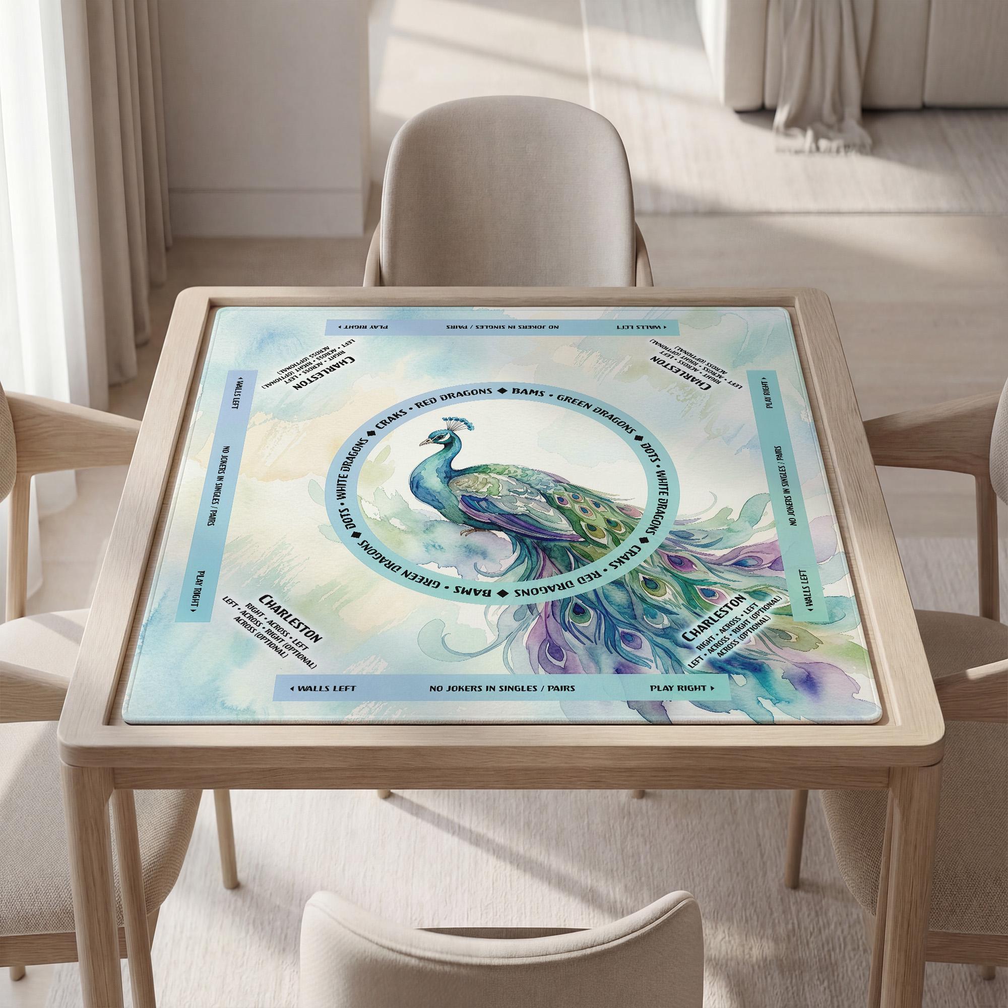 Elevate your mahjong experience with this luxury mahjong mat, designed for seasoned players who appreciate both style and functionality. Featuring a stunning peacock design, this elegant game mat offers a smooth play surface enhanced by a non slip backing to keep your tiles secure throughout every round. Perfect as a mahjong gift idea, it also includes a convenient carry bag for easy transport to game nights or gatherings.