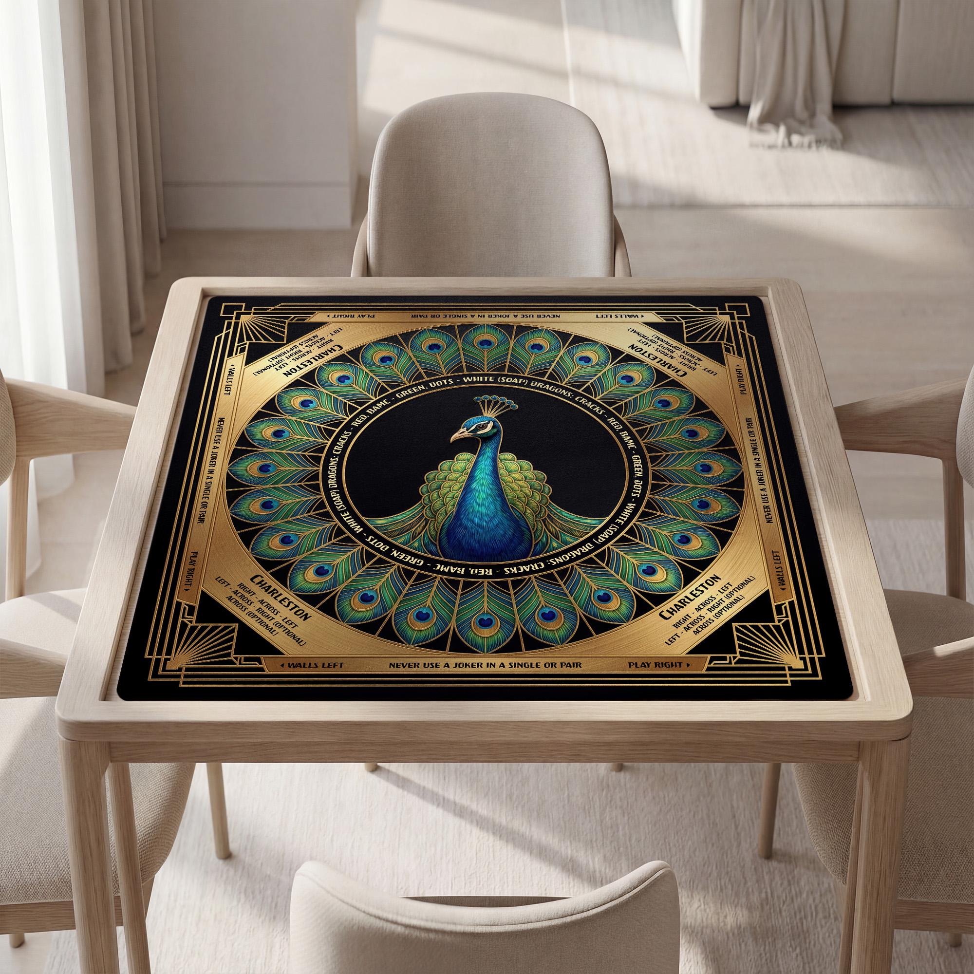 Elevate your mahjong experience with this luxury mahjong mat, featuring a stunning peacock design that adds elegance and charm to every game night. Designed for seasoned players, this custom mahjong mat combines a smooth play surface with a non slip backing to ensure your tiles stay perfectly in place. Complete with a matching carry bag, itβs the perfect game night accessory and gift for those who appreciate style and functionality.