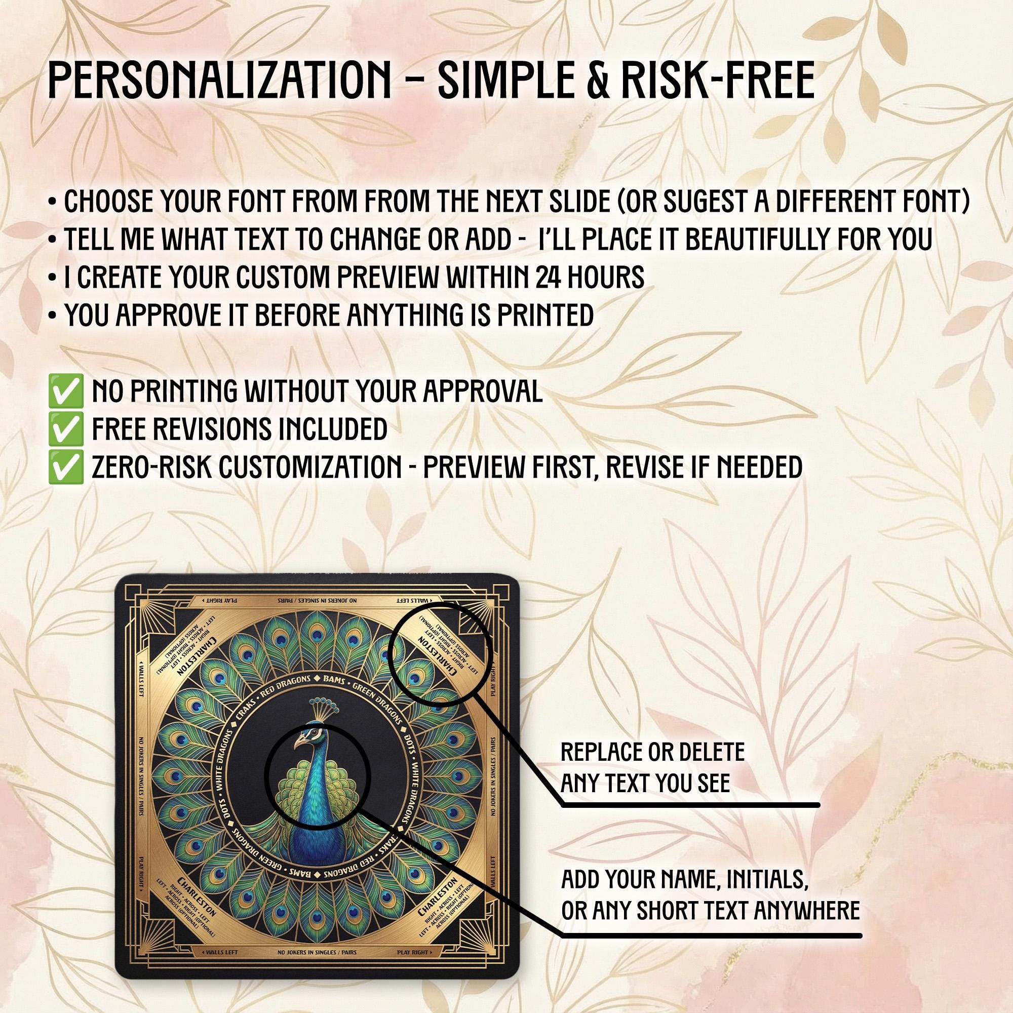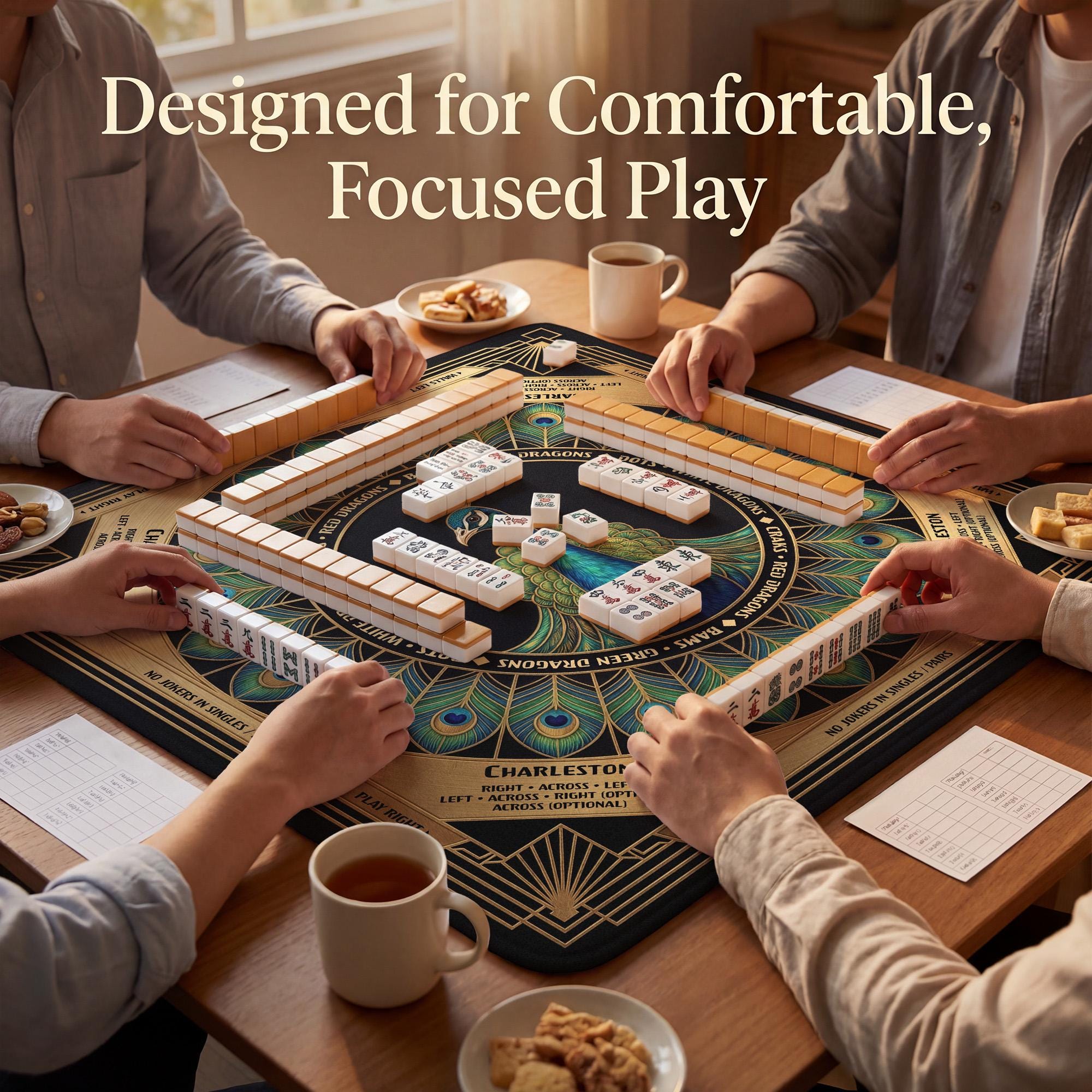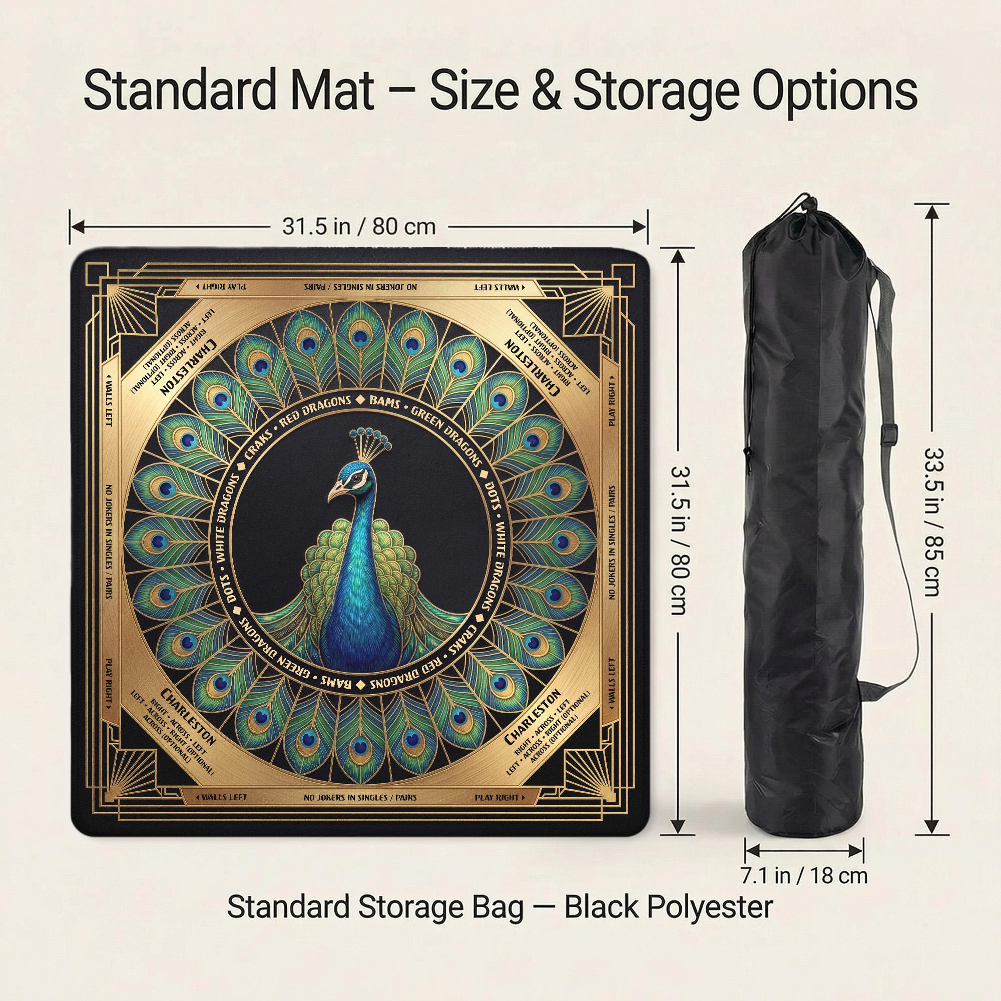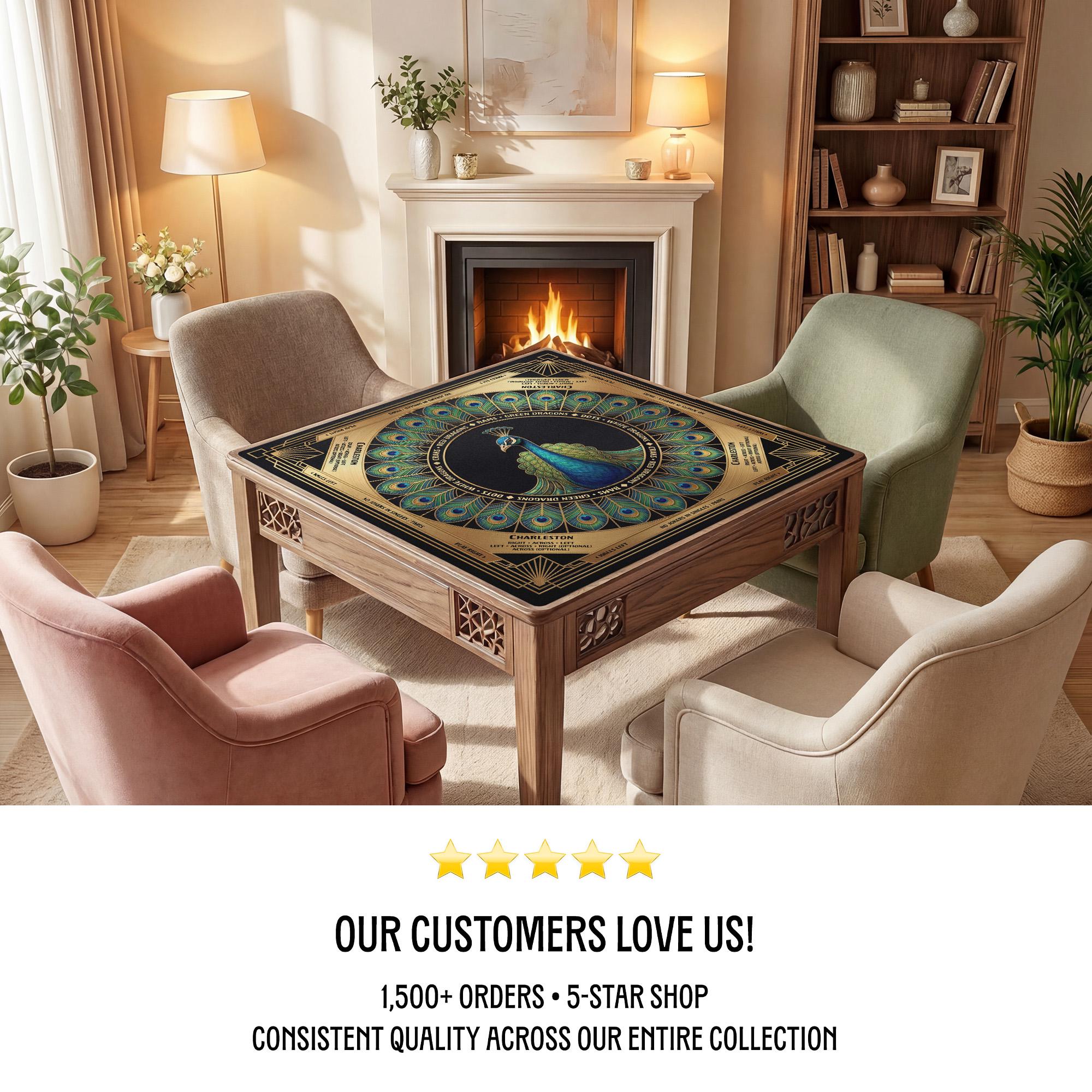 Elevate your mahjong experience with this luxury mahjong mat, featuring a stunning peacock design that adds elegance and charm to every game night. Designed for seasoned players, this custom mahjong mat combines a smooth play surface with a non slip backing to ensure your tiles stay perfectly in place. Complete with a matching carry bag, itβs the perfect game night accessory and gift for those who appreciate style and functionality.