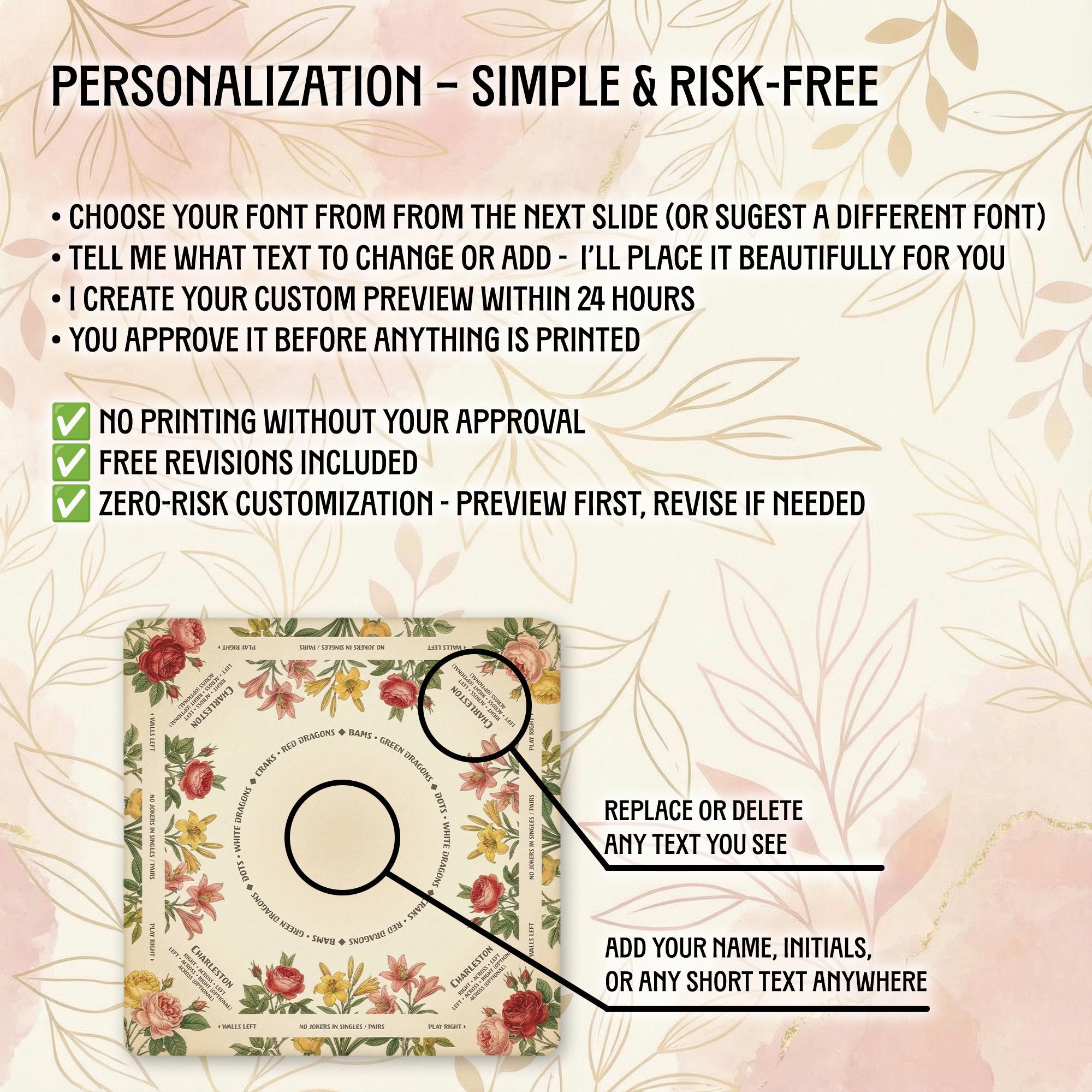 Our shop is dedicated to creating thoughtful, high-quality accessories that enhance your gaming moments. Each personalized Mahjong mat is carefully crafted with attention to detail and shipped promptly to bring joy to your game nights and special occasions.