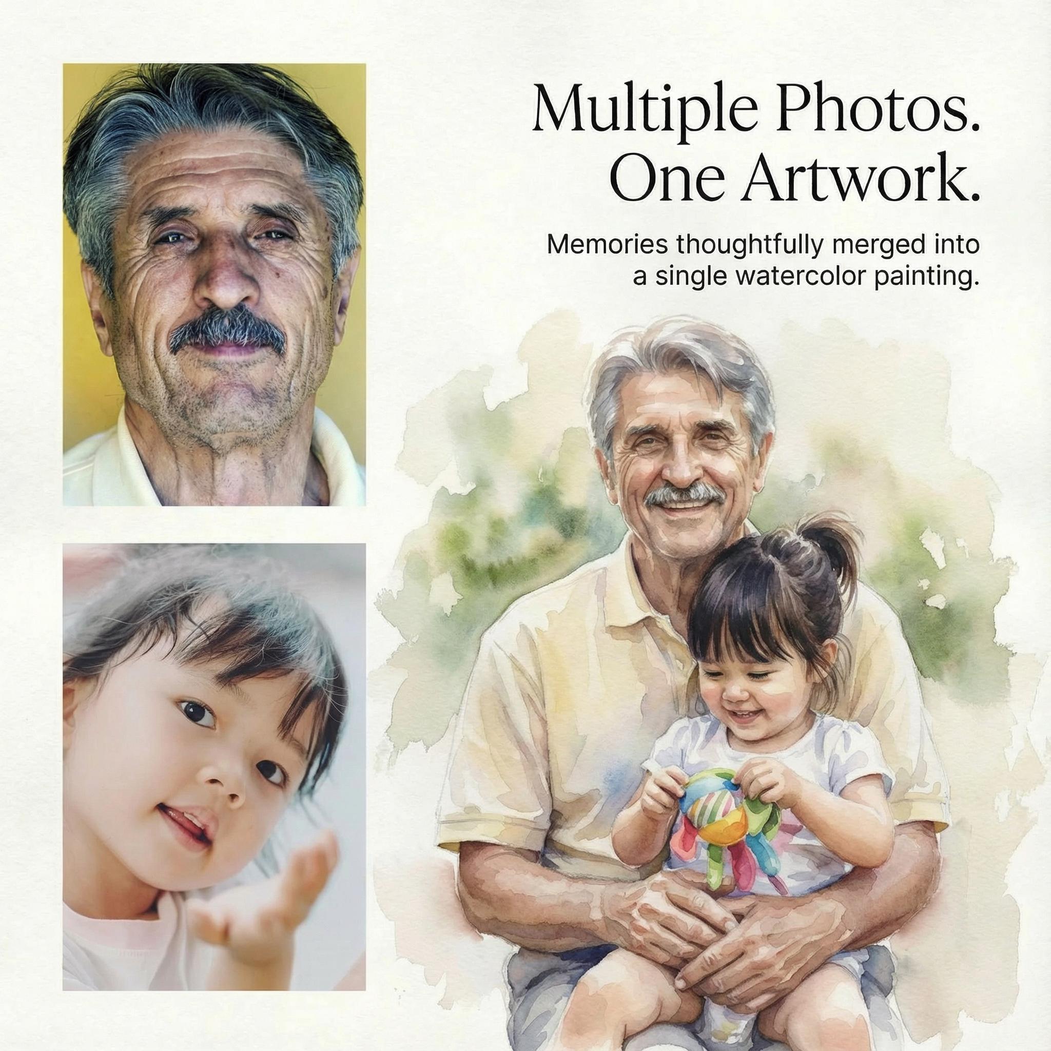 Discover the magic of transforming your cherished memories into stunning fine art watercolor paintings. Whether you want a custom watercolor from a single photo or an artistic photo merge combining multiple images, each piece is crafted with care and creativity. This unique home wall art captures the essence of your favorite subjectsβpeople, pets, landscapesβwith soft brushstrokes and high resolution detail that truly bring your photos to life.