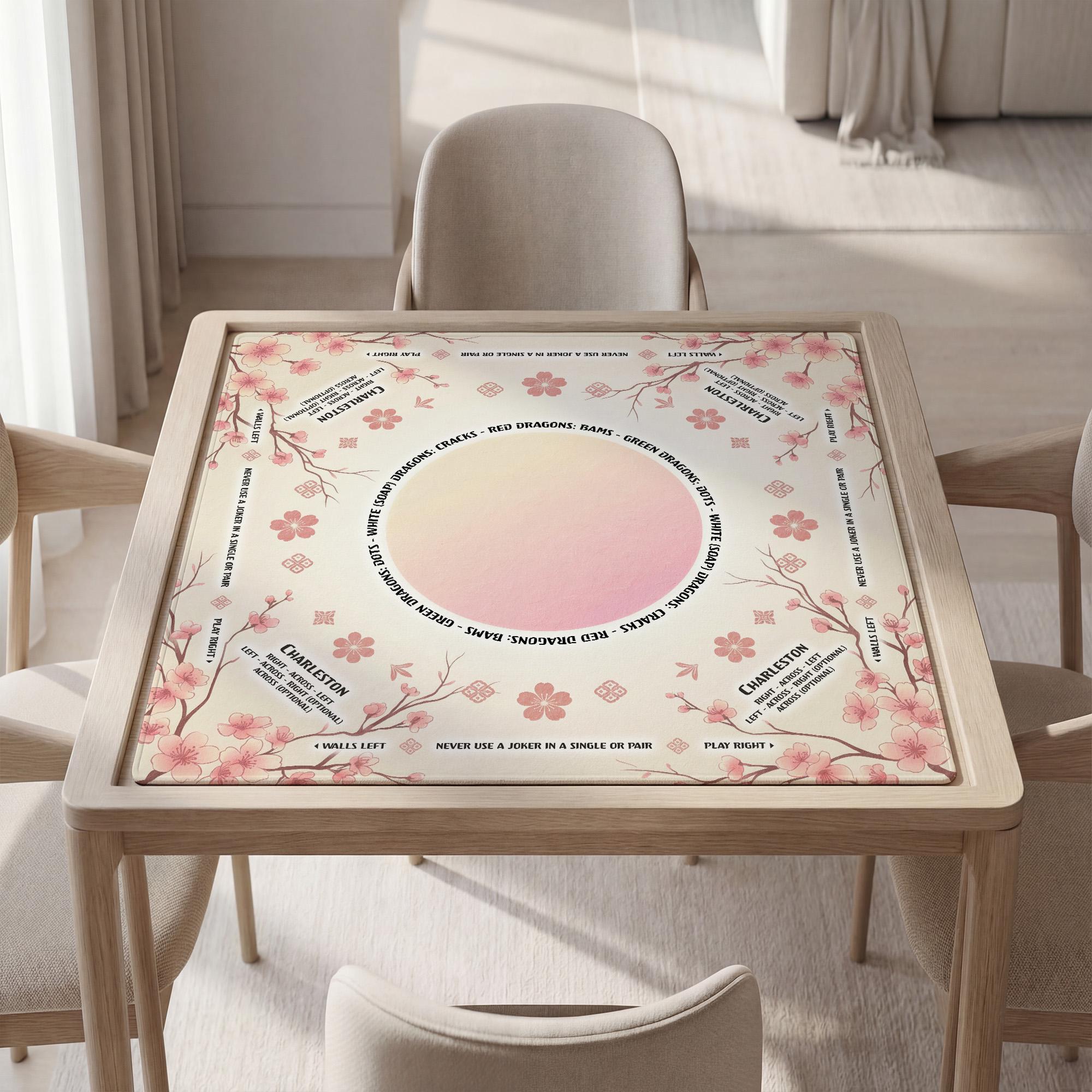 Immerse yourself in the serene elegance of this cherry blossom mat, designed to bring a touch of nature's beauty to your game nights. Featuring delicate sakura floral decor and a smooth play surface, this mahjong playing mat enhances every tile placement with quiet precision. Its custom text carry option allows you to personalize the mat with names or monograms, making it uniquely yours.