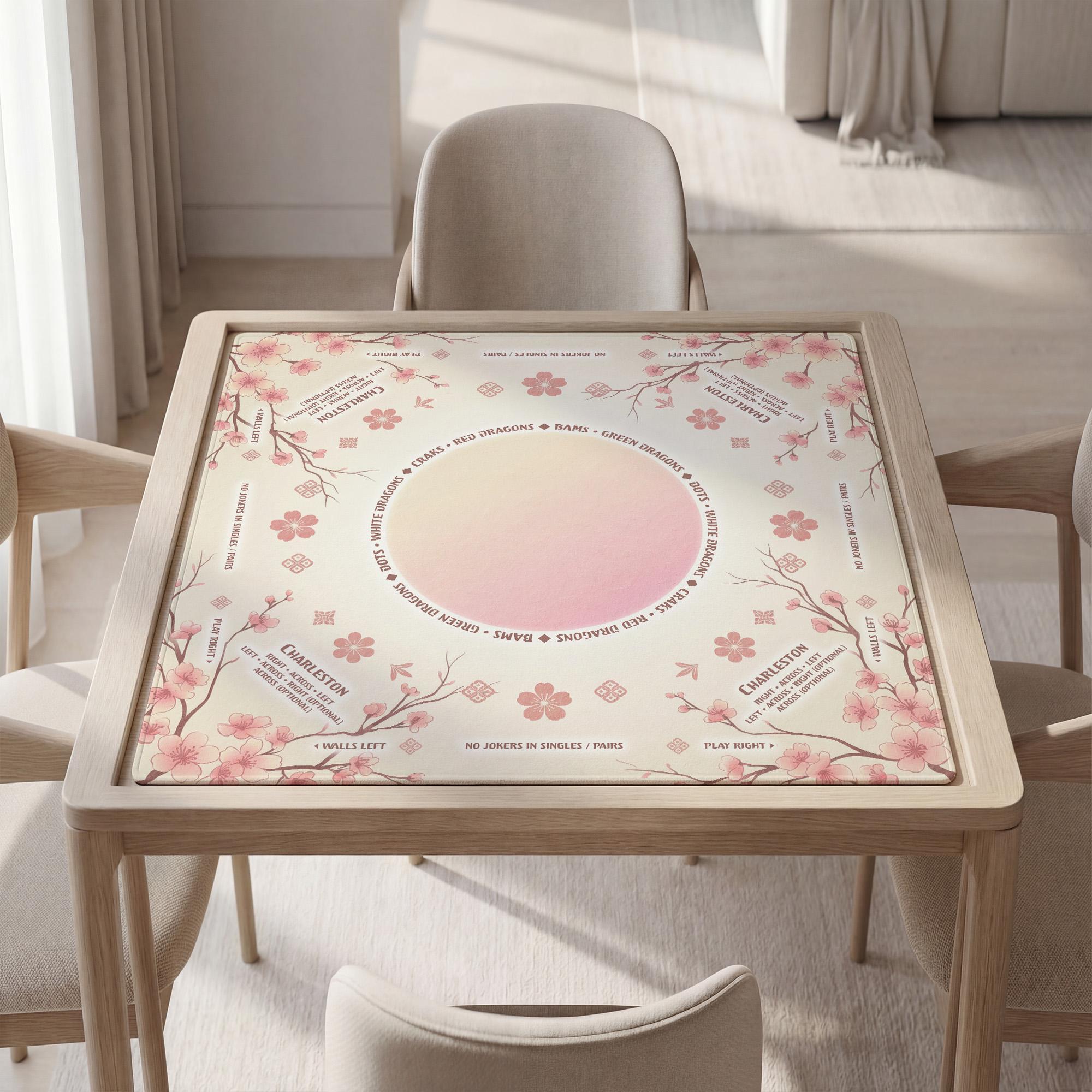 Immerse yourself in the serene elegance of this cherry blossom mat, designed to bring a touch of nature's beauty to your game nights. Featuring delicate sakura floral decor and a smooth play surface, this mahjong playing mat enhances every tile placement with quiet precision. Its custom text carry option allows you to personalize the mat with names or monograms, making it uniquely yours.