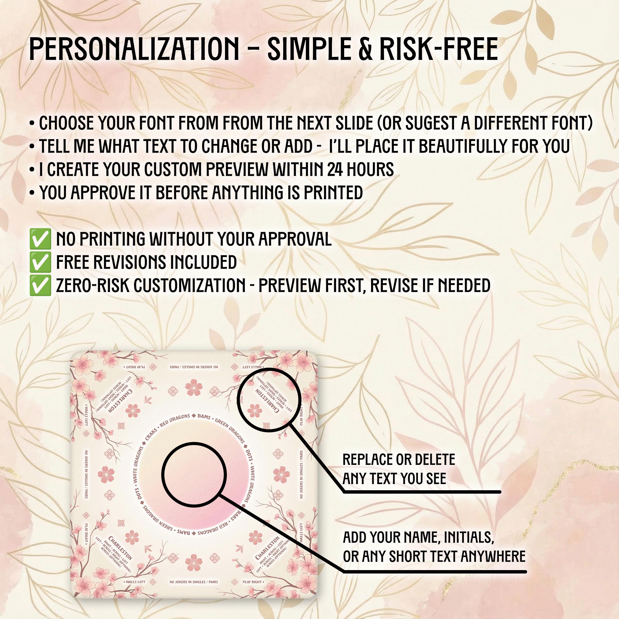 Our shop is dedicated to creating thoughtful, high-quality accessories that enhance your gaming moments. Each personalized Mahjong mat is carefully crafted with attention to detail and shipped promptly to bring joy to your game nights and special occasions.