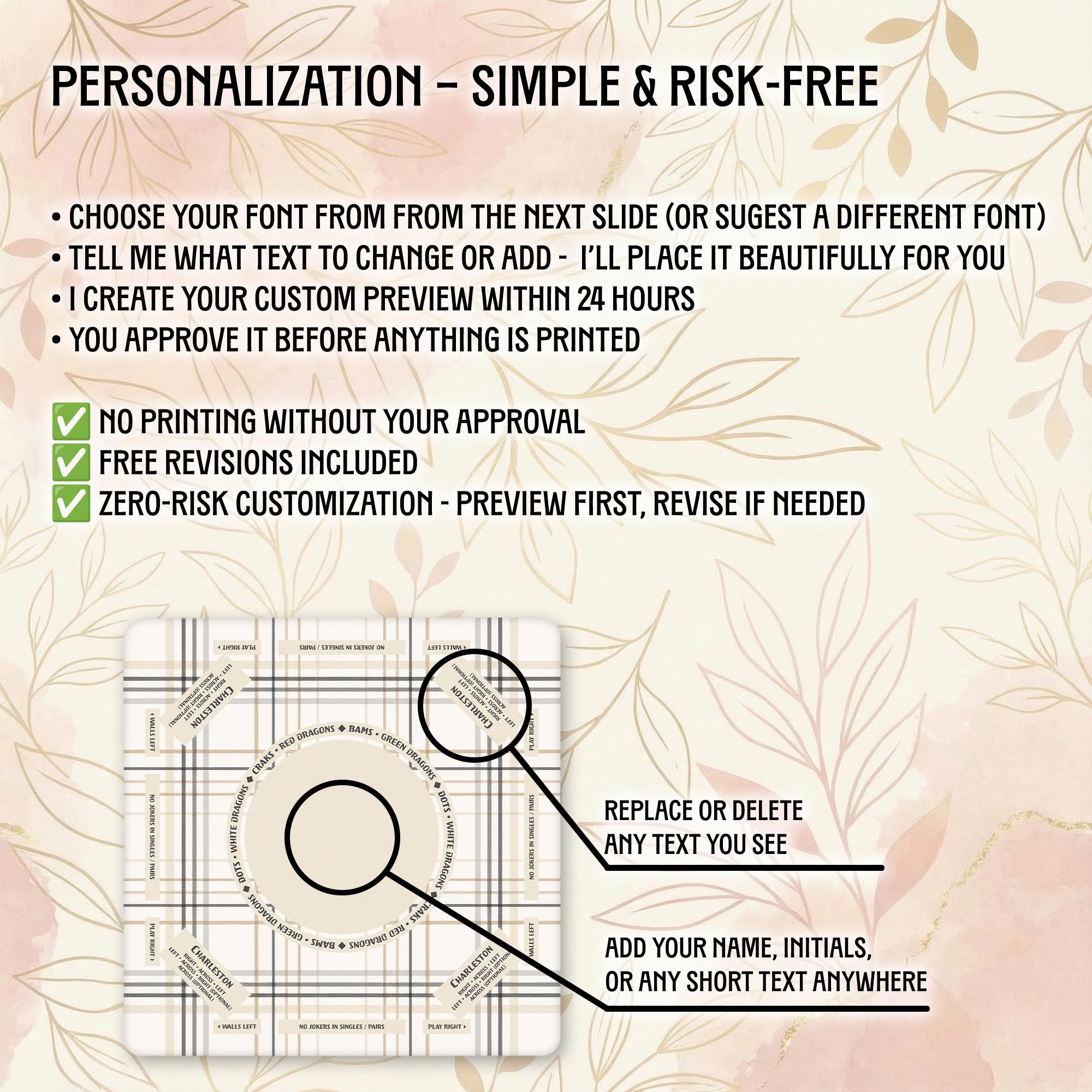 Our shop is dedicated to creating thoughtful, high-quality accessories that enhance your gaming moments. Each personalized Mahjong mat is carefully crafted with attention to detail and shipped promptly to bring joy to your game nights and special occasions.