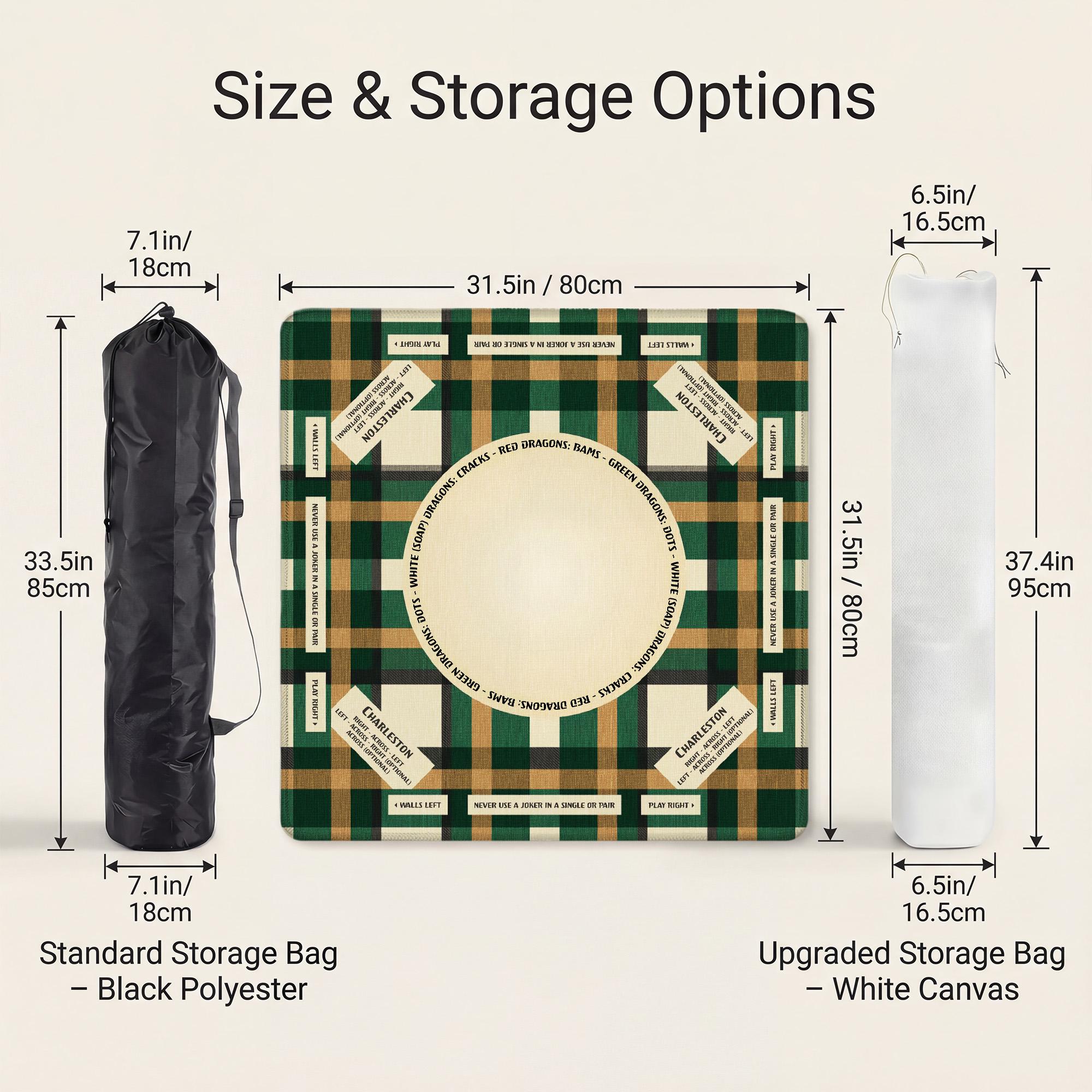 Elevate your game nights with this custom mahjong playing mat, where elegance meets functionality in a plaid green and beige design. Crafted for seasoned players, the luxury mahjong mat features a smooth play surface that reduces tile noise, paired with a non-slip rubber backing to keep every move steady. Included with the mat is a convenient carry bag, making it the perfect mahjong gift idea for enthusiasts who value style and portability.