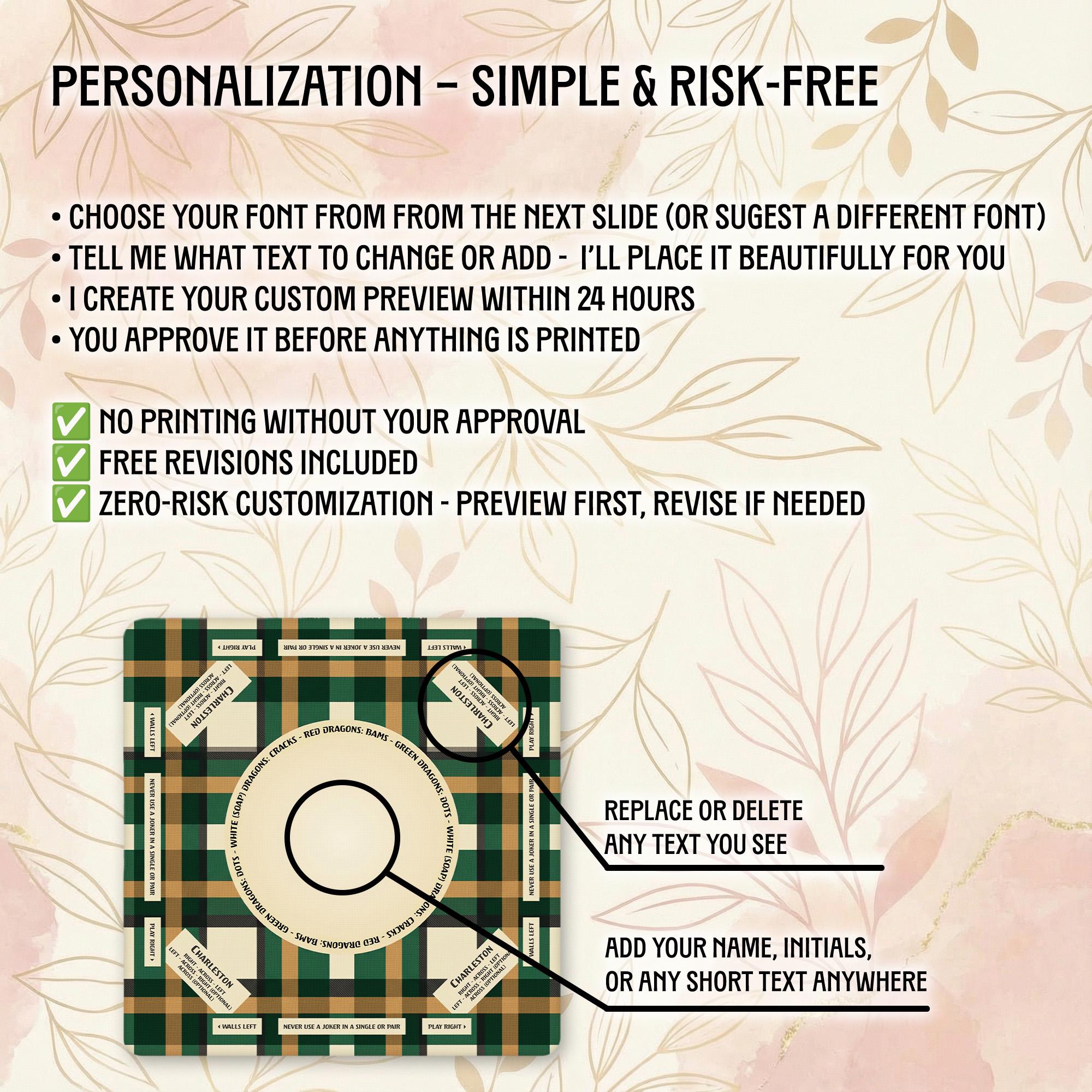 Our shop is dedicated to creating thoughtful, high-quality accessories that enhance your gaming moments. Each personalized Mahjong mat is carefully crafted with attention to detail and shipped promptly to bring joy to your game nights and special occasions.