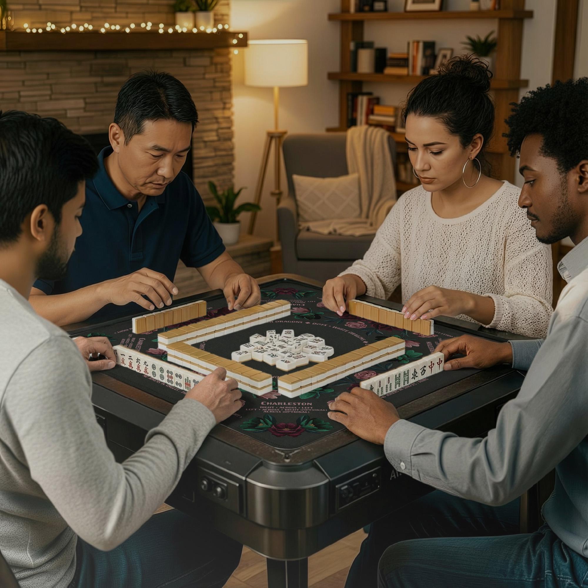 Experience the perfect blend of elegance and functionality with this custom game mat, designed to elevate your mahjong sessions. Featuring a captivating dark floral design, this mat brings rich dark green tones and burgundy blooms to your game room decor, creating a serene yet stylish atmosphere. Crafted for quiet mahjong play, it ensures every tile move is smooth and noise-free, making your gaming moments truly enjoyable.