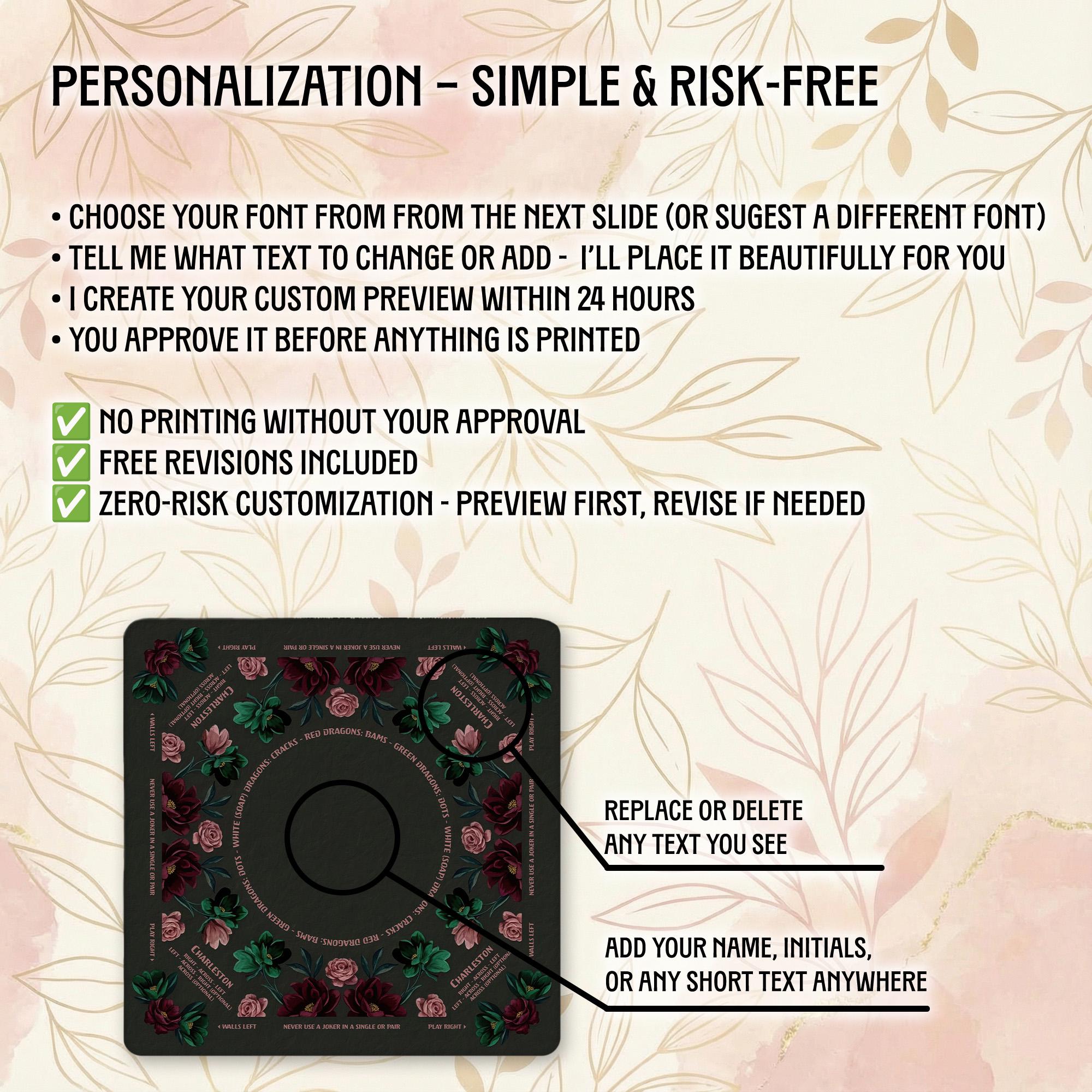 Our shop is dedicated to creating thoughtful, high-quality accessories that enhance your gaming moments. Each personalized Mahjong mat is carefully crafted with attention to detail and shipped promptly to bring joy to your game nights and special occasions.