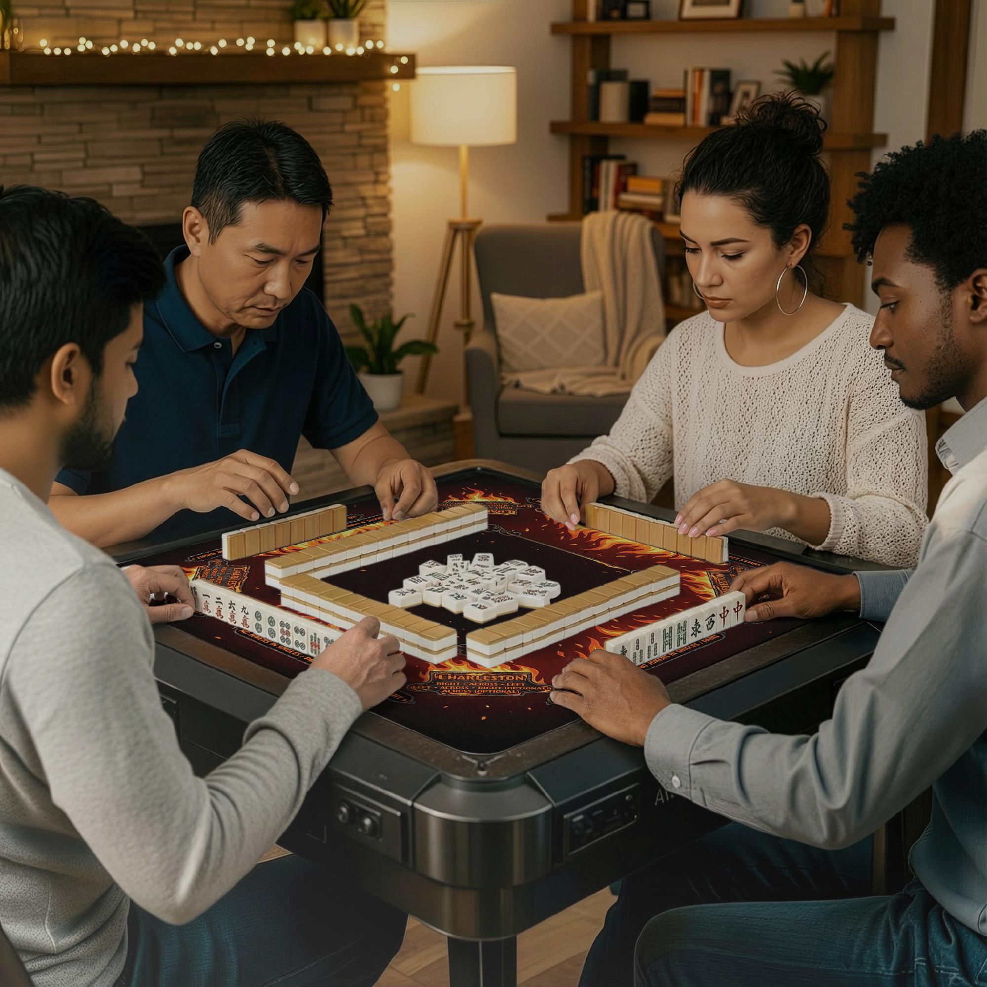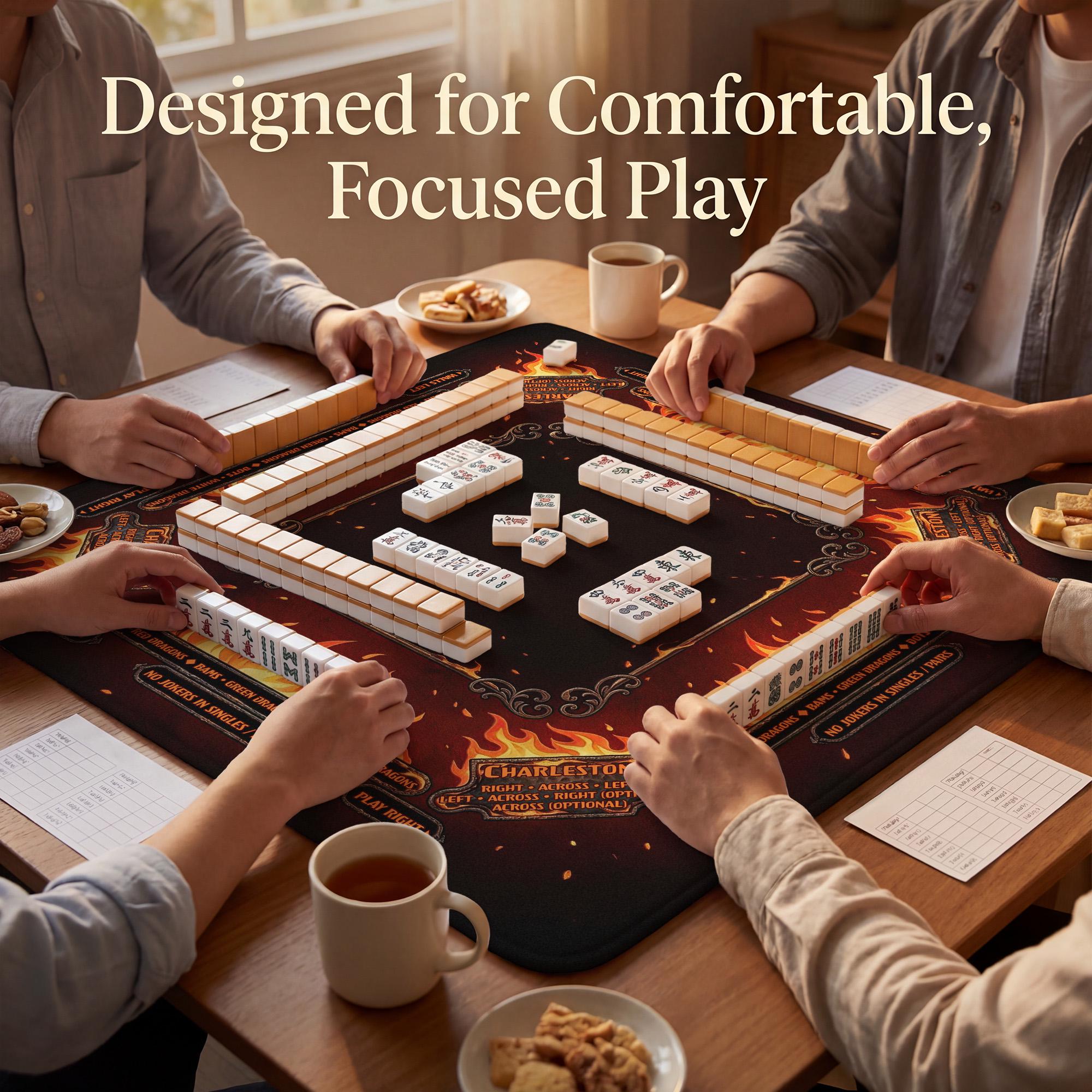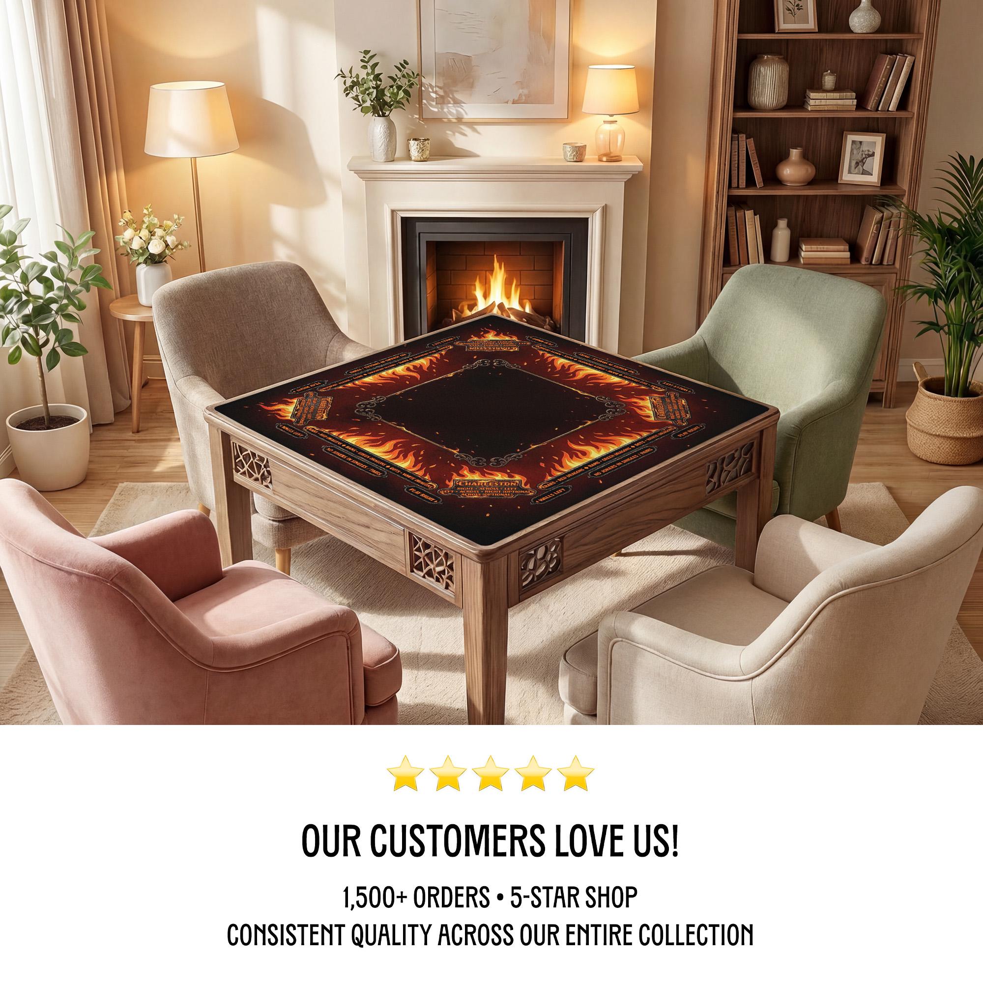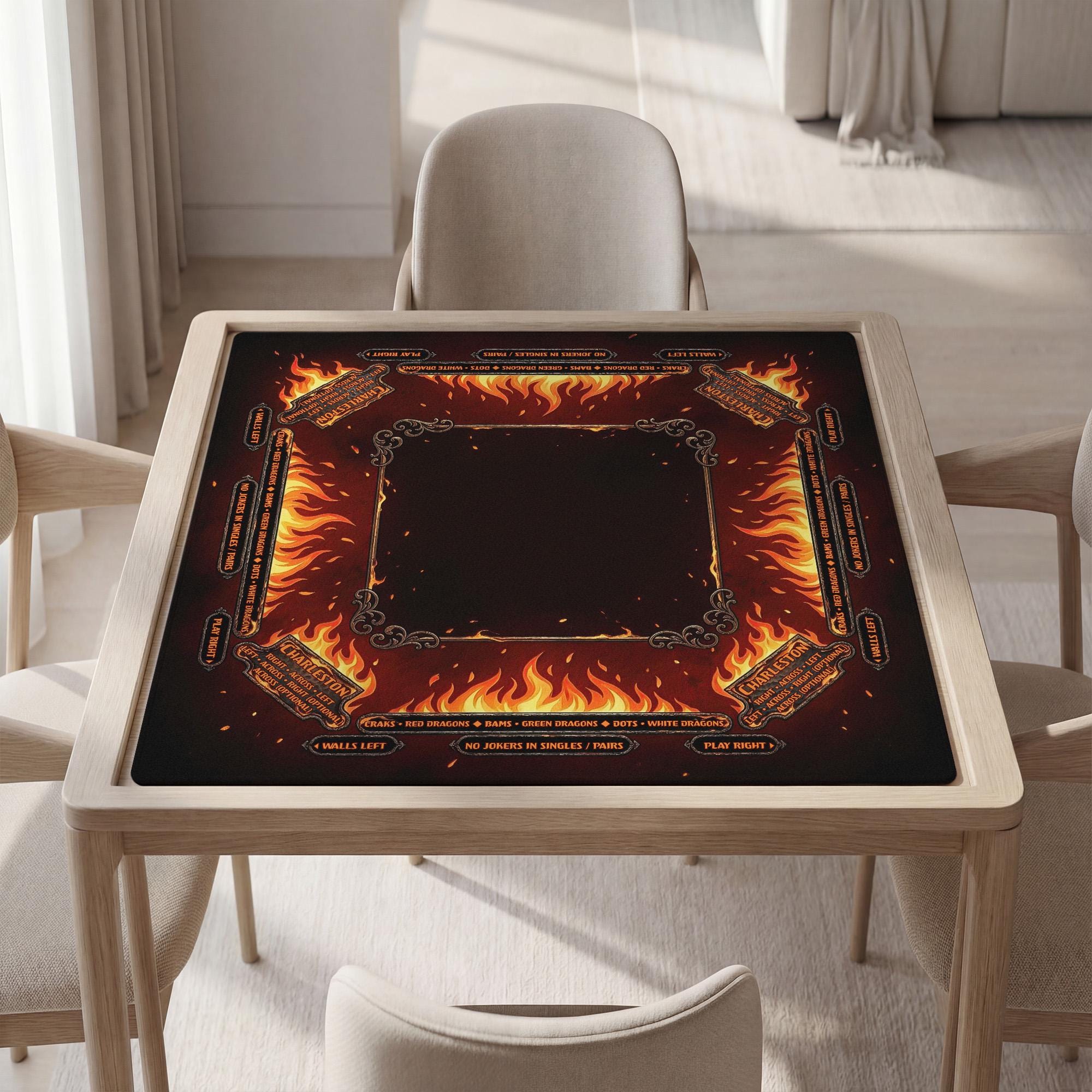 Ignite your game nights with this masculine mahjong mat featuring a bold fire inspired design that commands attention and elevates your playing experience. Crafted for players who appreciate both style and function, this customizable mat offers a smooth play surface and a non slip rubber backing to keep your tiles steady. Whether you're searching for a bold custom gift or a high impact style accessory, this mat brings both flair and practicality to every game.