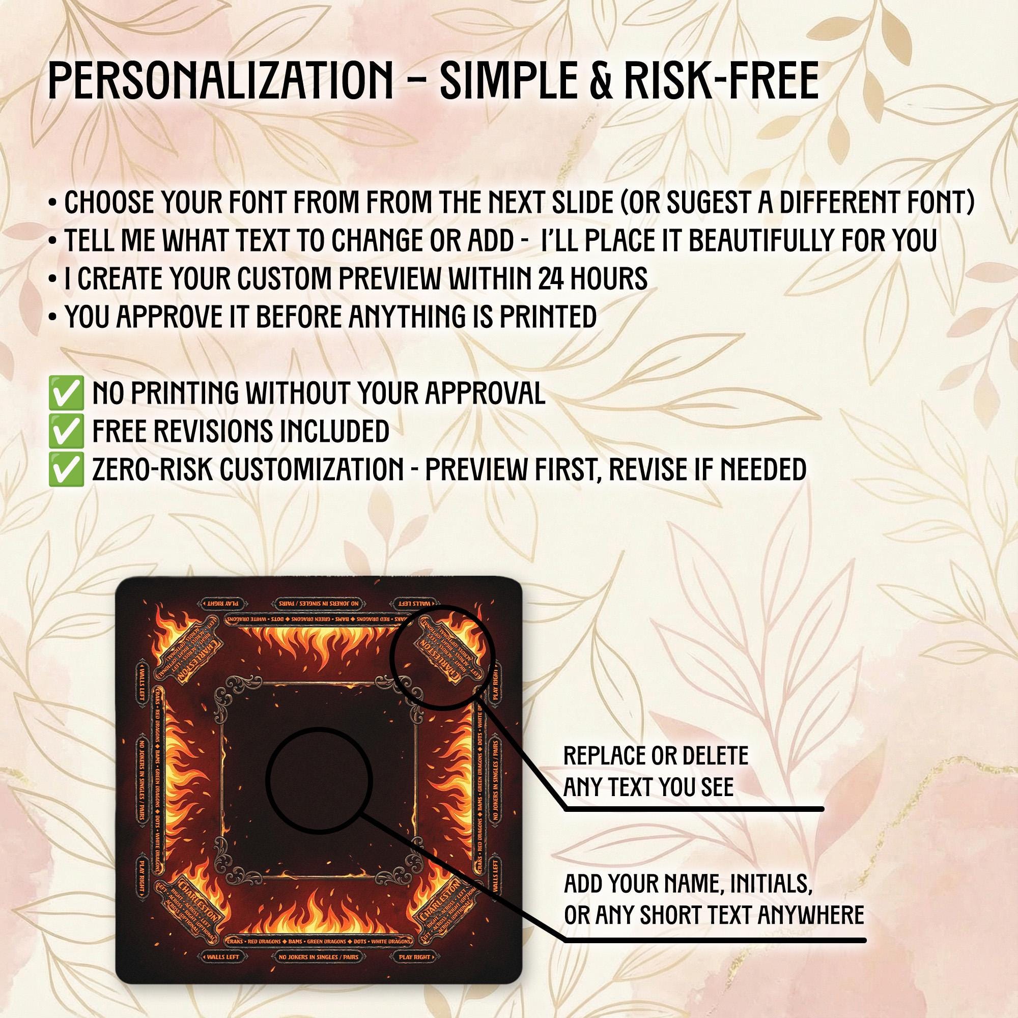 Our shop is dedicated to creating thoughtful, high-quality accessories that enhance your gaming moments. Each personalized Mahjong mat is carefully crafted with attention to detail and shipped promptly to bring joy to your game nights and special occasions.