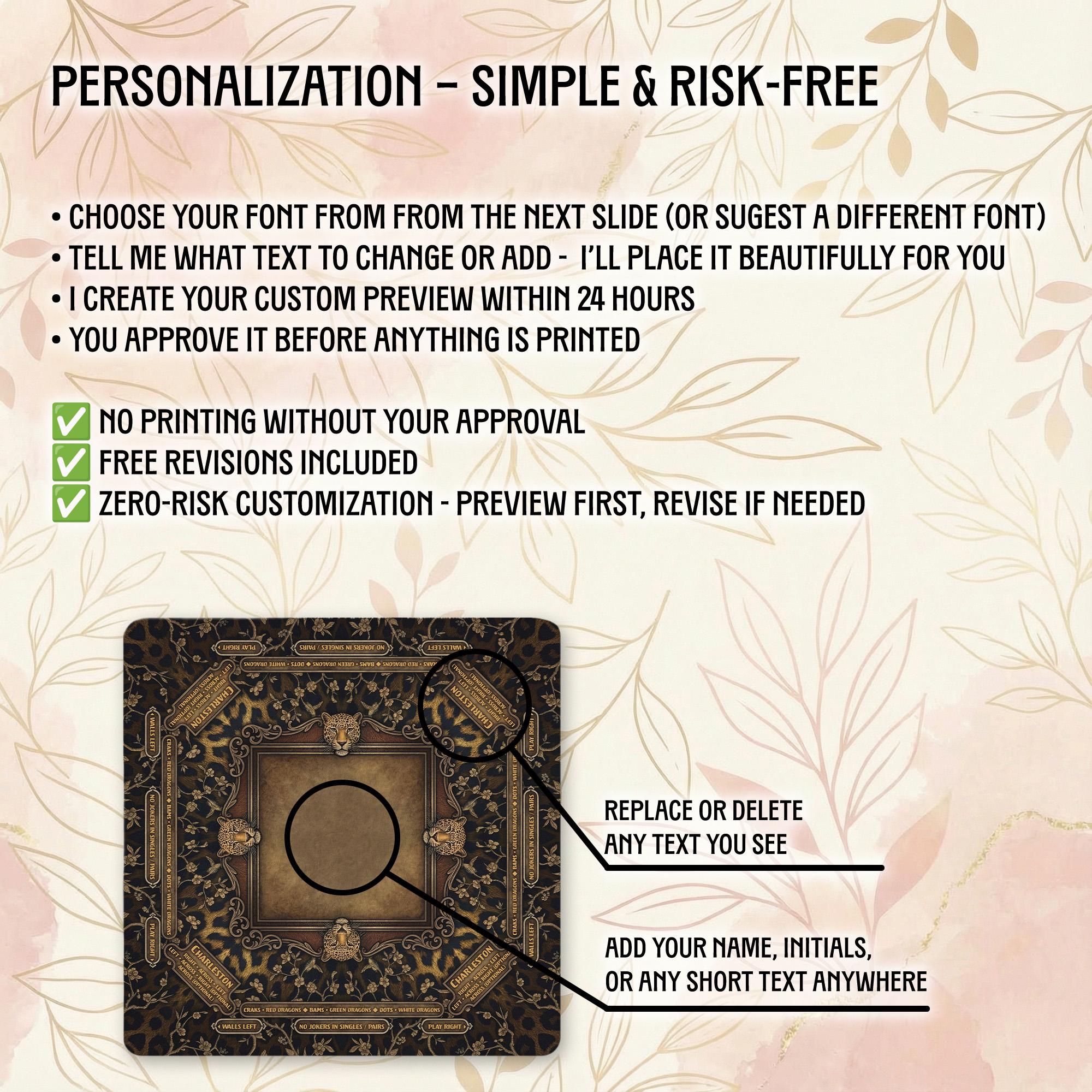 Discover a sophisticated mahjong mat designed for the discerning player who values both style and function. This masculine mahjong mat features a striking leopard design mat that blends vintage luxury style with modern customization options. Whether you're seeking a custom name mahjong mat or a unique game night gift, this piece elevates your playing experience with elegance and practicality.