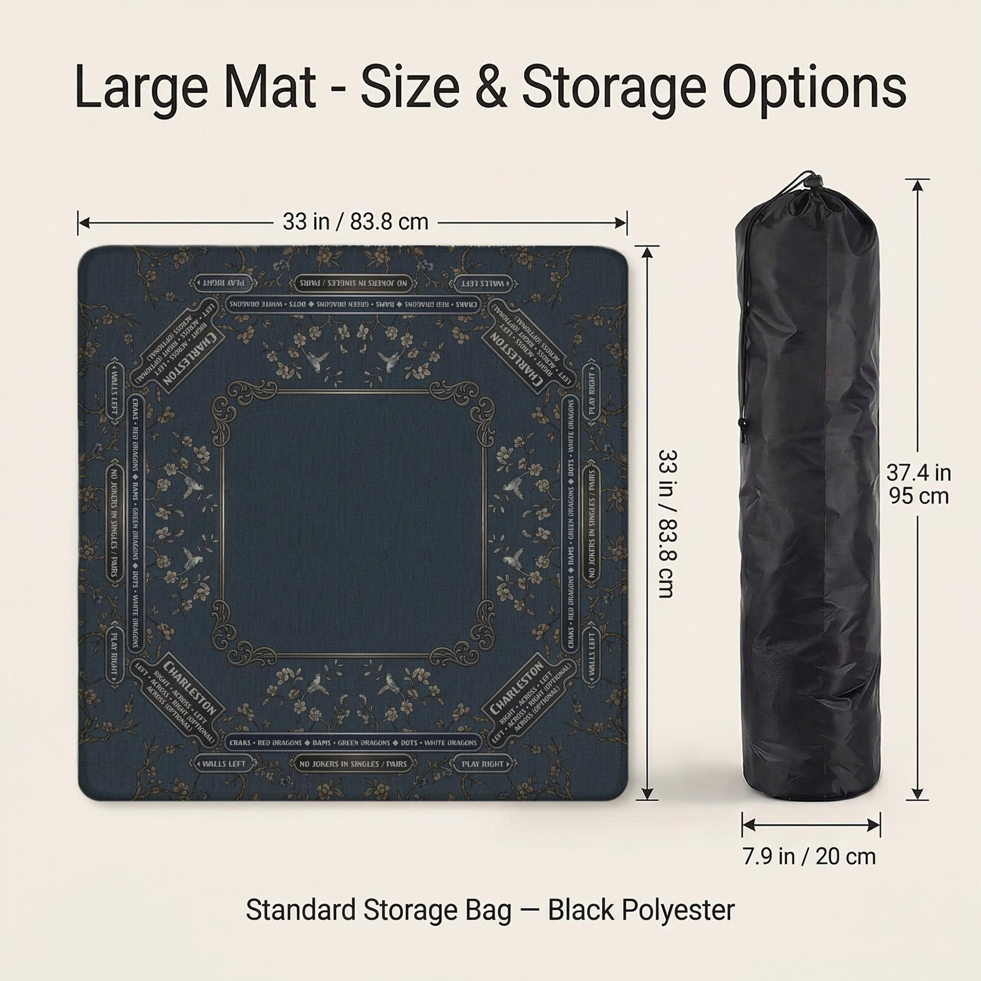 Discover the perfect blend of elegance and functionality with this navy floral mahjong mat, thoughtfully designed for American Mahjong enthusiasts. Featuring a quiet tile playmat surface and a non slip backing, it ensures an enjoyable and stable gaming experience. Whether you're searching for a custom mahjong gift or a timeless game decor piece, this mat brings sophistication and personalization to every game night.