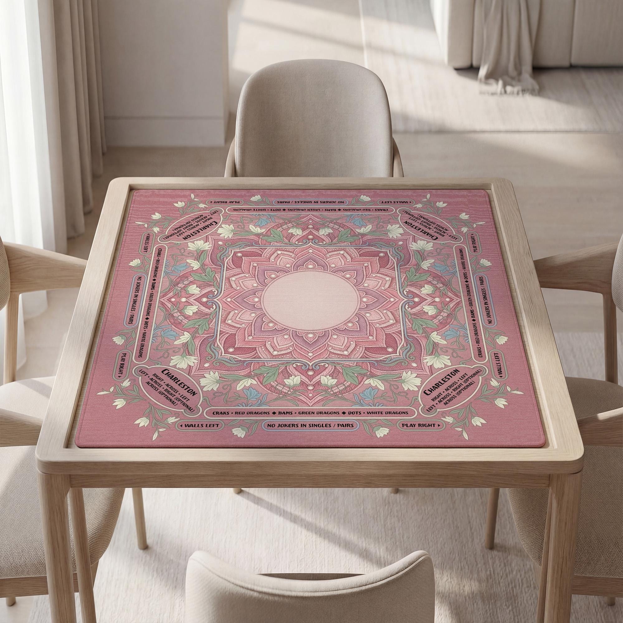 Immerse yourself in the serene beauty of this pink floral mandala mahjong table mat, designed to elevate your game with elegance and tranquility. Crafted for American Mahjong enthusiasts who appreciate refined details, this soft polyester mat features a quiet game surface that enhances every tile's glide. With a personalized option and a convenient carry pouch included, itβs the perfect blend of style and function.