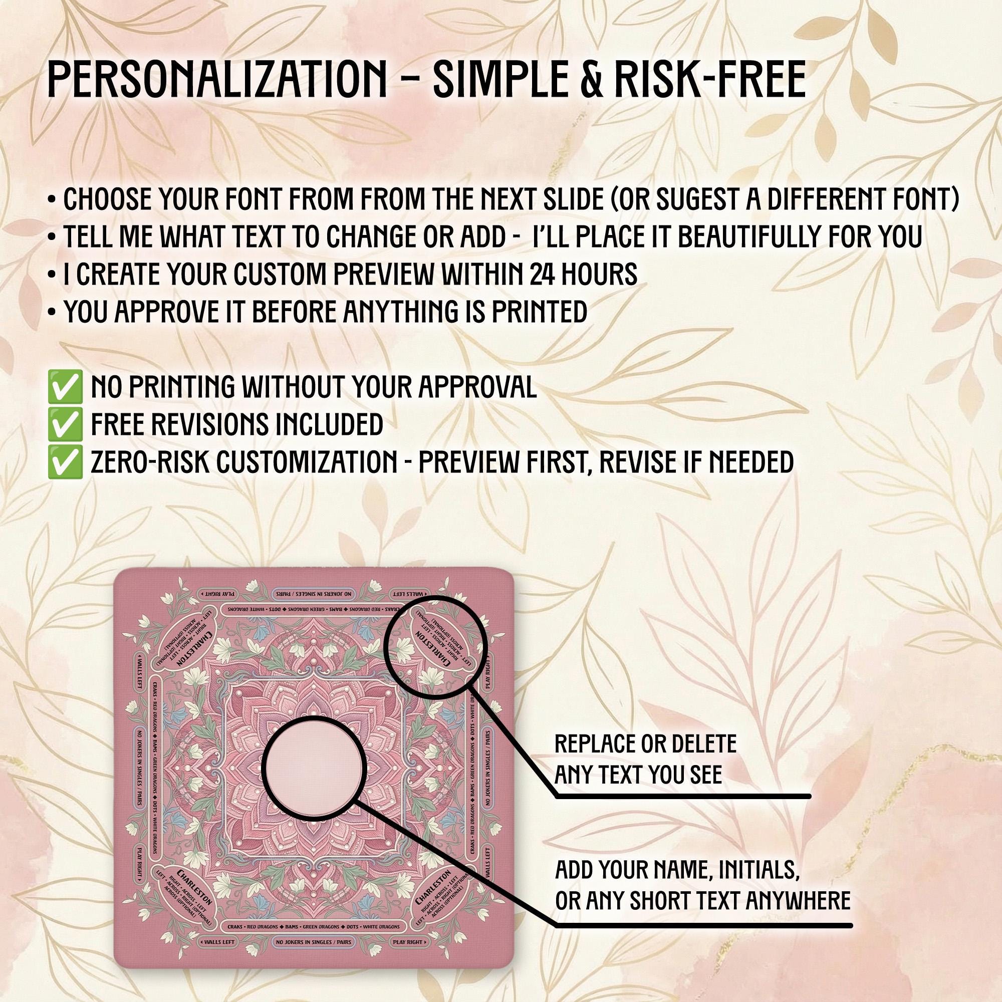 Our shop is dedicated to creating thoughtful, high-quality accessories that enhance your gaming moments. Each personalized Mahjong mat is carefully crafted with attention to detail and shipped promptly to bring joy to your game nights and special occasions.