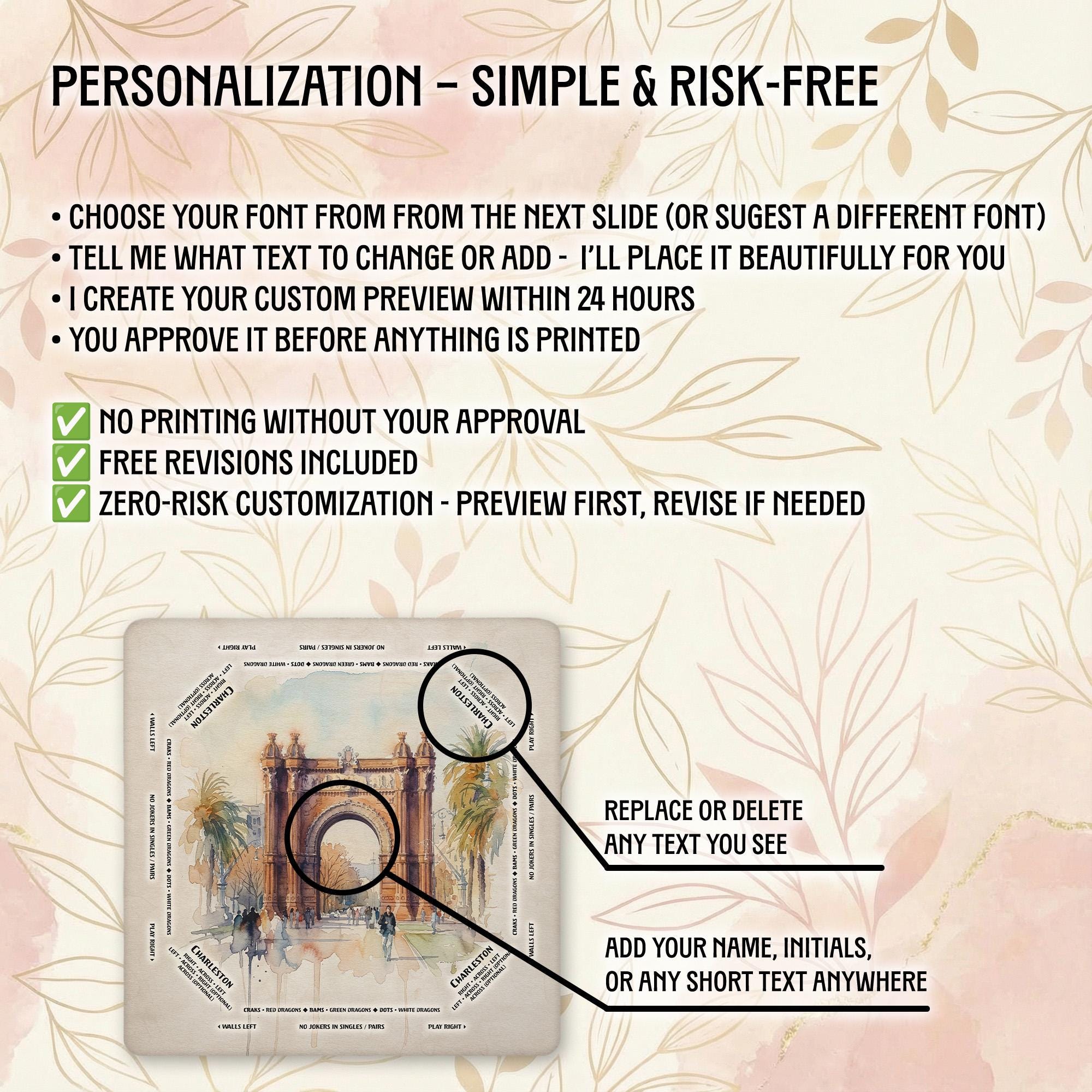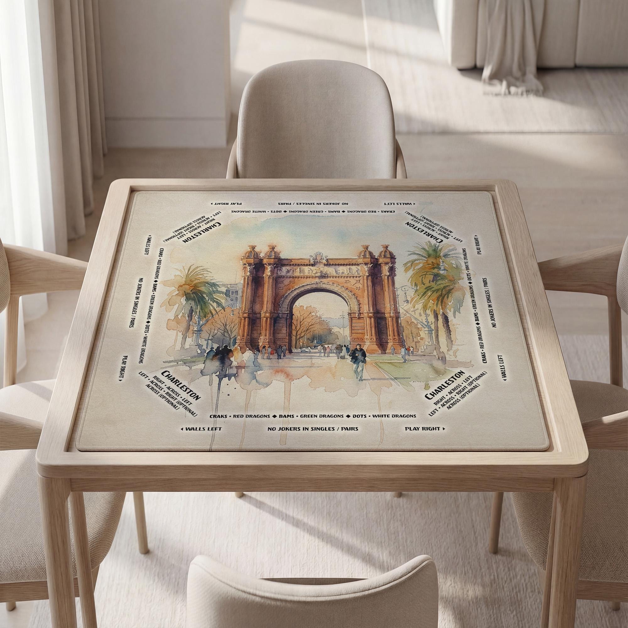 Experience the charm of European travels with this elegant watercolor style mat, thoughtfully designed to enhance your mahjong nights. Inspired by the timeless beauty of Barcelona, this travel inspired mat blends artistry and function, creating a smooth play surface that invites quiet concentration and joyful gatherings. Whether as a unique travel gift or a personalized treasure, it promises to elevate every game with its luxury feel and custom monogram options.