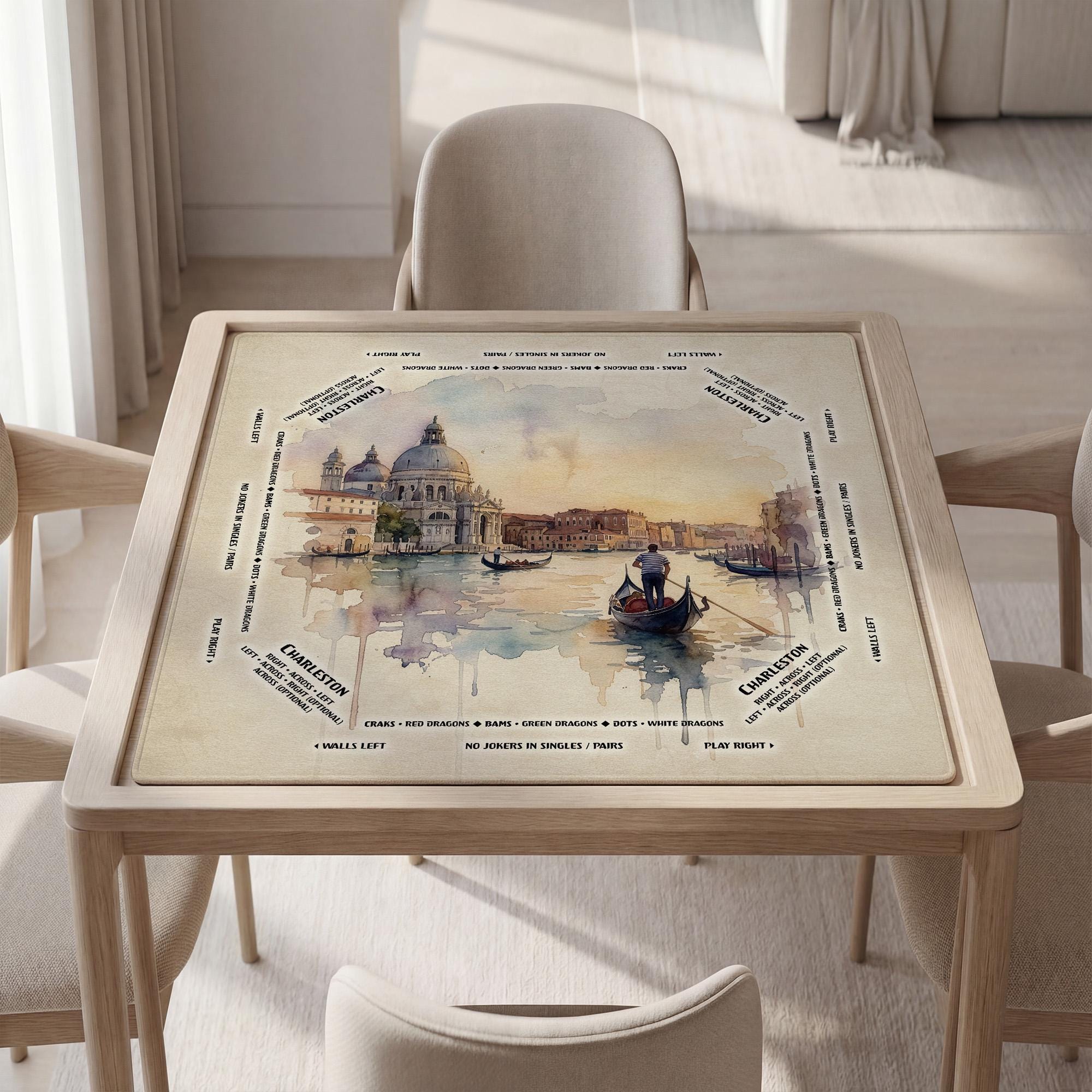 Immerse yourself in the elegance of Venice with this personalized mahjong mat, inspired by the charm of European travel. Crafted with a watercolor style mat design, it brings a touch of artistry and sophistication to your game nights. Whether you're seeking a unique travel gift or a luxury gaming mat for yourself, this piece offers a smooth play surface and custom monogram options to make every game memorable.