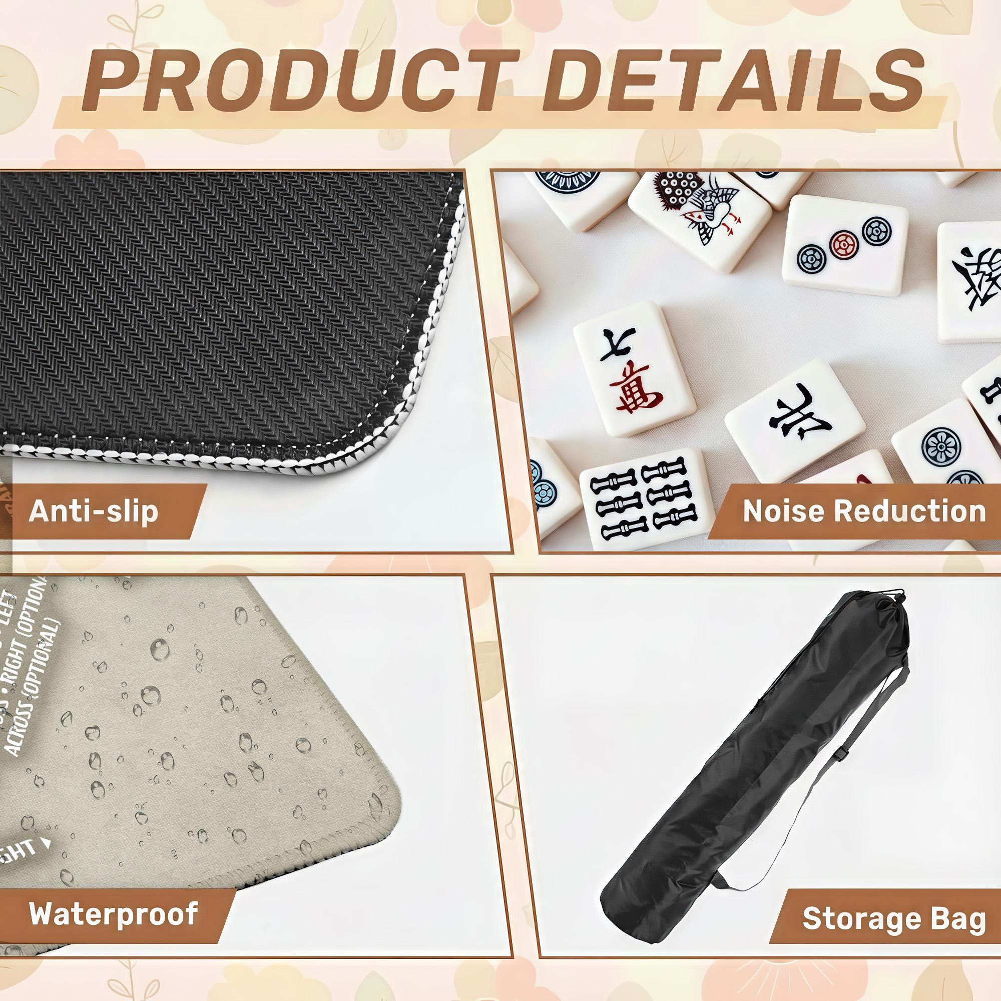 Experience the perfect blend of style and function with this personalized mahjong mat, designed for elegant game nights and seasoned players alike. Featuring a soft polyester top and a quiet tile surface, it ensures a smooth, noise-reduced play experience. The non-slip rubber backing mat keeps everything stable, while the neutral tone decor complements any setting beautifully.