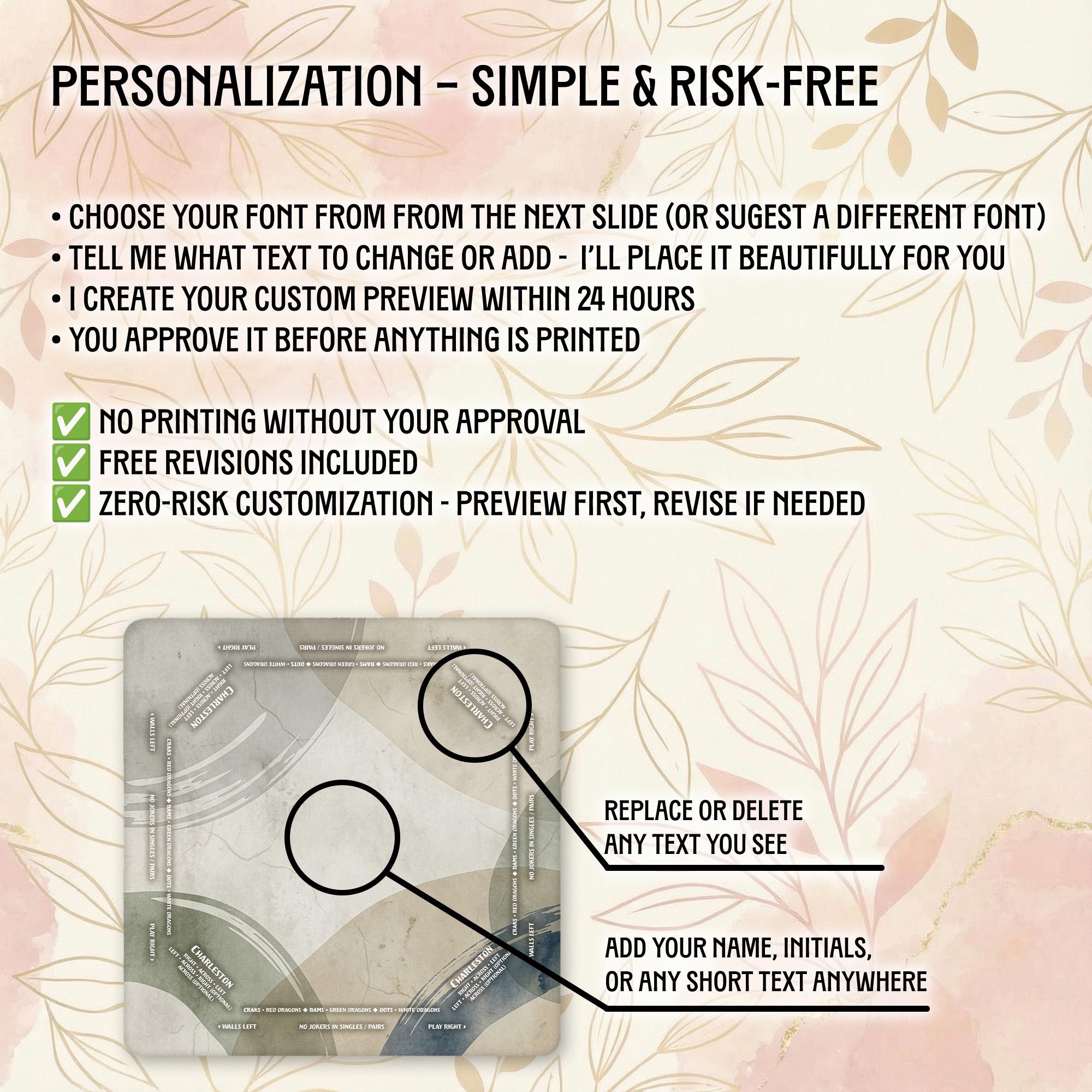 Our shop is dedicated to creating thoughtful, high-quality accessories that enhance your gaming moments. Each personalized Mahjong mat is carefully crafted with attention to detail and shipped promptly to bring joy to your game nights and special occasions.