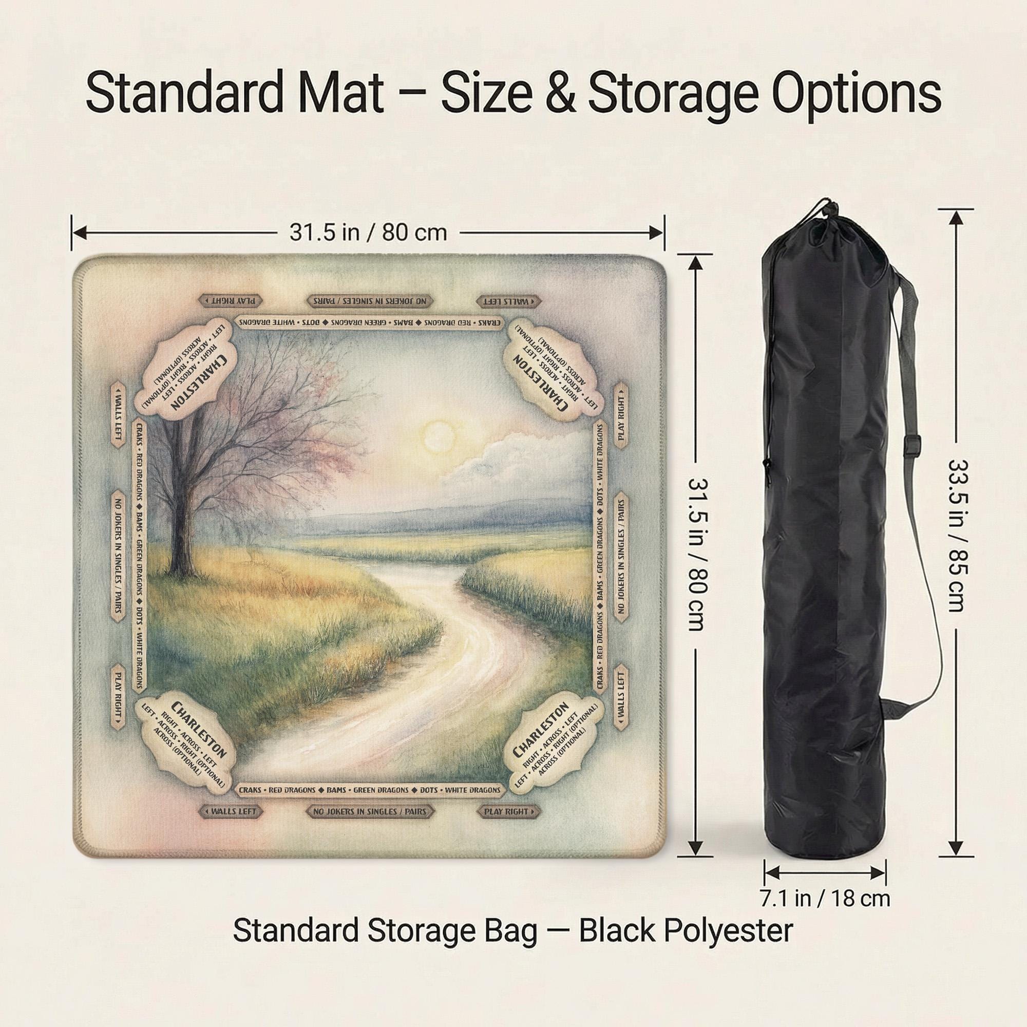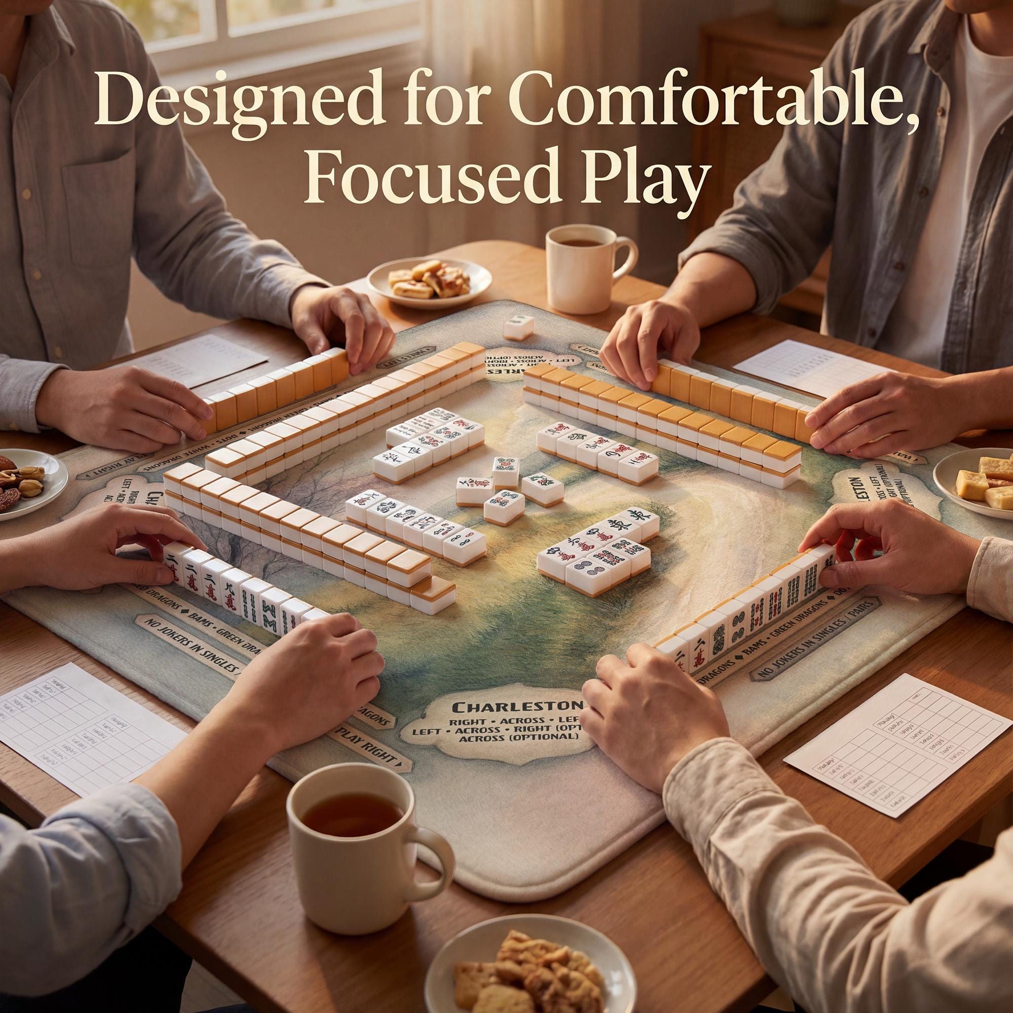 Elevate your game nights with this elegant Charleston mahjong mat featuring a soft watercolor landscape, designed for comfortable, focused, and quieter play. Available with or without text and optional personalization, every mat is previewed for your approval before printing for a truly risk-free custom experience.