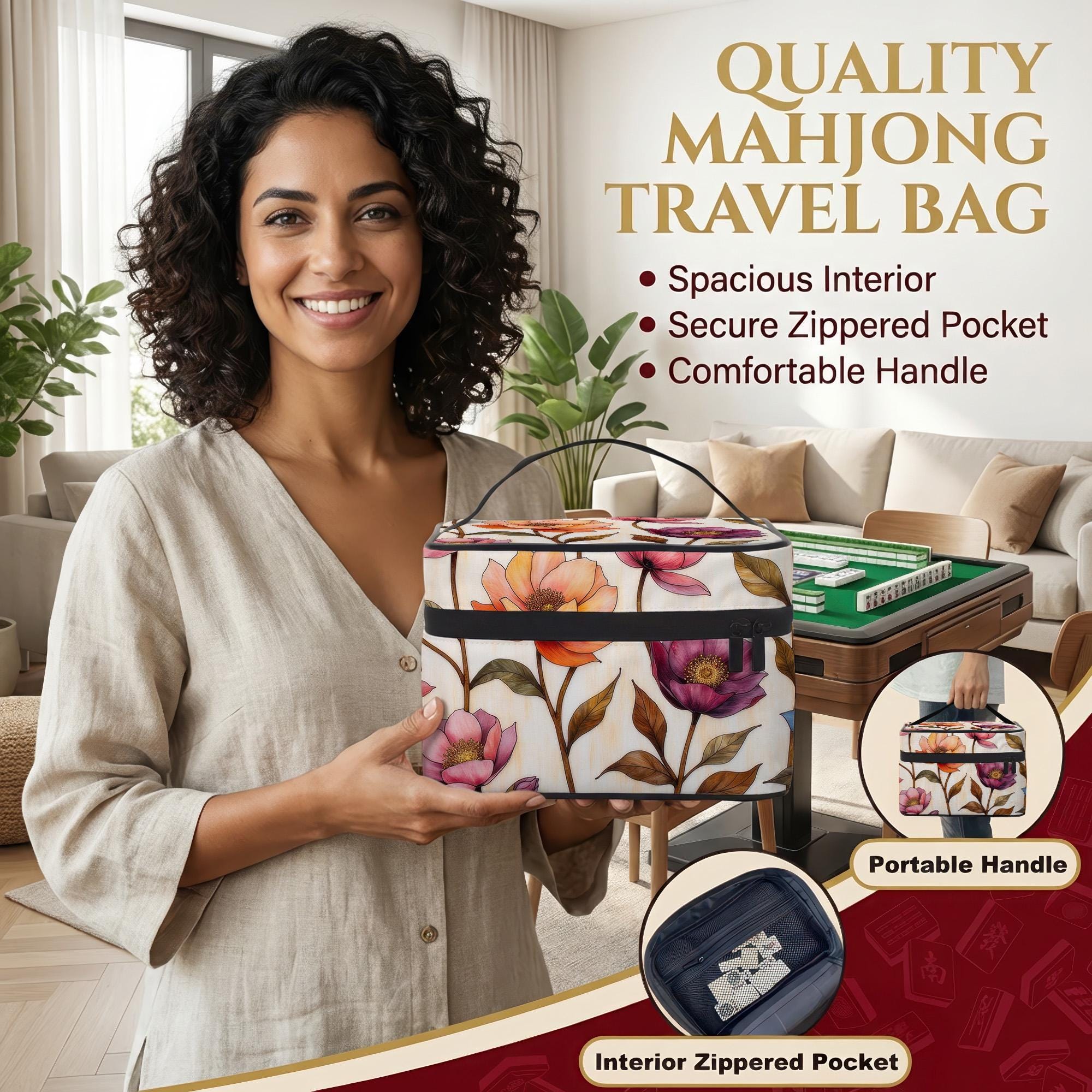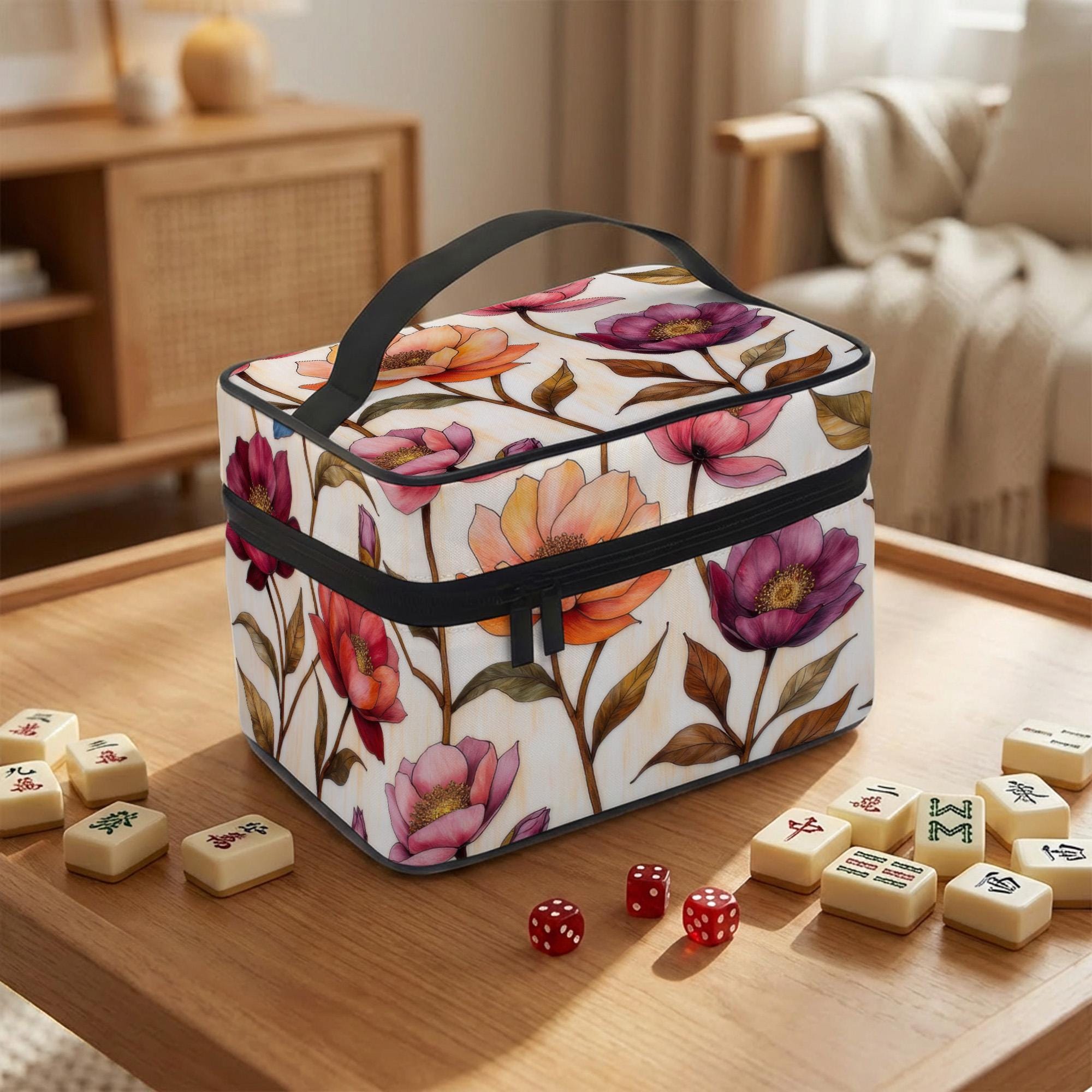 Discover the perfect companion for your mahjong adventures with this durable travel tile bag, designed to keep your game essentials secure and stylish. Inspired by the elegance of floral design, this mahjong bag combines practicality with a touch of artistry, making it ideal for both casual mahjong parties and serious club play. Whether you're heading to a tournament or a cozy game night, this floral mahjong carry offers effortless portability and spacious storage.