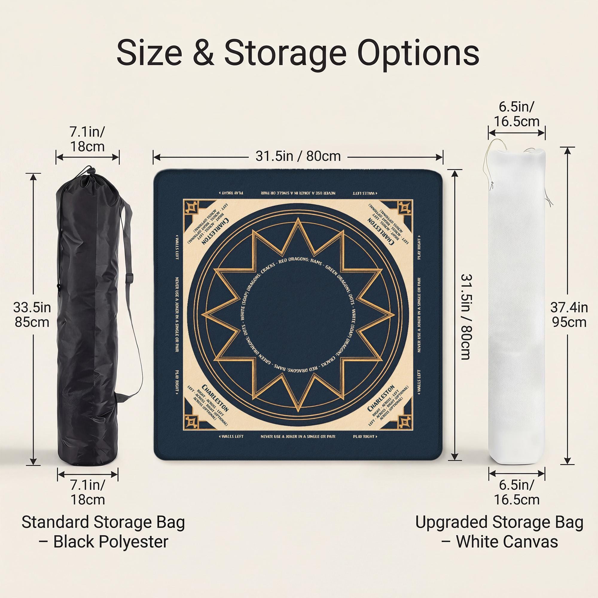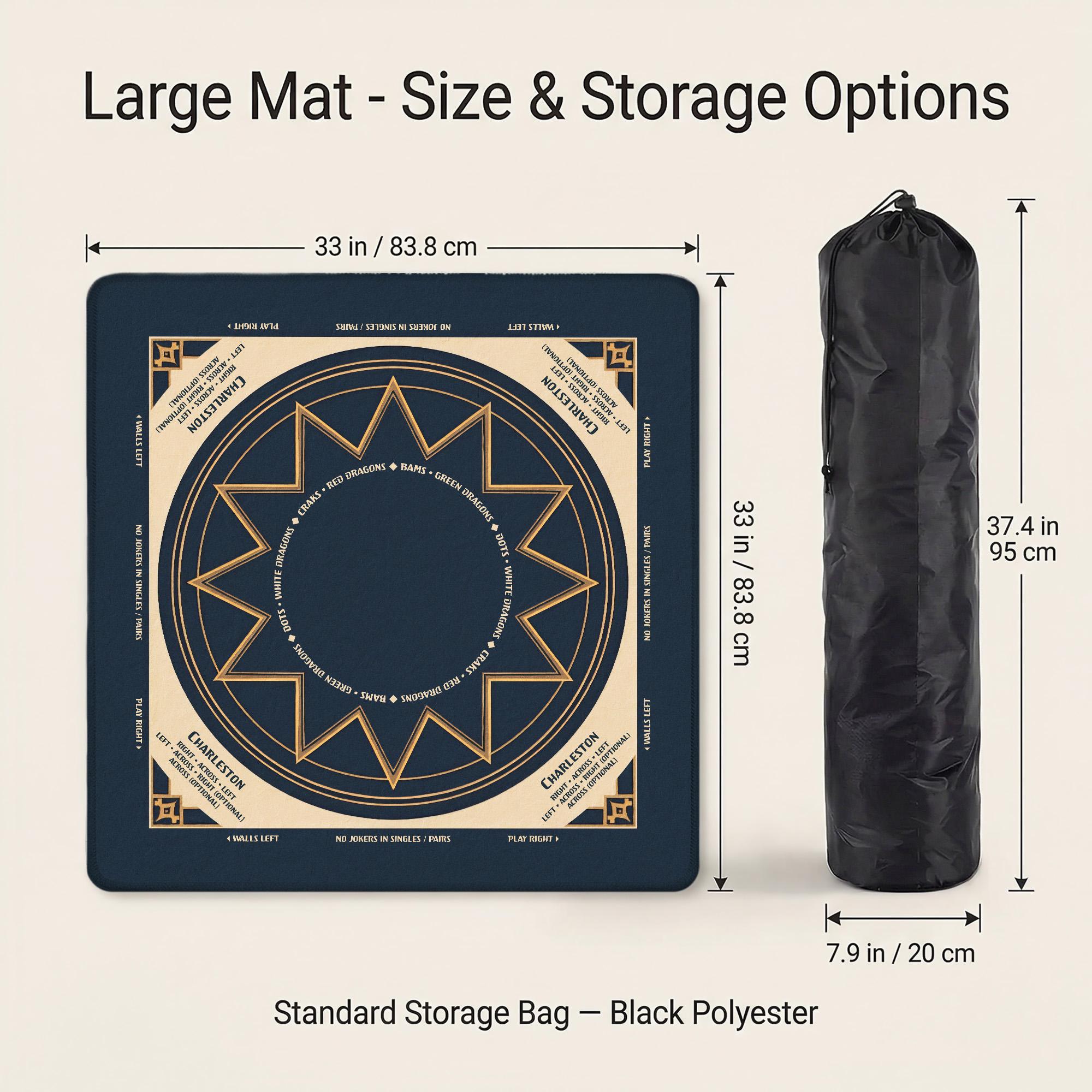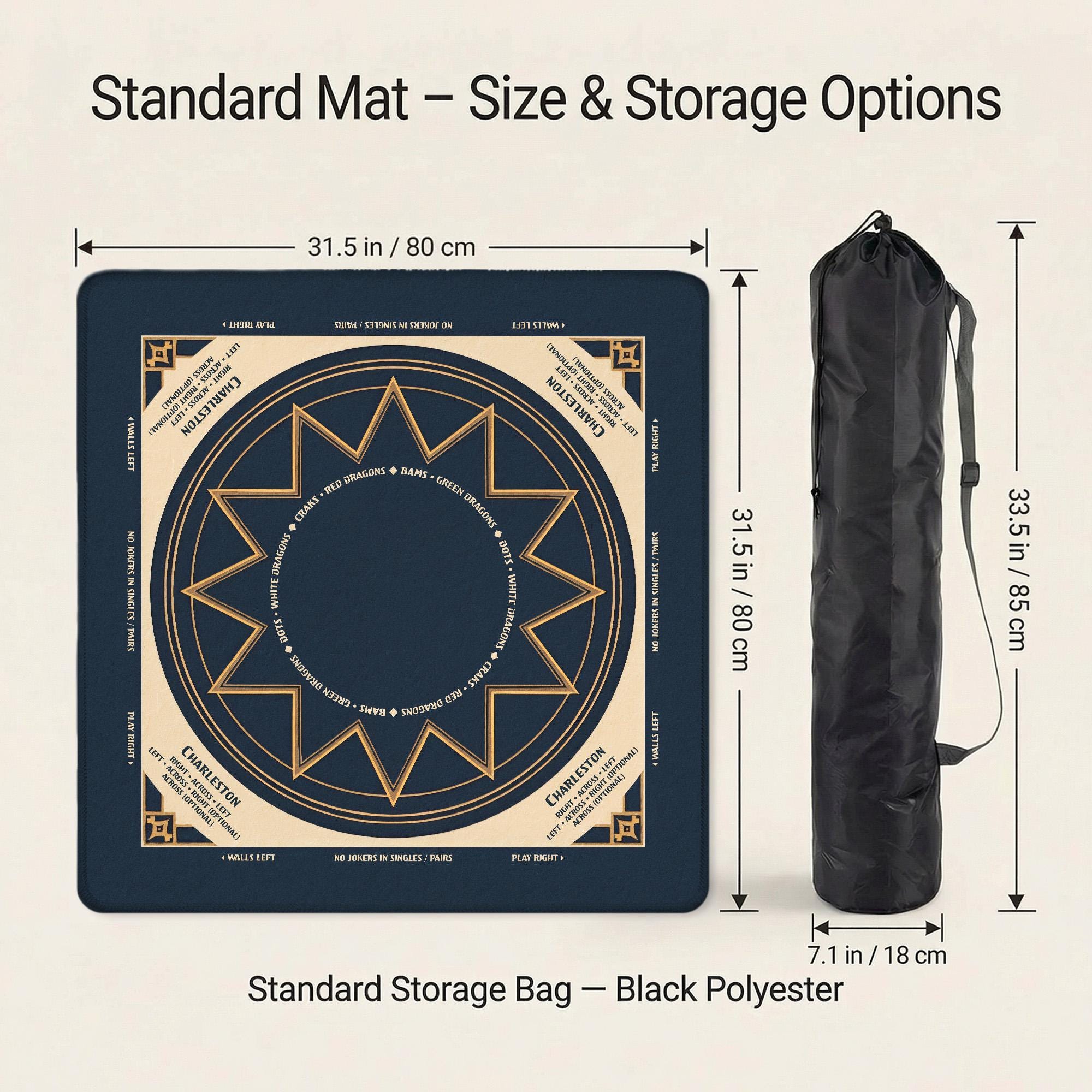 Elevate your game nights with this personalized mahjong mat featuring a stunning Art Deco design in navy and gold. Crafted for players who appreciate a smooth play surface and noise reducing mat, it combines elegance with practical features like a carry pouch included for easy transport. Whether you're seeking an elegant mahjong gift or a durable game mat for regular playgroups, this custom text mahjong accessory enhances every tile placement.
