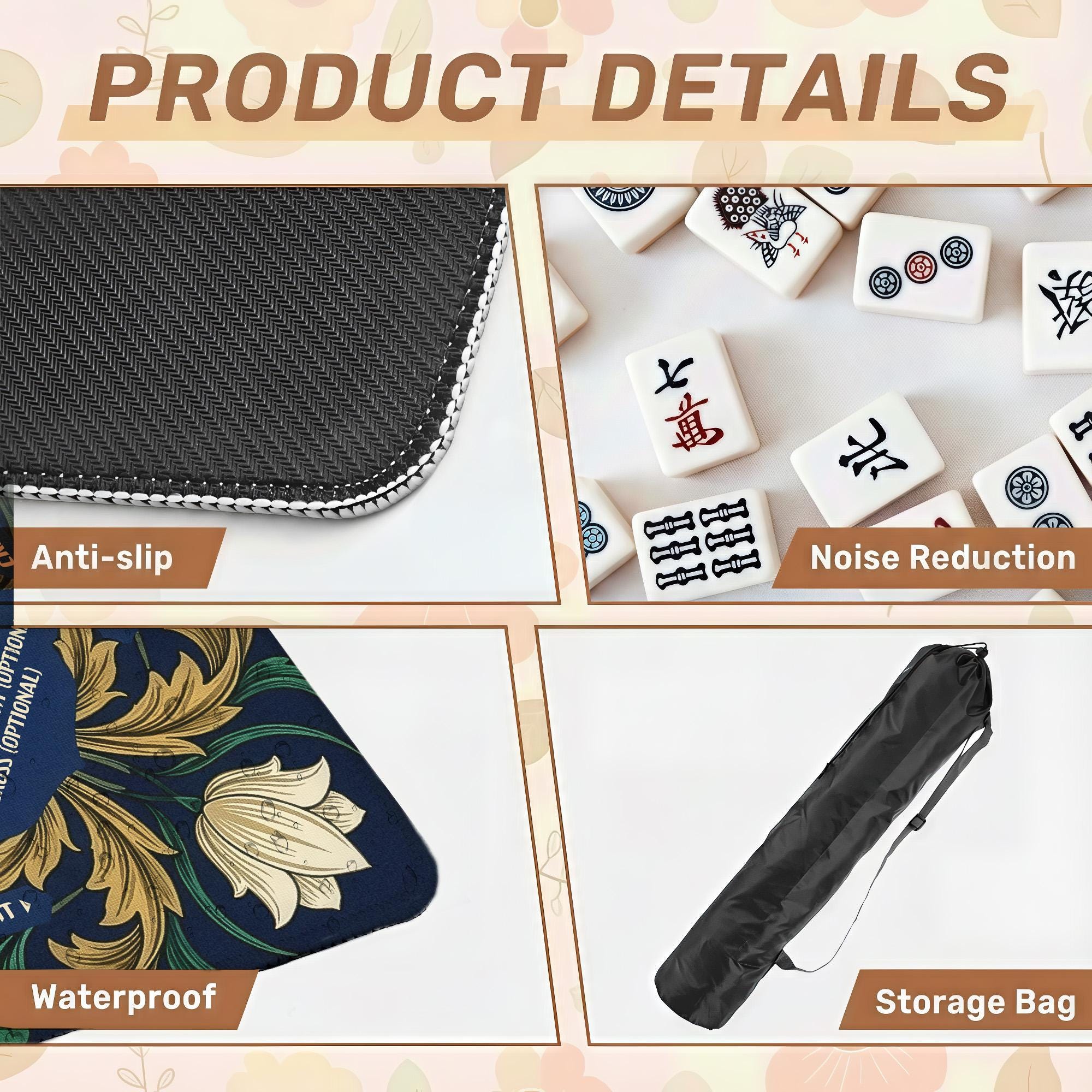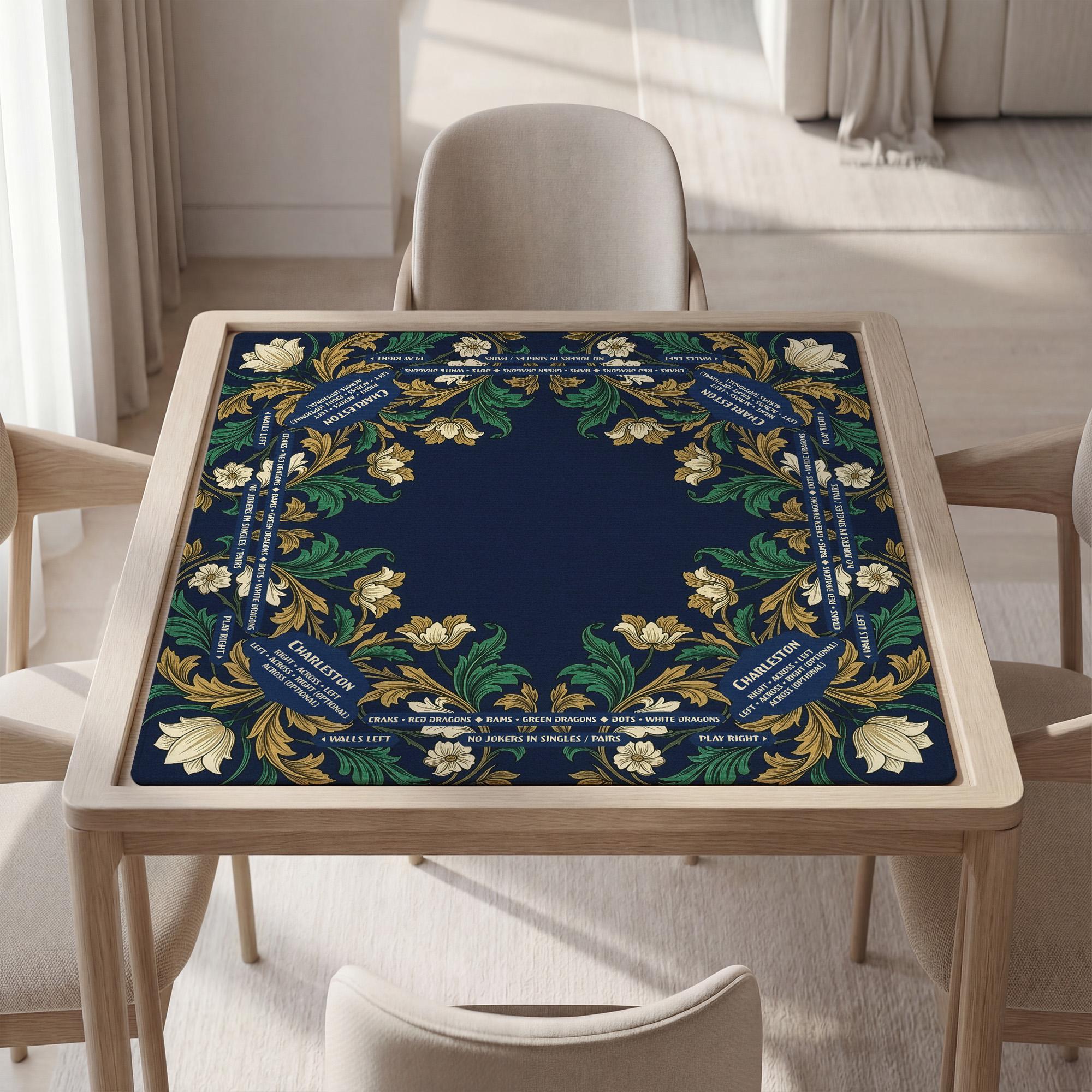 Minimalist Personalized Mahjong Mat with Rules, Modern Neutral Design, Non Slip, Bag Included