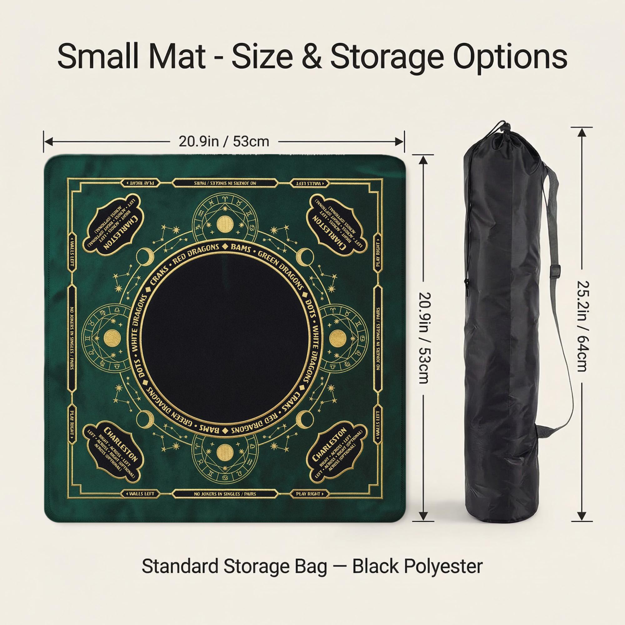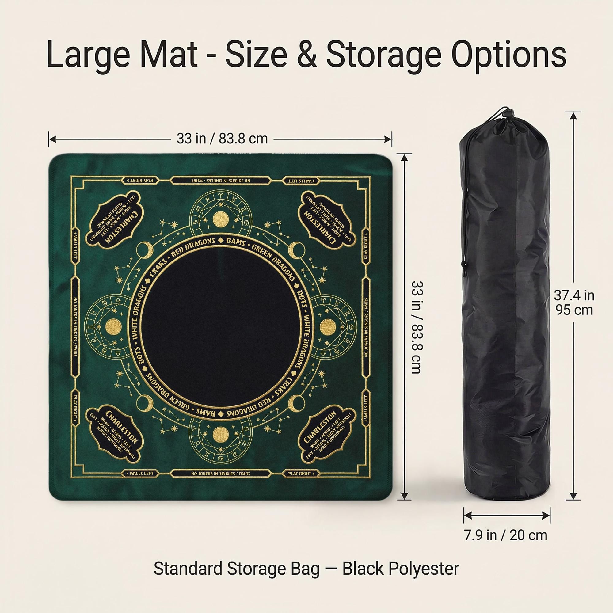 Elevate your mahjong experience with this exquisite emerald gold mahjong mat, crafted to combine elegance and functionality. Designed for players who appreciate a smooth polyester top and a noise reducing mat, this celestial playing surface brings tranquility and style to every game. Whether at home or on the go, the portable mahjong mat with its included storage bag ensures your game stays pristine and ready.