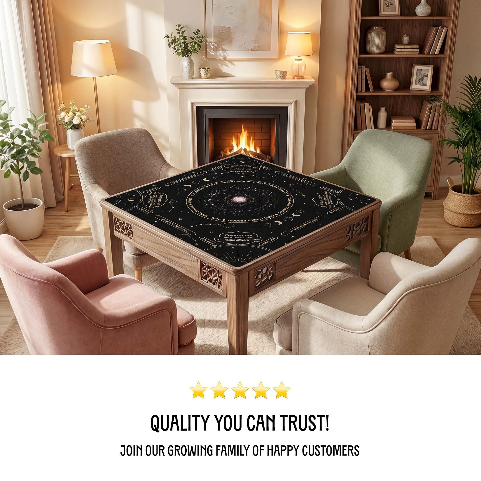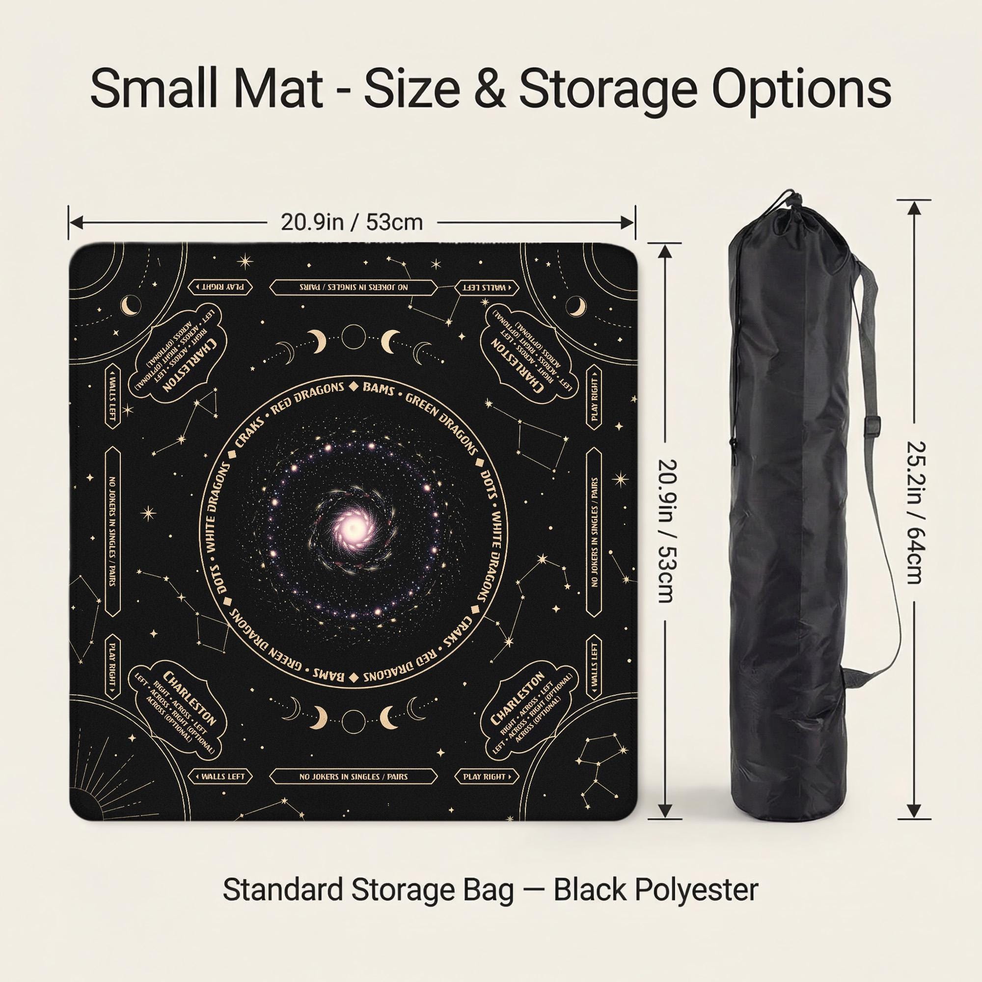 Immerse yourself in the cosmic charm of this celestial galaxy-inspired mahjong mat, designed to elevate your game nights with a smooth play surface and noise-reducing features. Crafted with a black and gold color palette, this mat beautifully combines style and function, making it the perfect custom mahjong gift for players who appreciate both aesthetics and performance. Complete with a carry pouch included, it offers convenience and protection for your gaming essentials wherever you go.