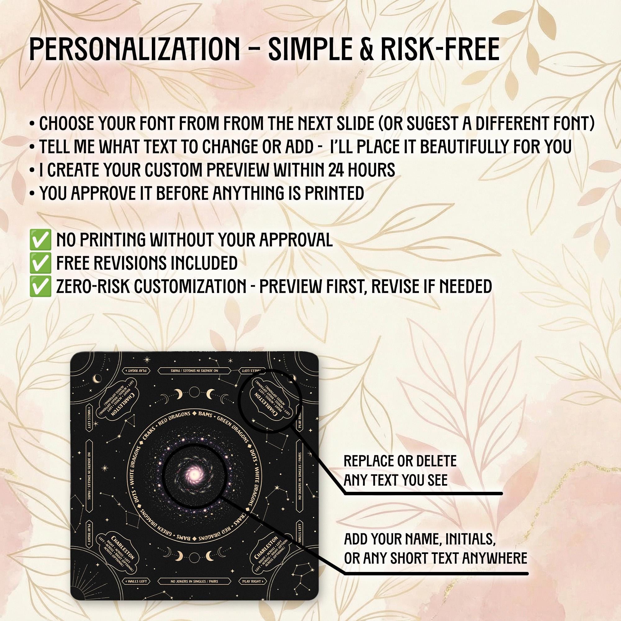 Our shop is dedicated to creating thoughtful, high-quality accessories that enhance your gaming moments. Each personalized Mahjong mat is carefully crafted with attention to detail and shipped promptly to bring joy to your game nights and special occasions.