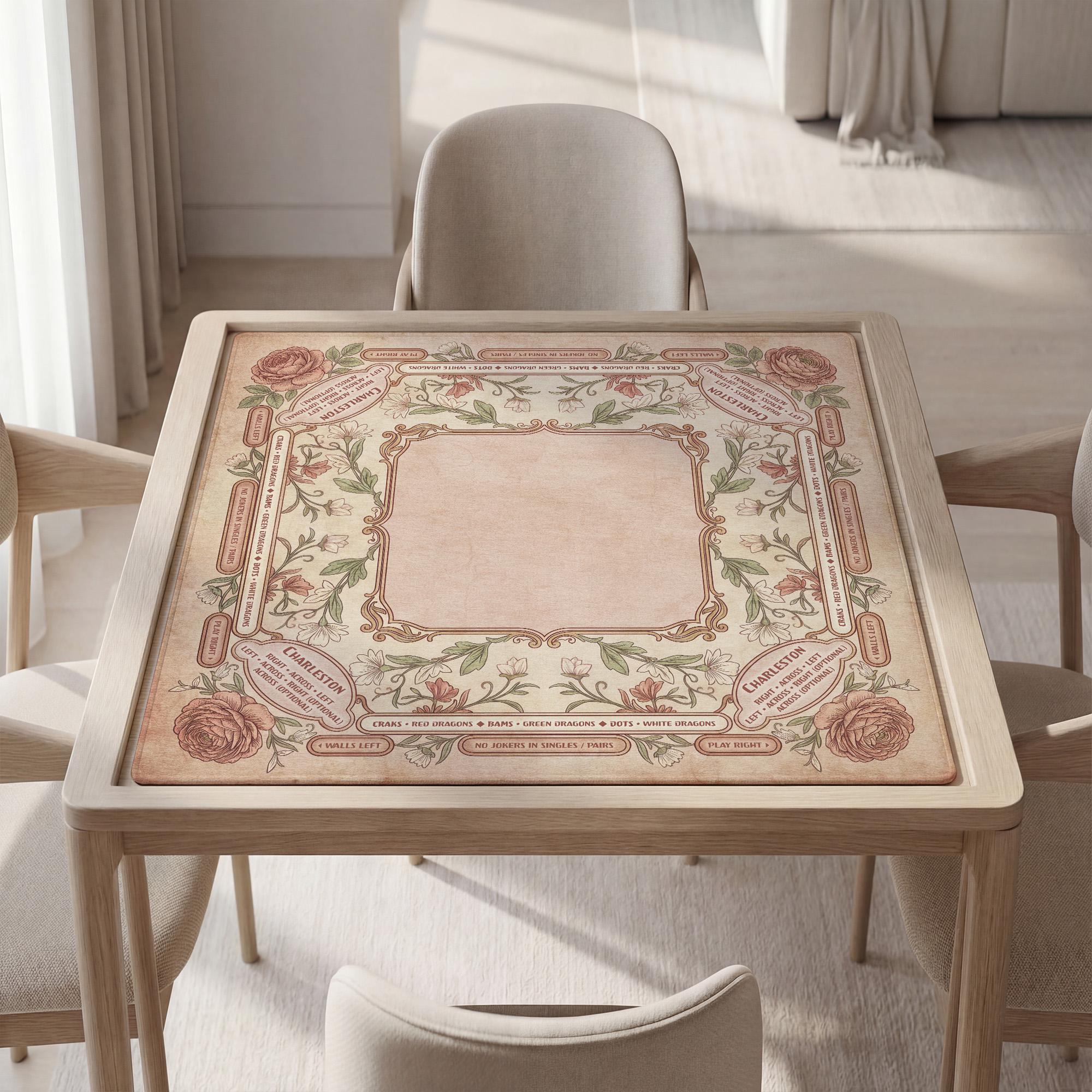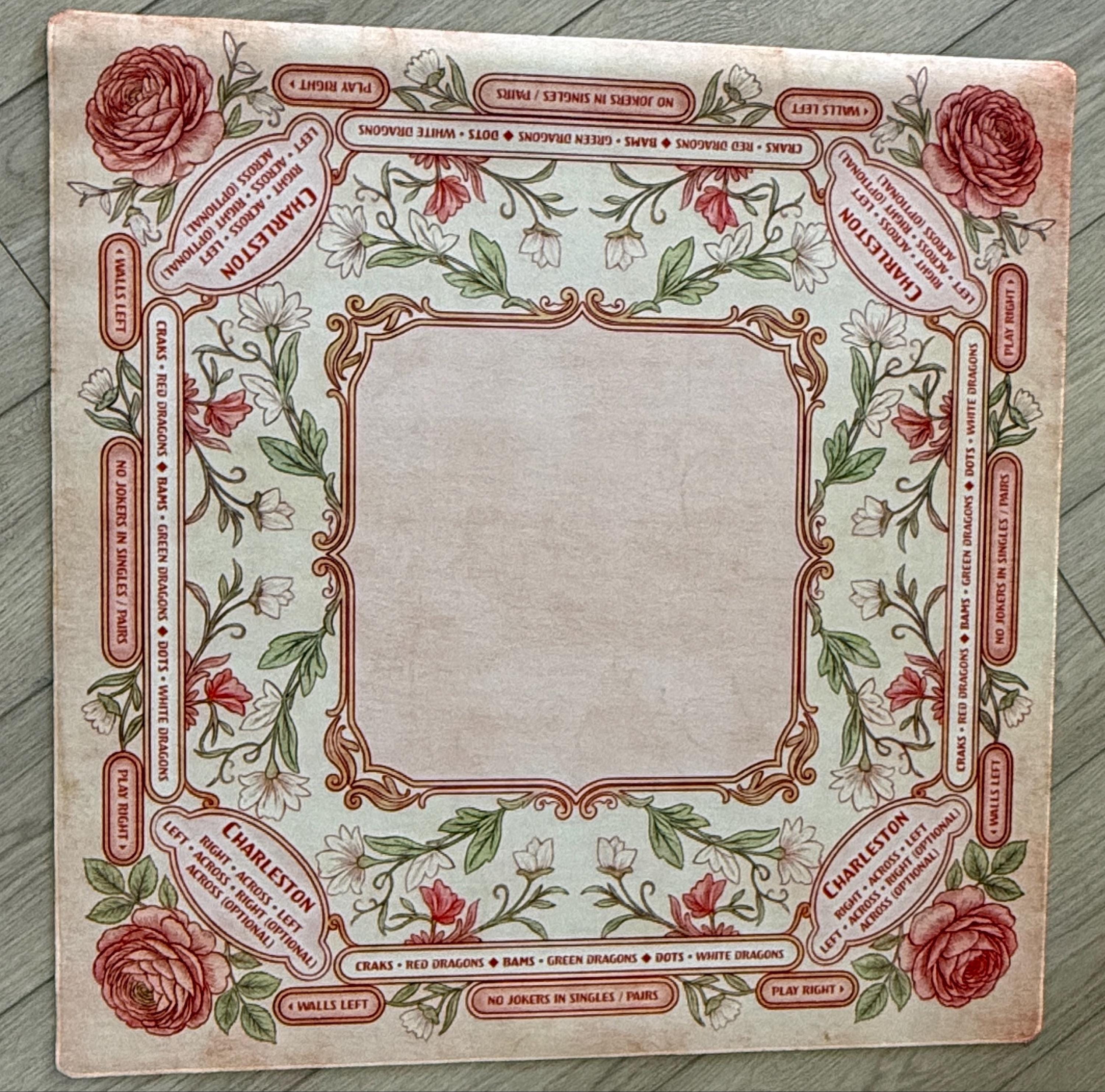 Experience the perfect blend of style and function with this elegant floral mat with Roses, designed to enhance your Mahjong sessions with a smooth polyester top that ensures a quiet tile surface. Crafted with a non-slip rubber backing, this waterproof play mat stays firmly in place, making every game comfortable and focused. Whether you choose the travel size or standard dimensions, the included carry pouch makes it easy to bring your custom name mat wherever you go.