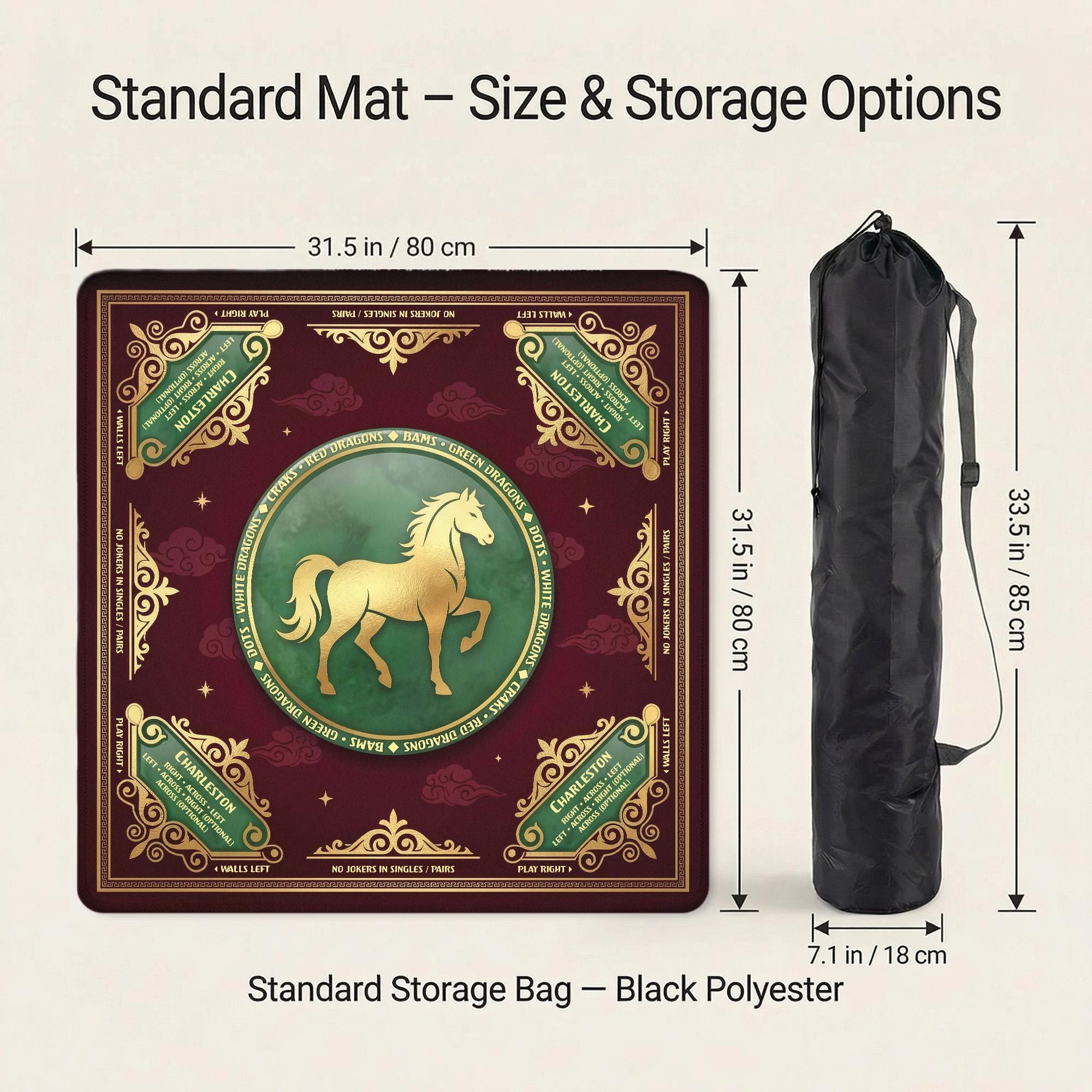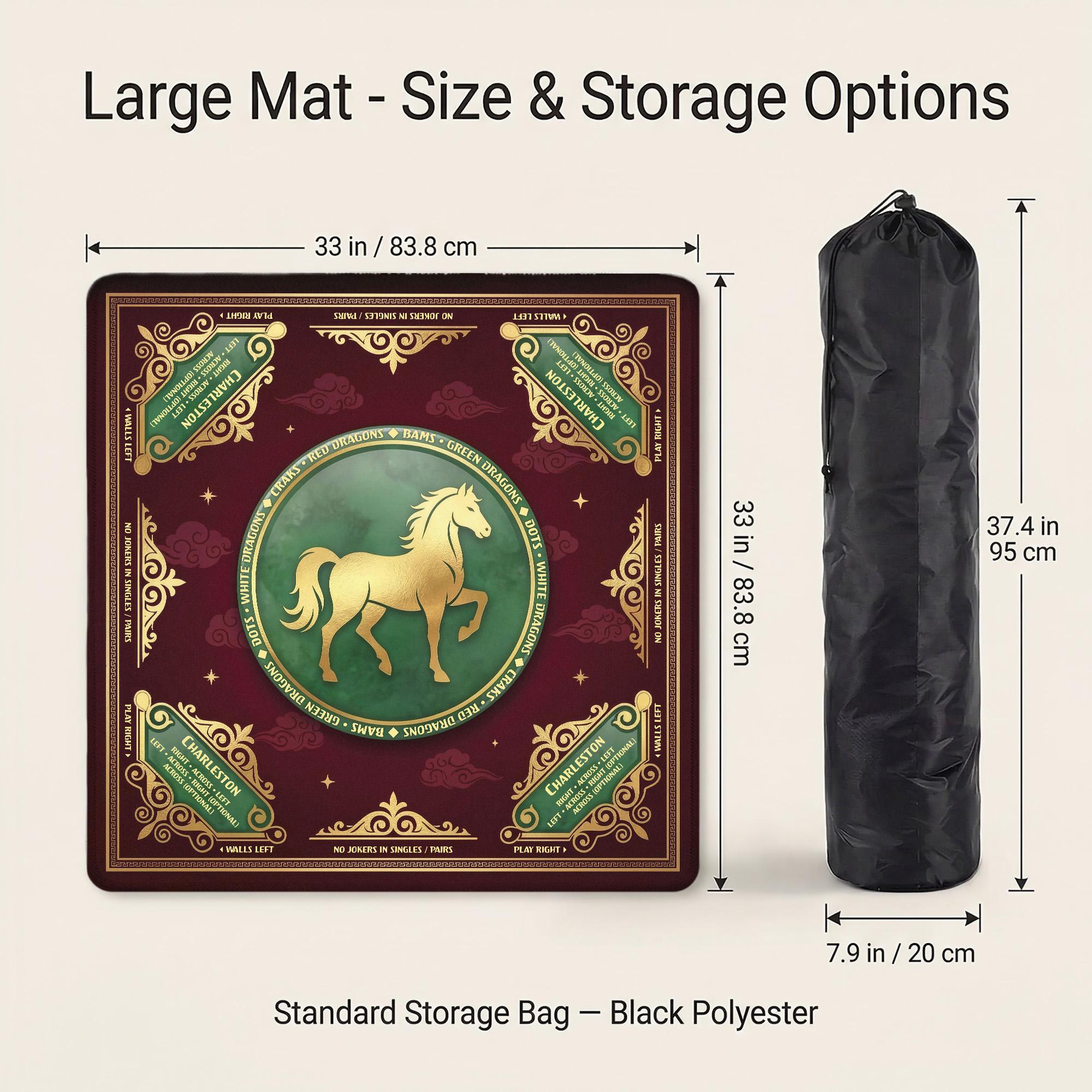 Elevate your game nights with this custom game mat designed for American and Charleston style mahjong enthusiasts. Featuring a stunning gold horse design, this mahjong mat gift combines elegance with practical features like a cushioned play mat surface that reduces noise for a quieter, more immersive experience. The roll up carry pouch makes it easy to transport, ensuring your favorite game setup is always ready wherever you go.