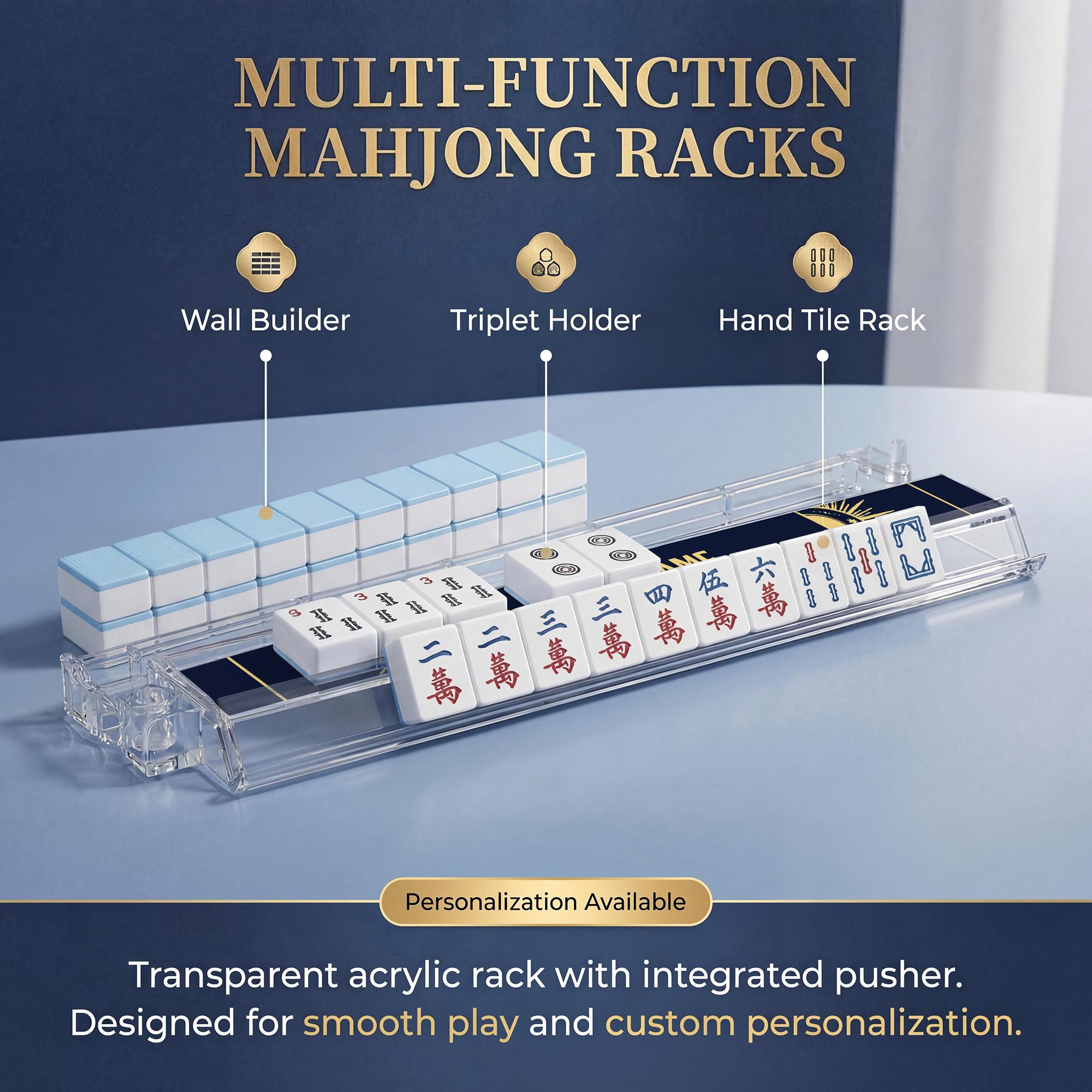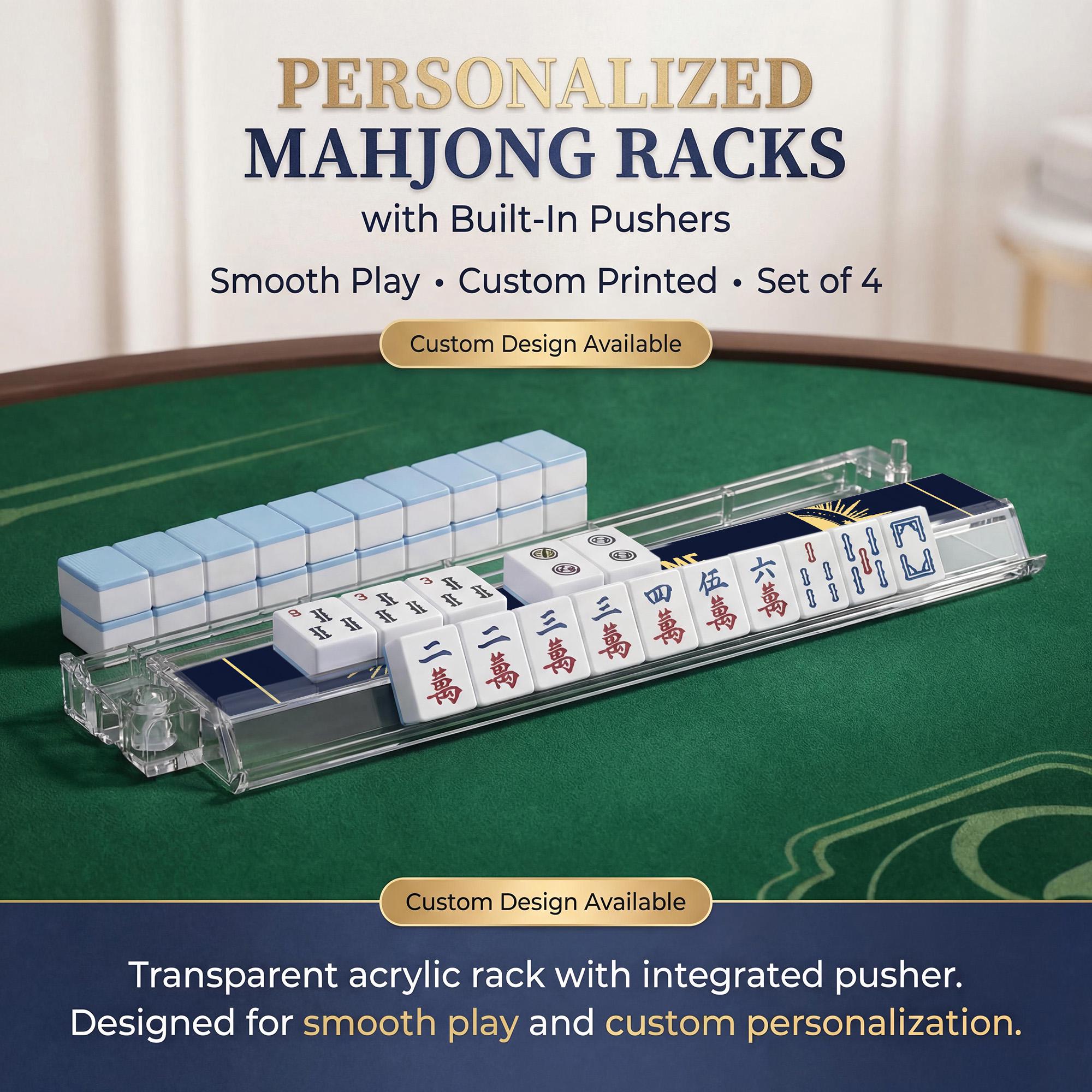 Elevate your mahjong experience with this elegant set of four clear acrylic racks, thoughtfully designed for smooth glide pushers and effortless wall building. Perfect for organized play and game night essentials, these racks bring a modern clear style to your table setup while keeping your tiles beautifully displayed. Whether youβre gifting a mahjong lover or enhancing your own game, the matching custom mats and UV printed design inserts add a personal touch that truly stands out.