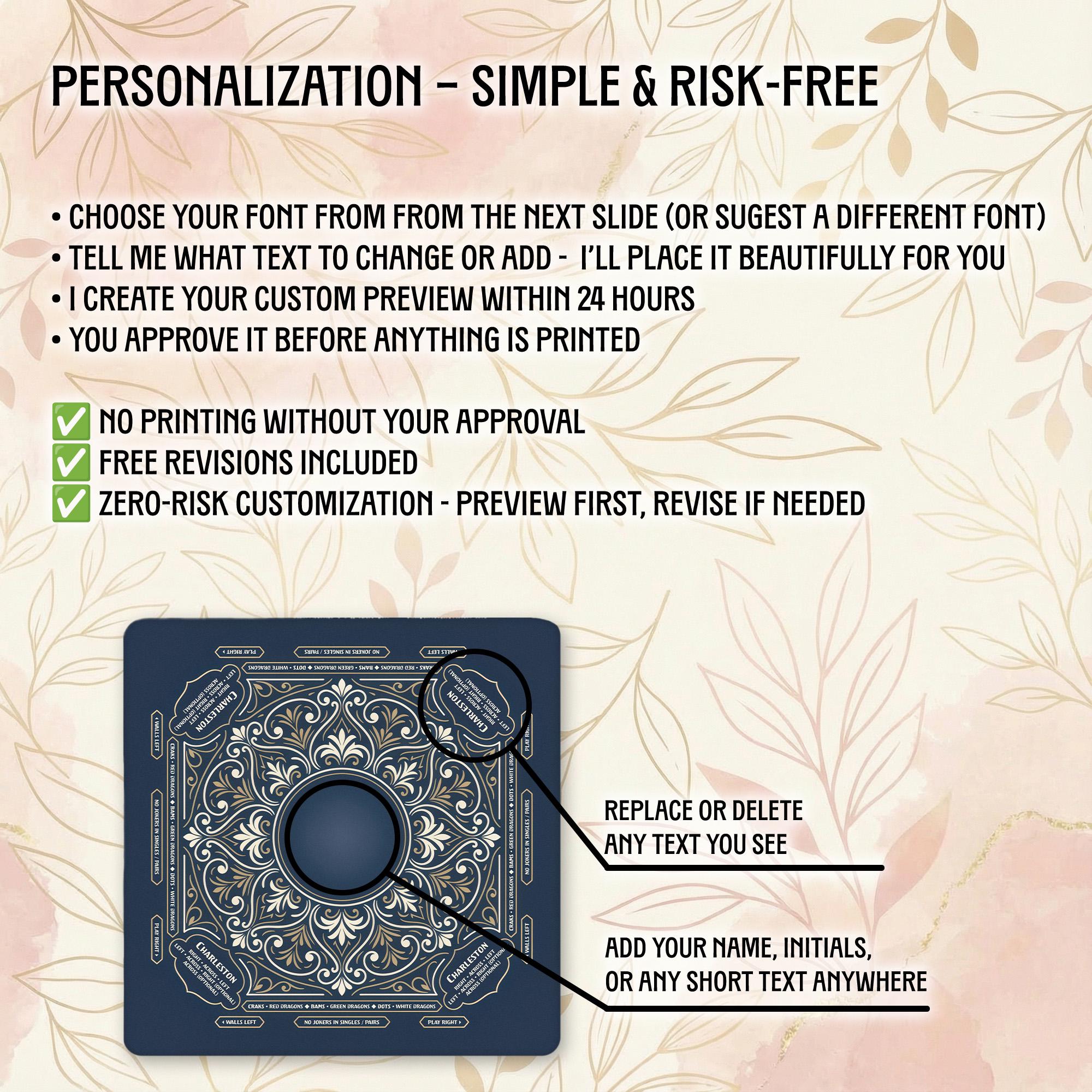 Our shop is dedicated to creating thoughtful, high-quality accessories that enhance your gaming moments. Each personalized Mahjong mat is carefully crafted with attention to detail and shipped promptly to bring joy to your game nights and special occasions.
