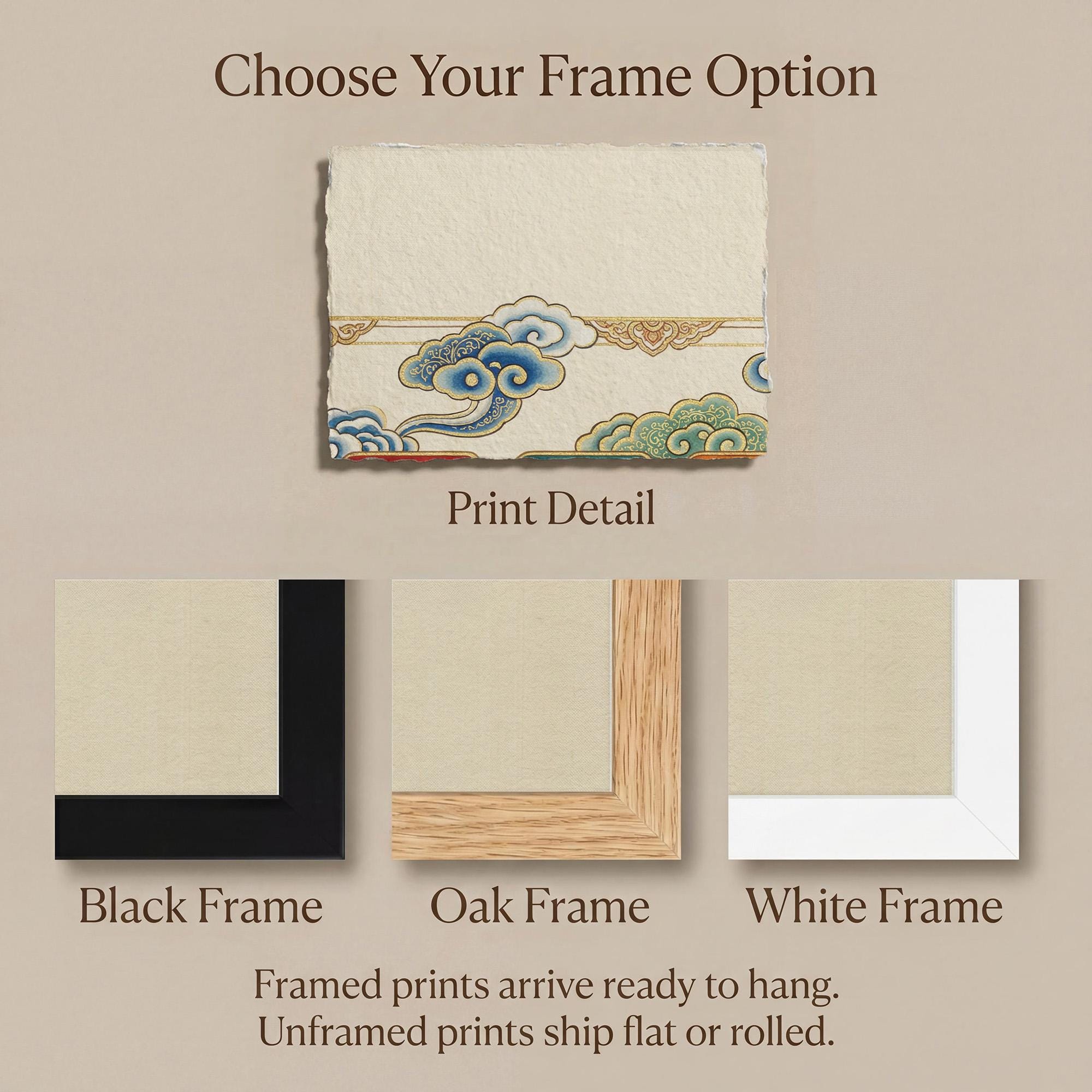 Framed prints arrive ready to hang.