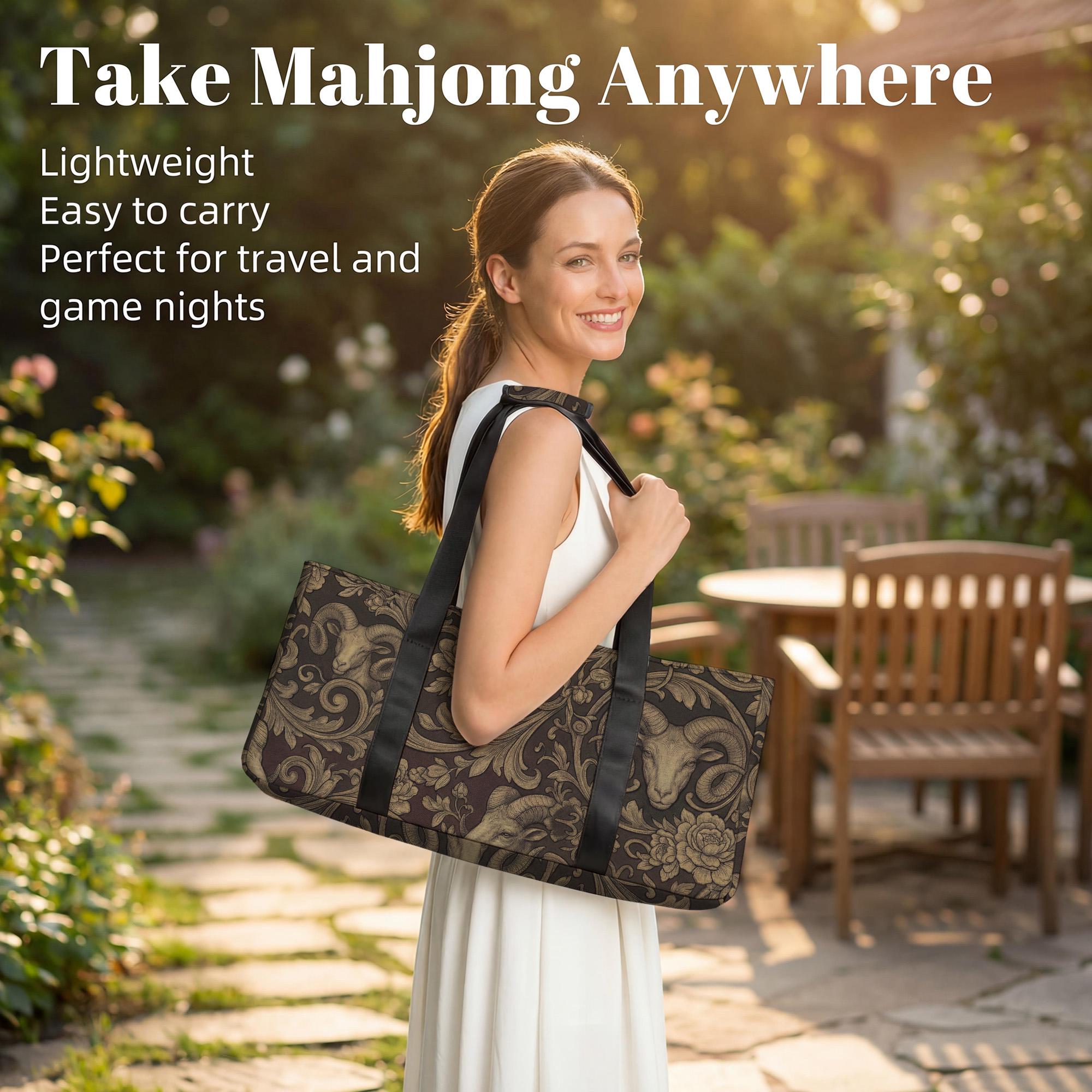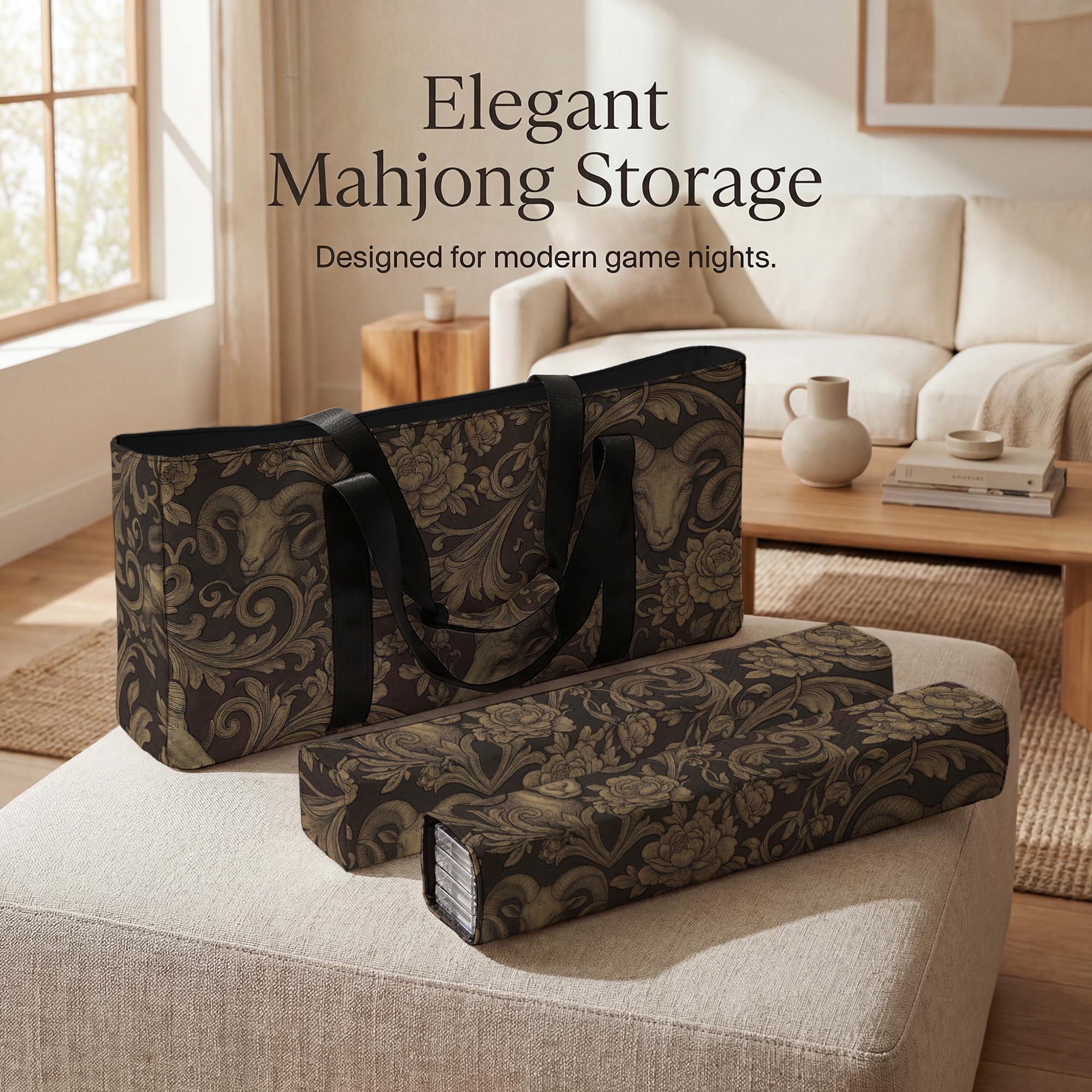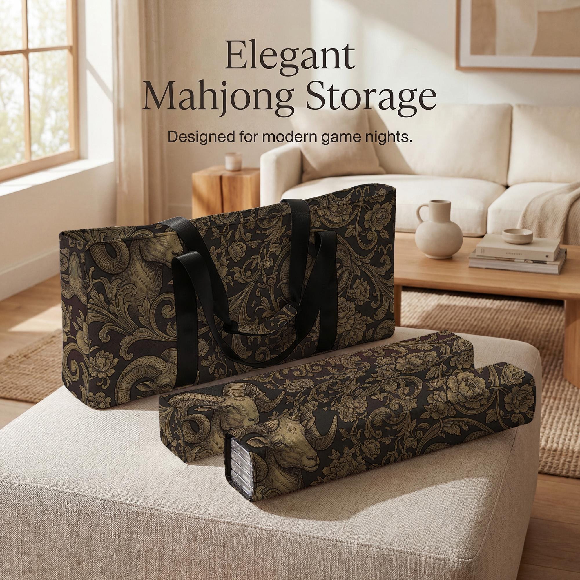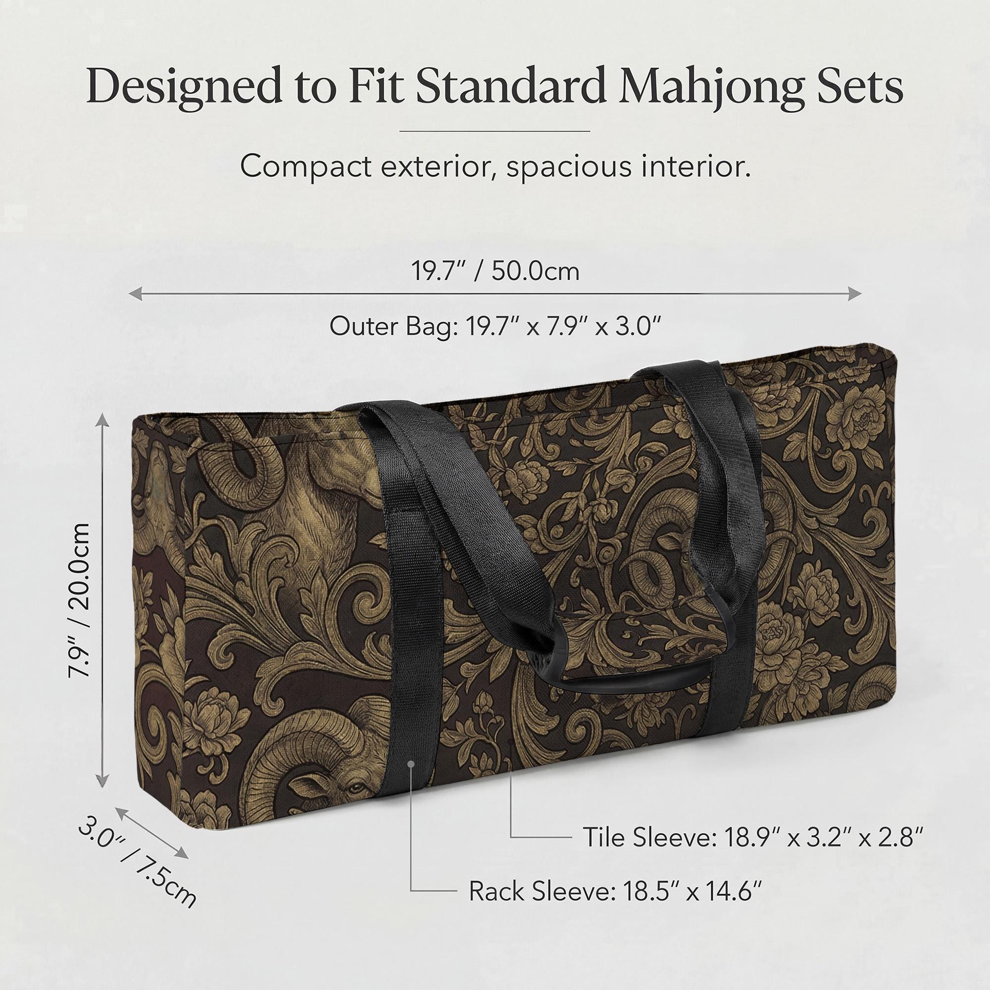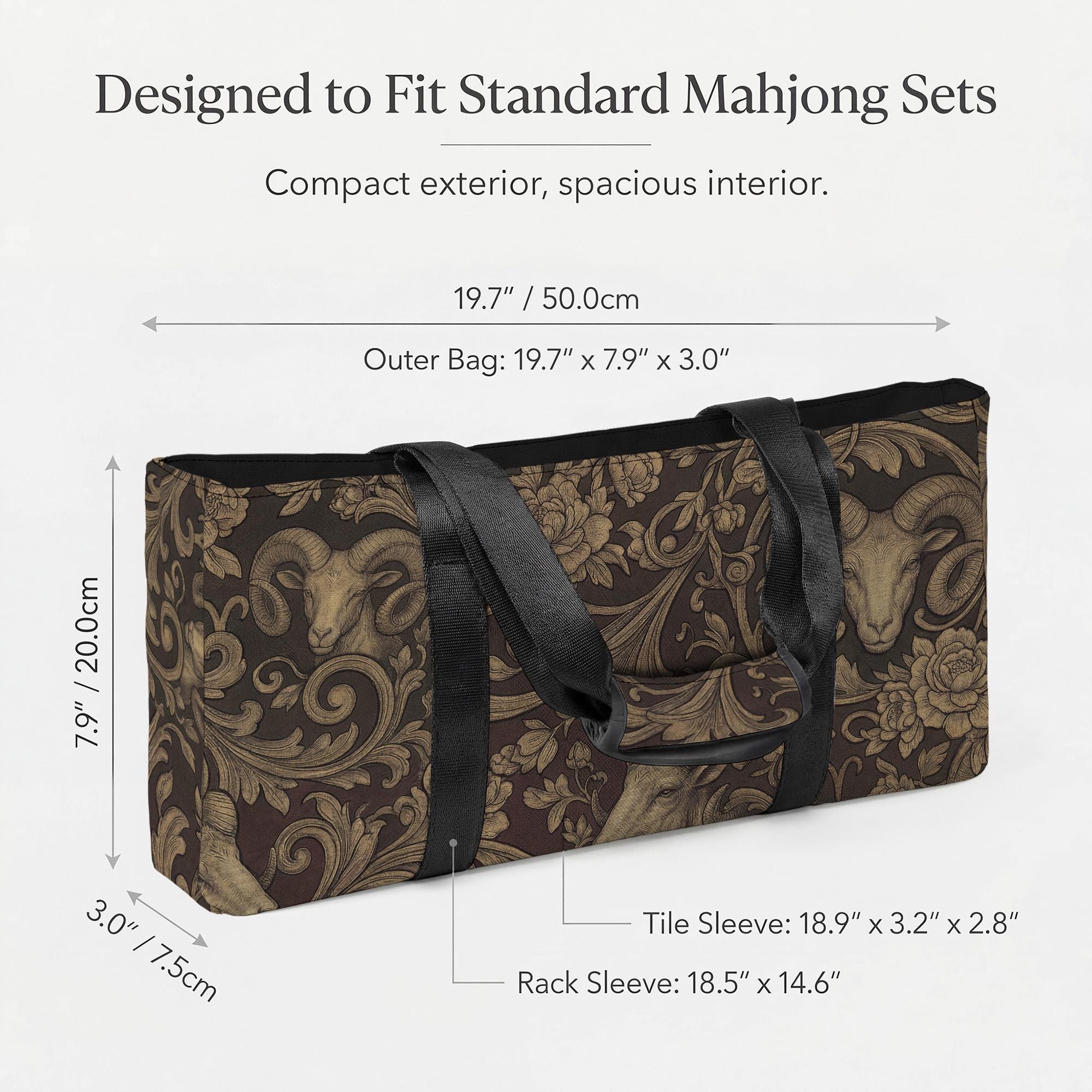 Discover the perfect companion for your mahjong adventures with this Aries travel bag, thoughtfully designed to keep your tiles and racks impeccably organized. Crafted with a waterproof exterior and adorned with vintage ram decor, this ornate mahjong bag combines style and practicality for game night enthusiasts on the go. Whether heading to a club or traveling, this tile carrier bag ensures your set stays protected and accessible.
