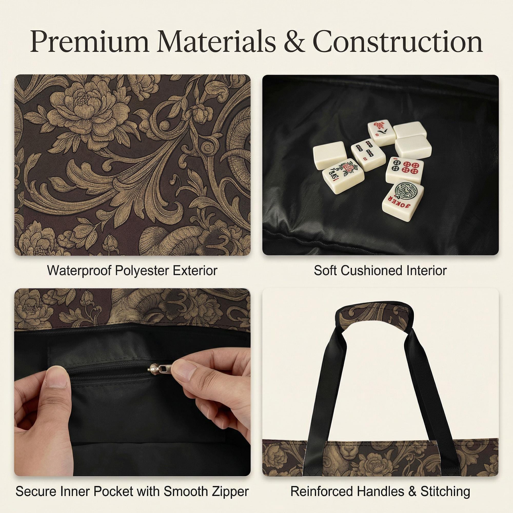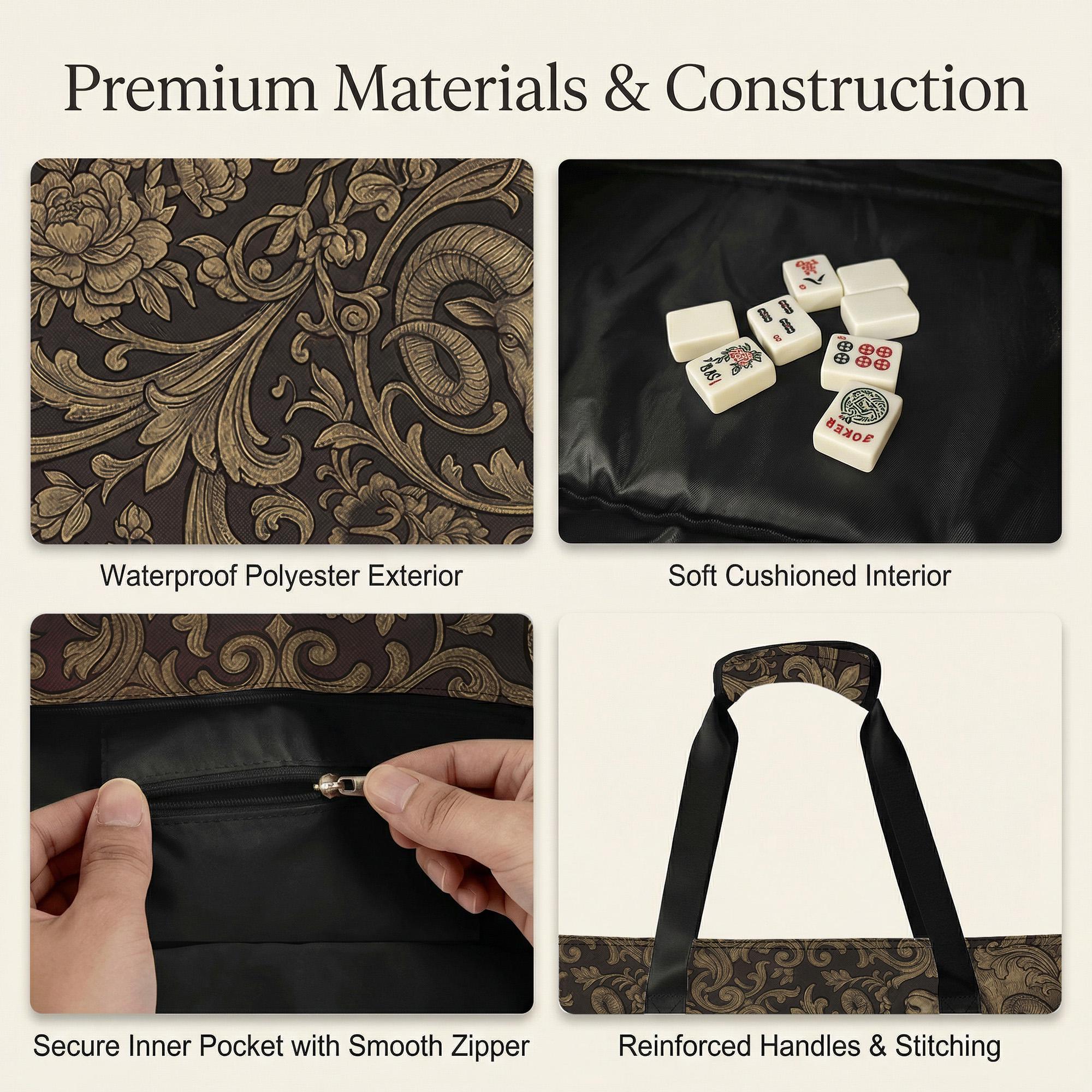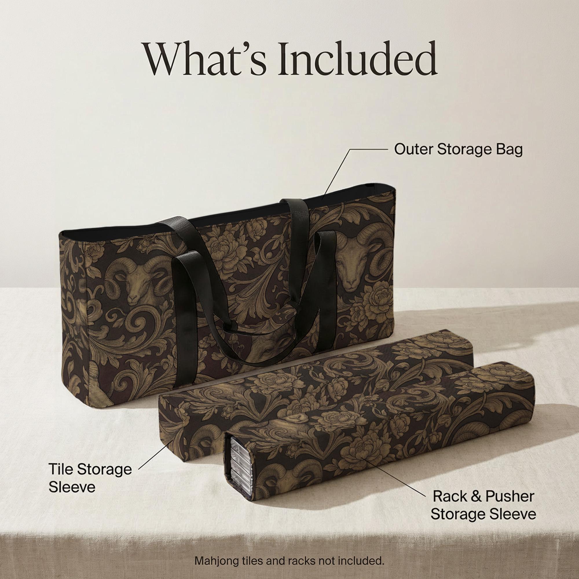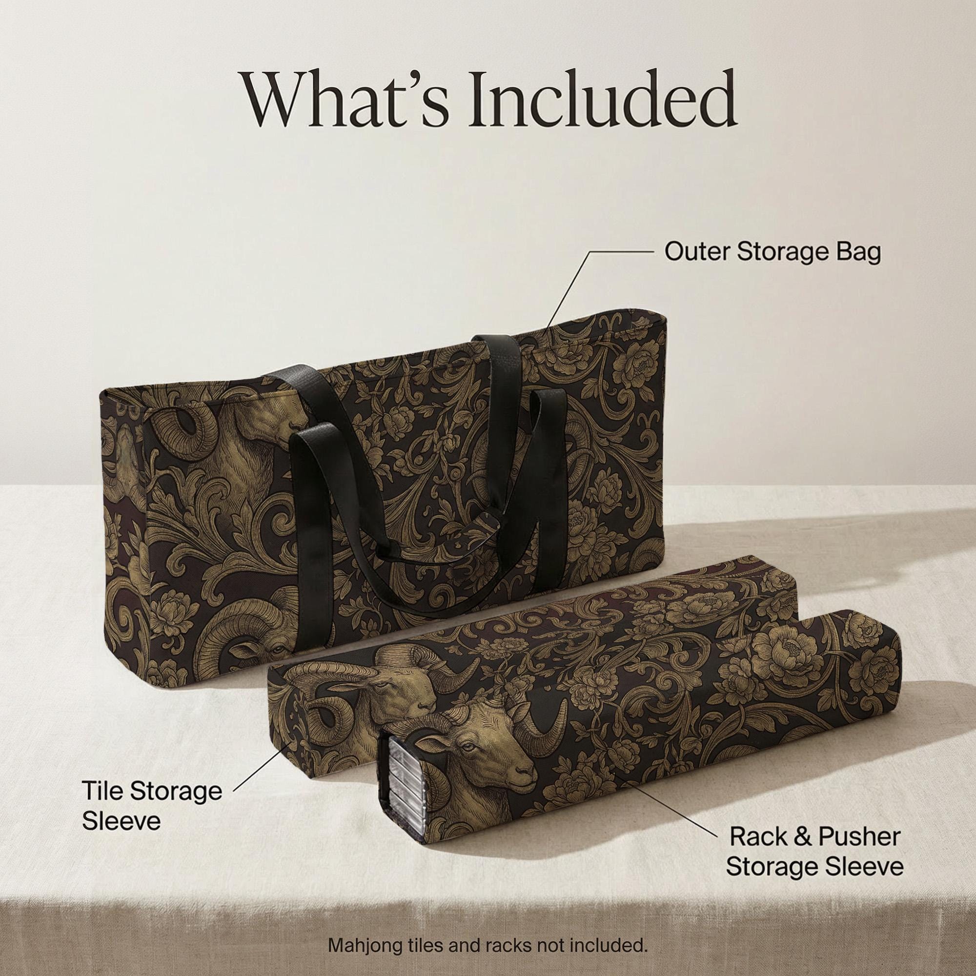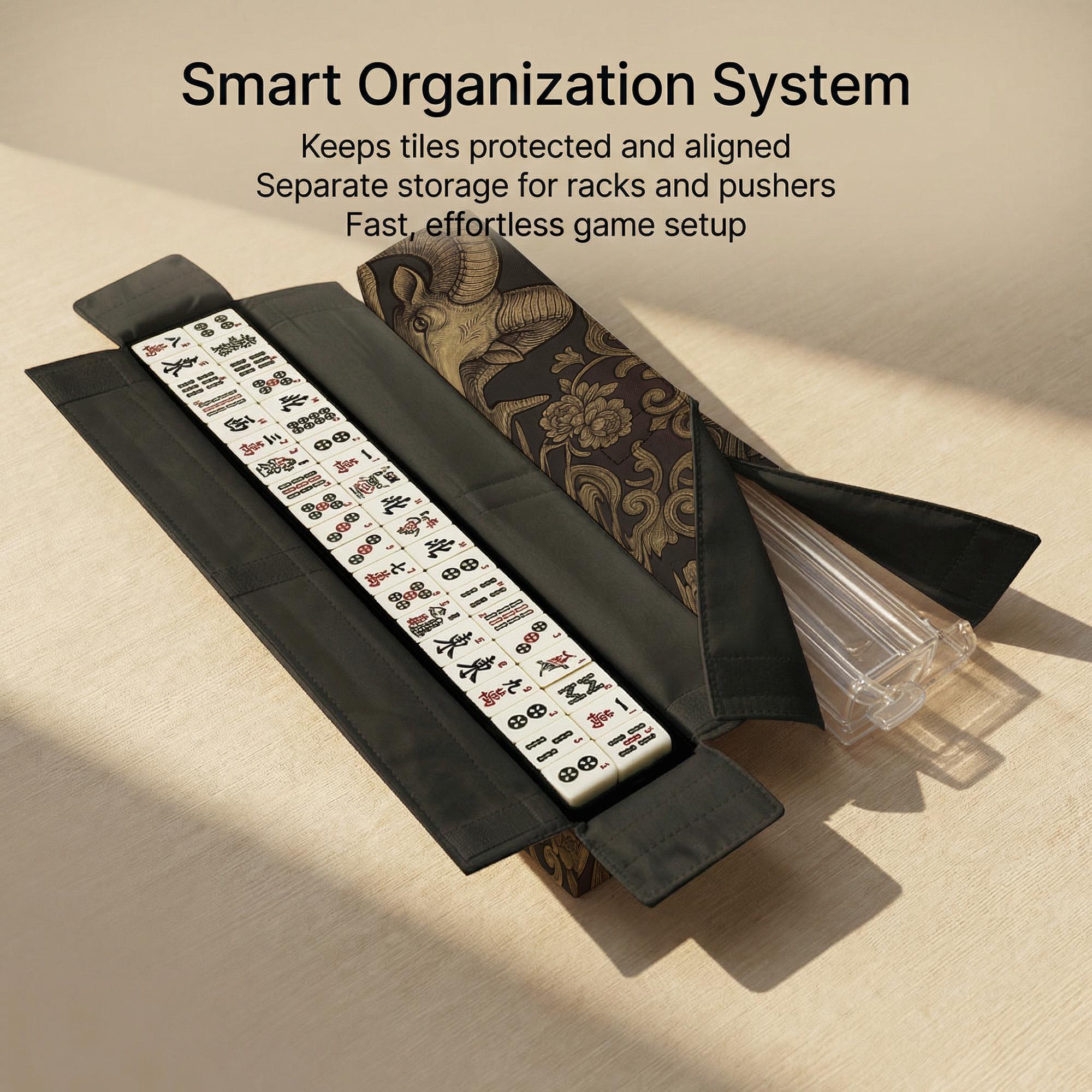 Discover the perfect companion for your mahjong adventures with this Aries travel bag, thoughtfully designed to keep your tiles and racks impeccably organized. Crafted with a waterproof exterior and adorned with vintage ram decor, this ornate mahjong bag combines style and practicality for game night enthusiasts on the go. Whether heading to a club or traveling, this tile carrier bag ensures your set stays protected and accessible.