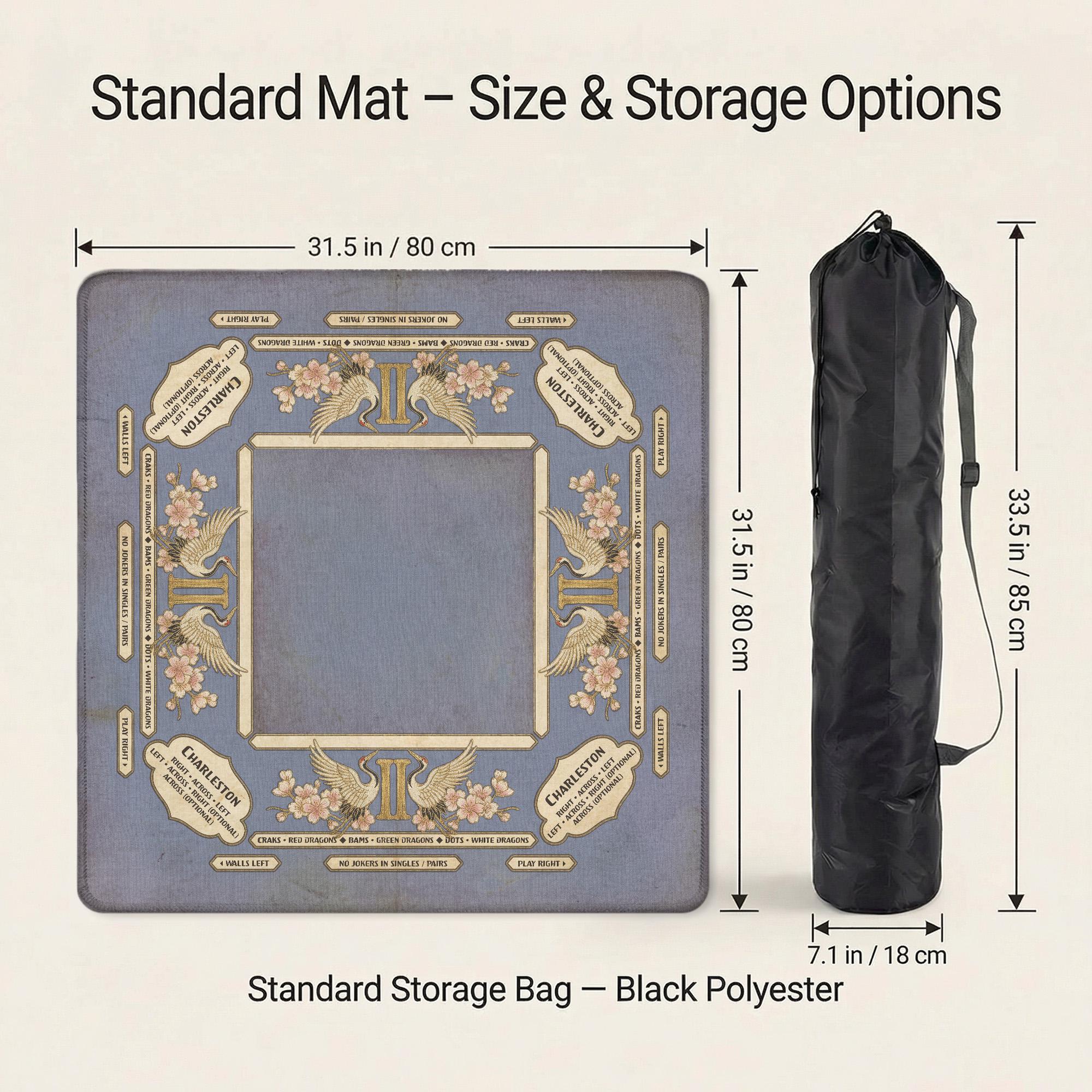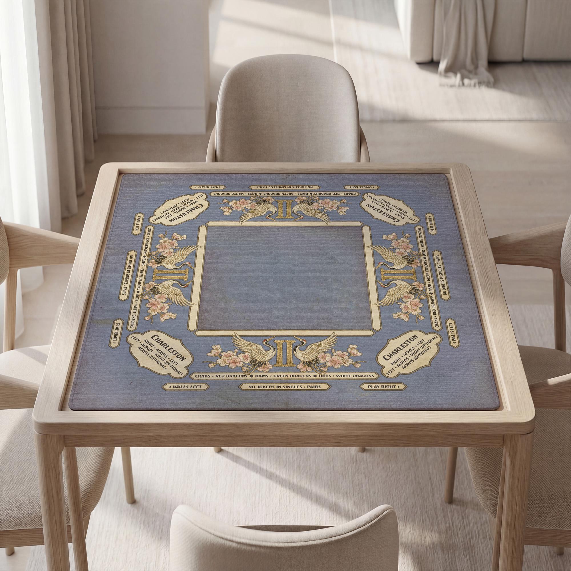 Elevate your game night with this elegant Gemini-inspired mahjong mat featuring a vintage crane design and a built-in Charleston reference guide. The noise-reducing, waterproof fabric and non-slip rubber backing ensure a professional and focused playing experience.