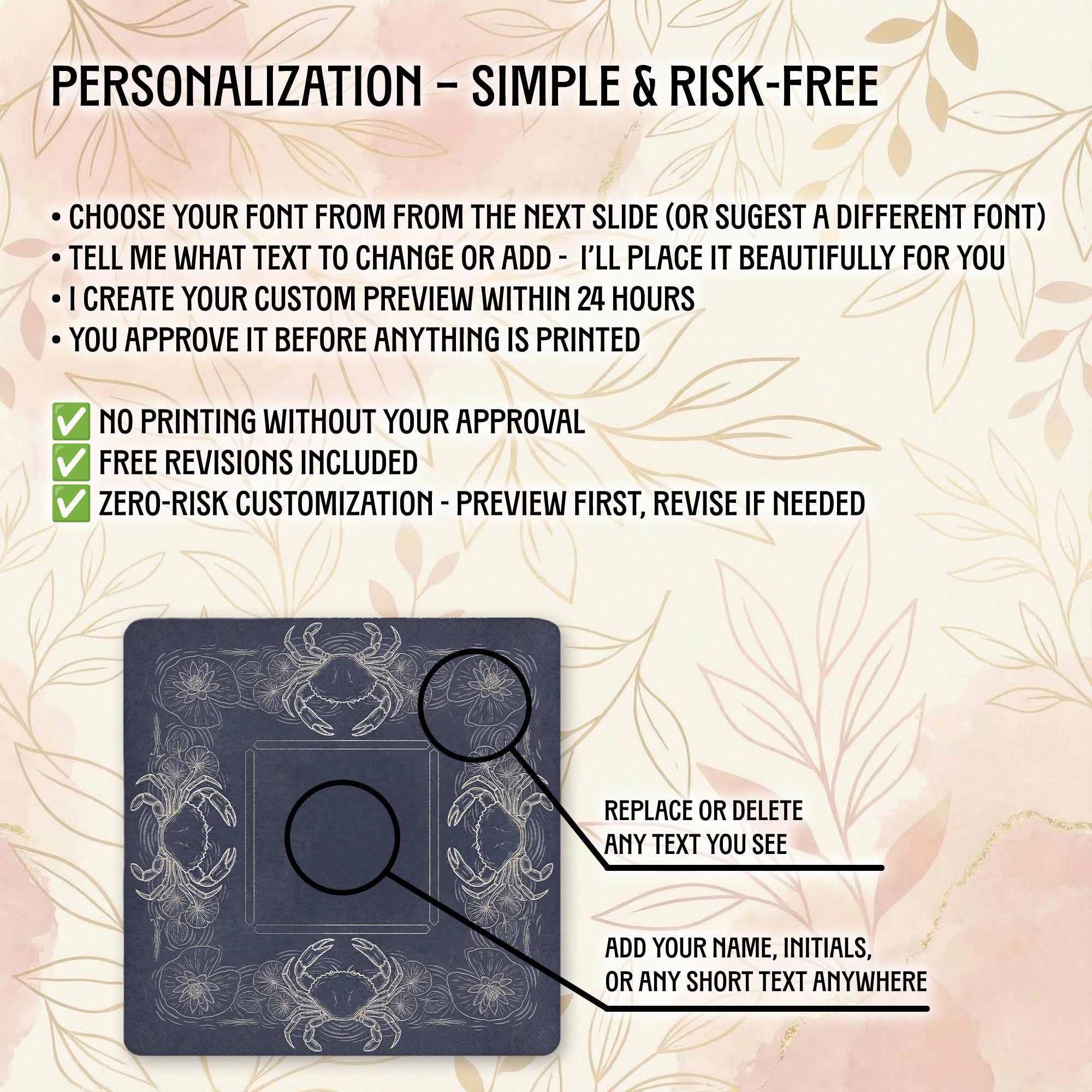 Personalized orders require active communication while I work on your design. If you submit your personalization details but do not respond to my messages within 3 days, the design will be considered approved and sent to production. In this case, cancellations, returns, or refunds will not be available.