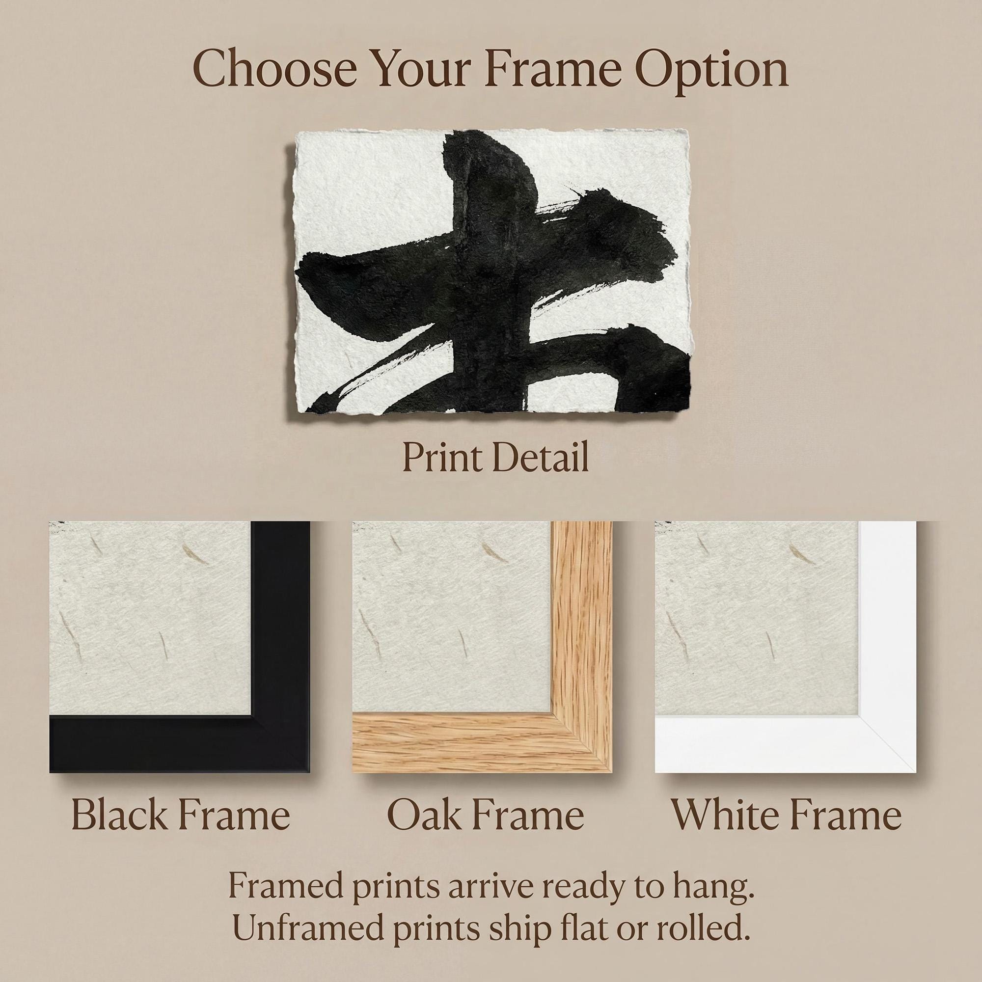 Framed prints arrive ready to hang.